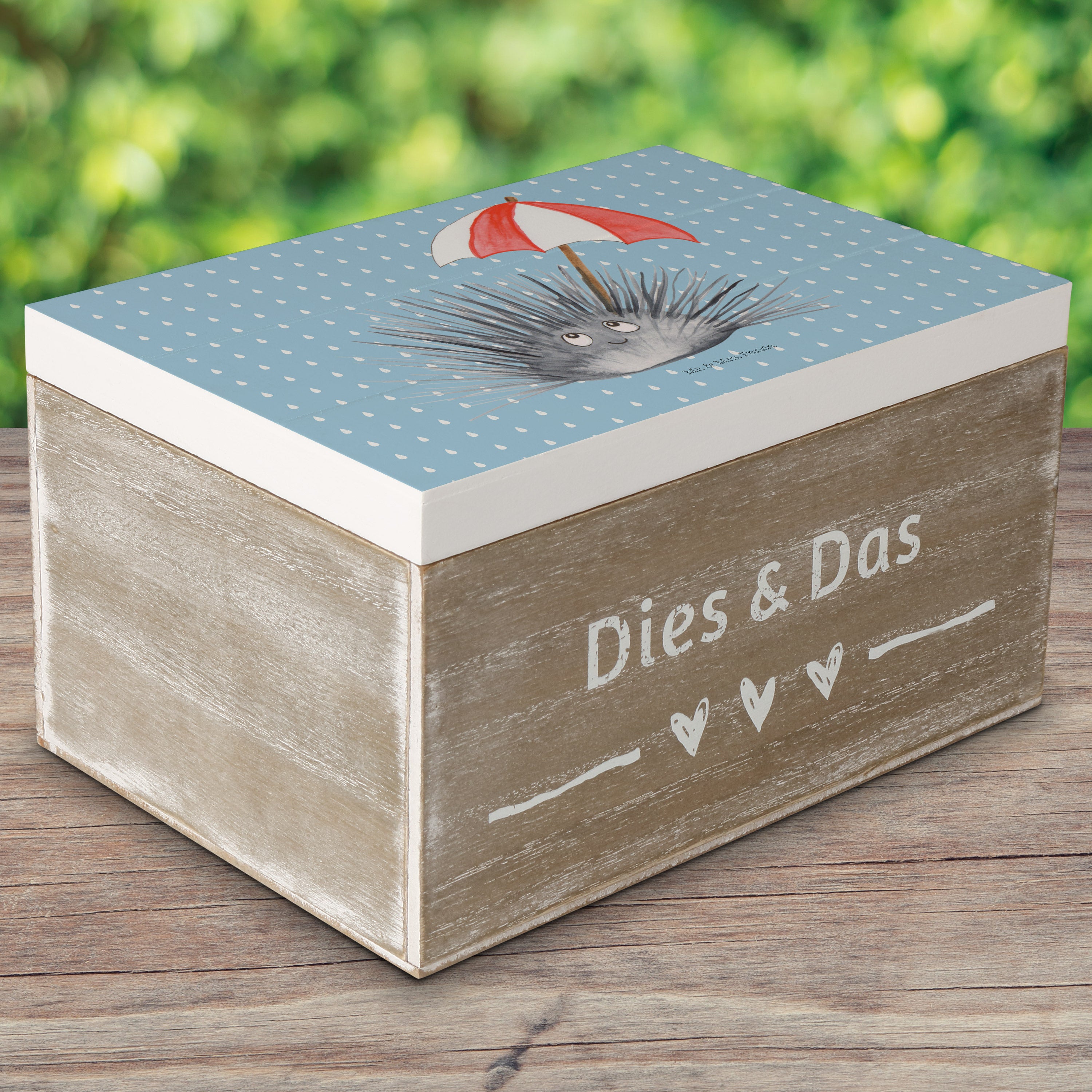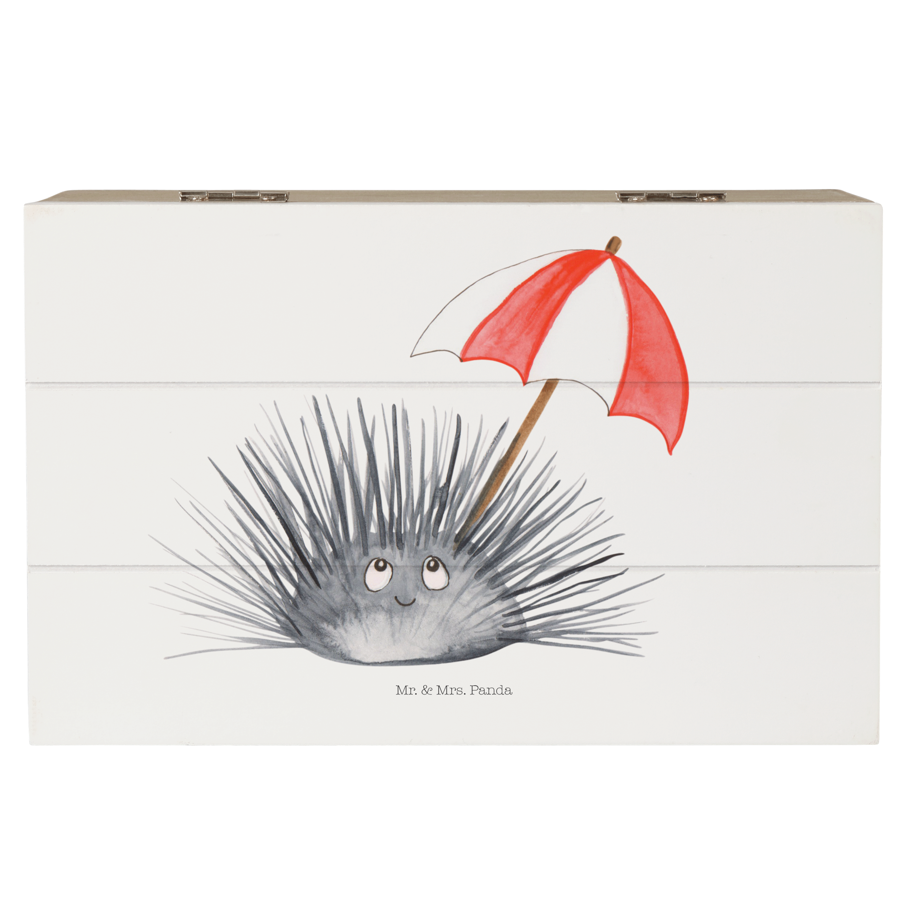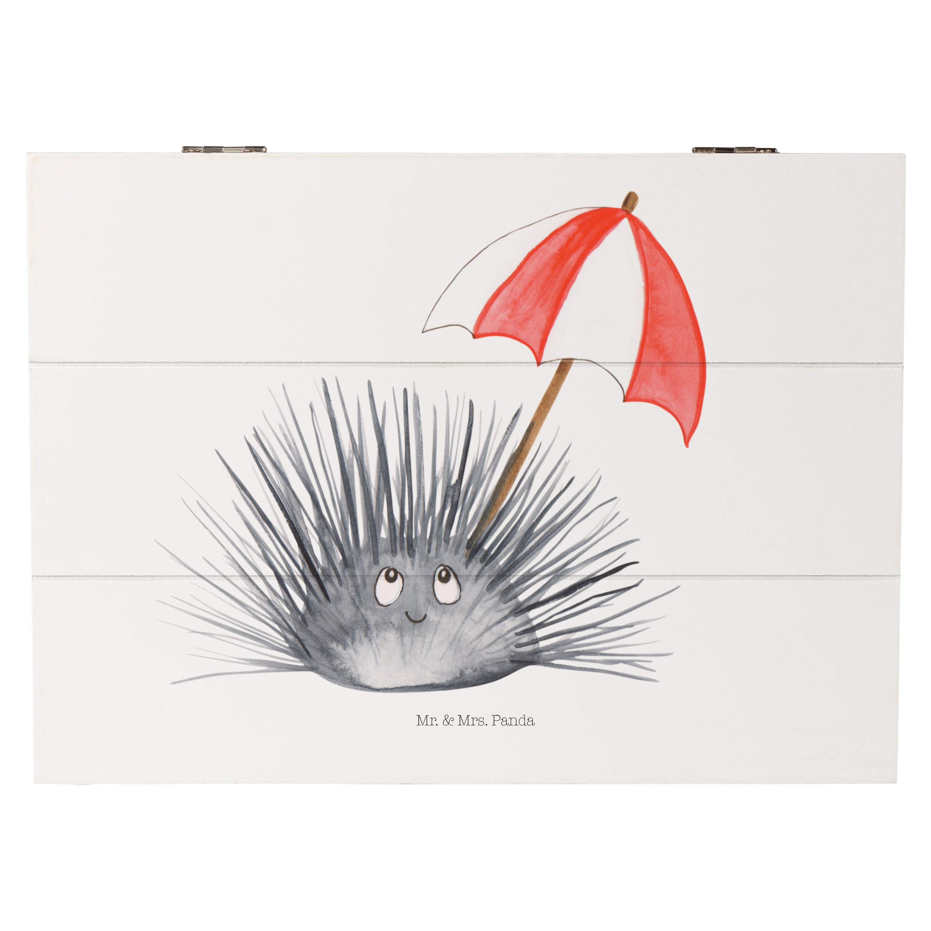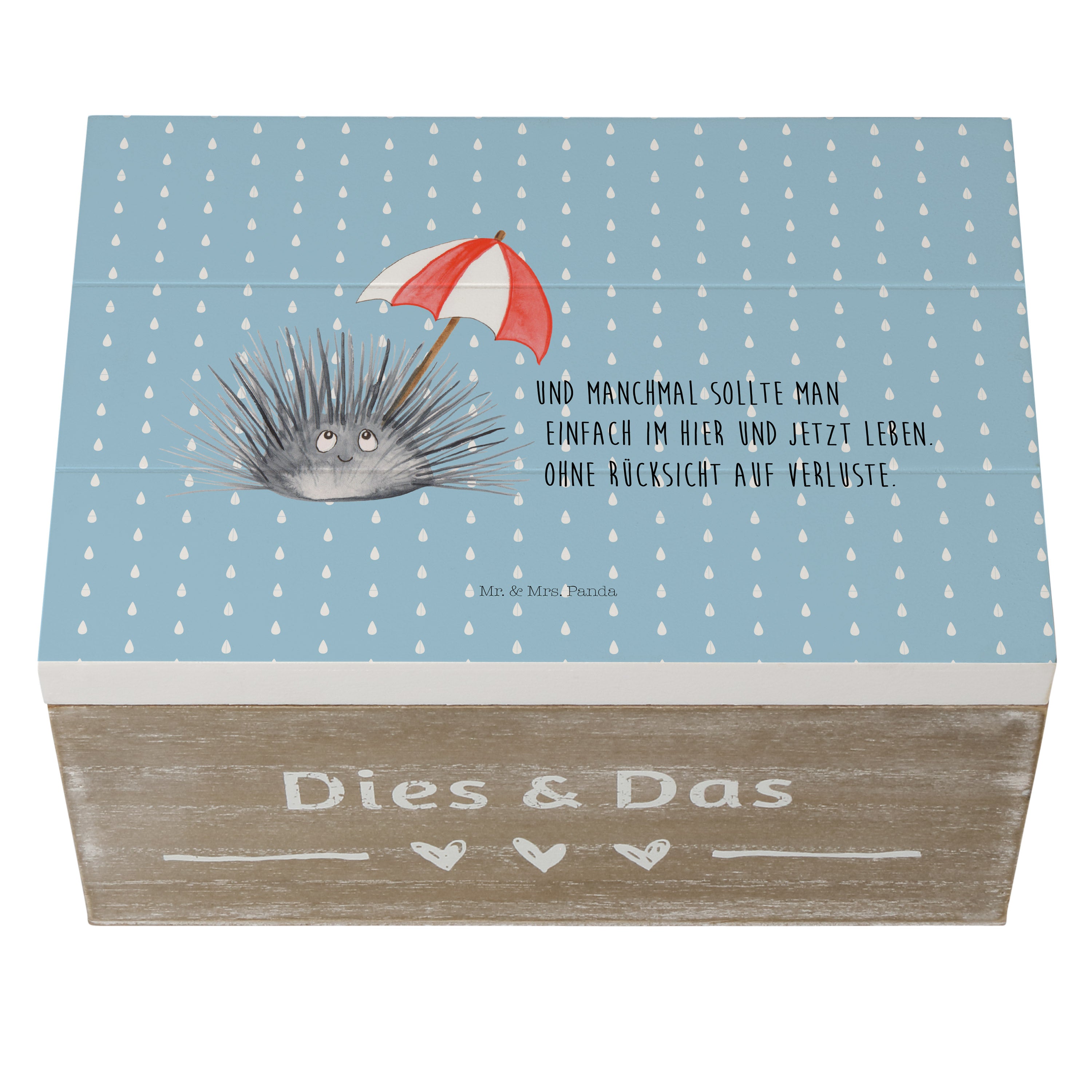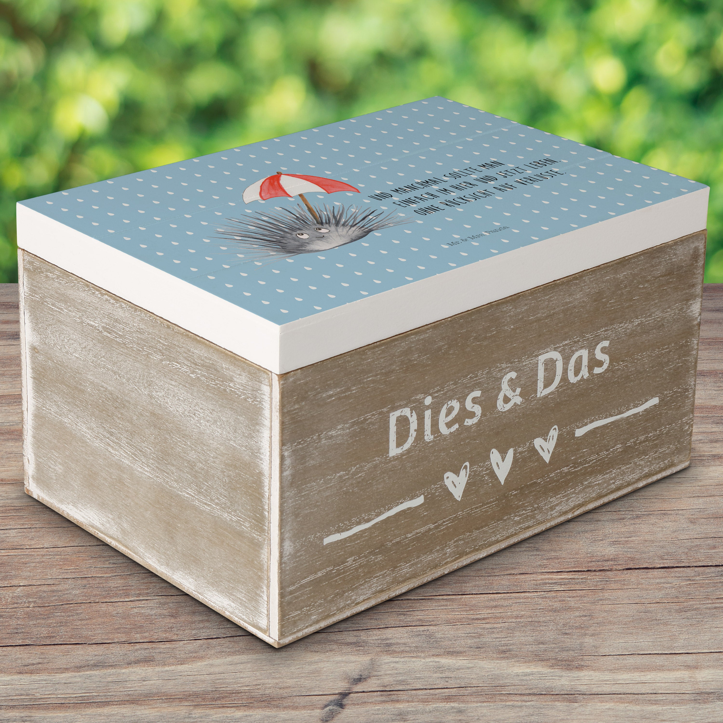 Holzkiste Seeigel - 25 x 18 cm - mit Spruch - Weiß