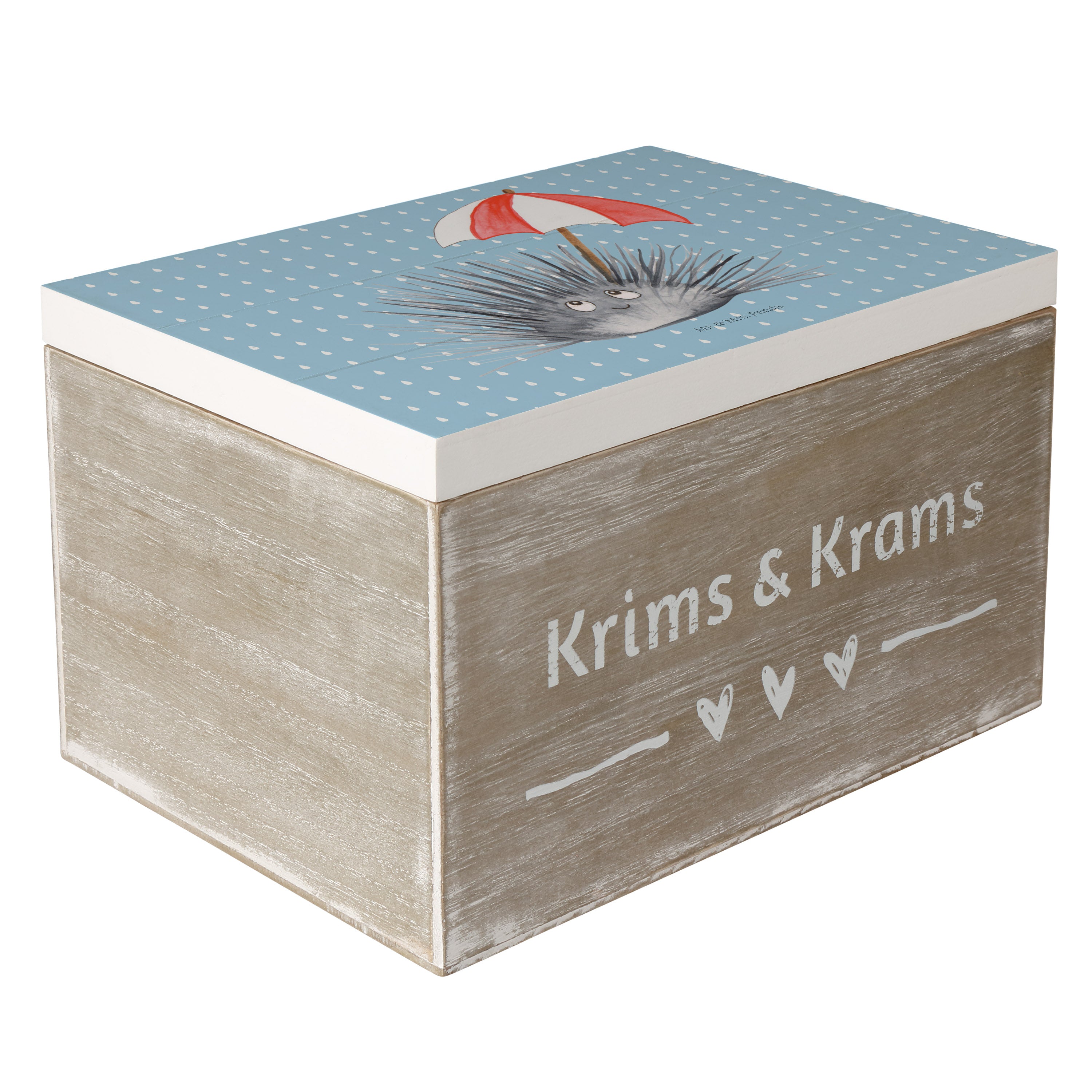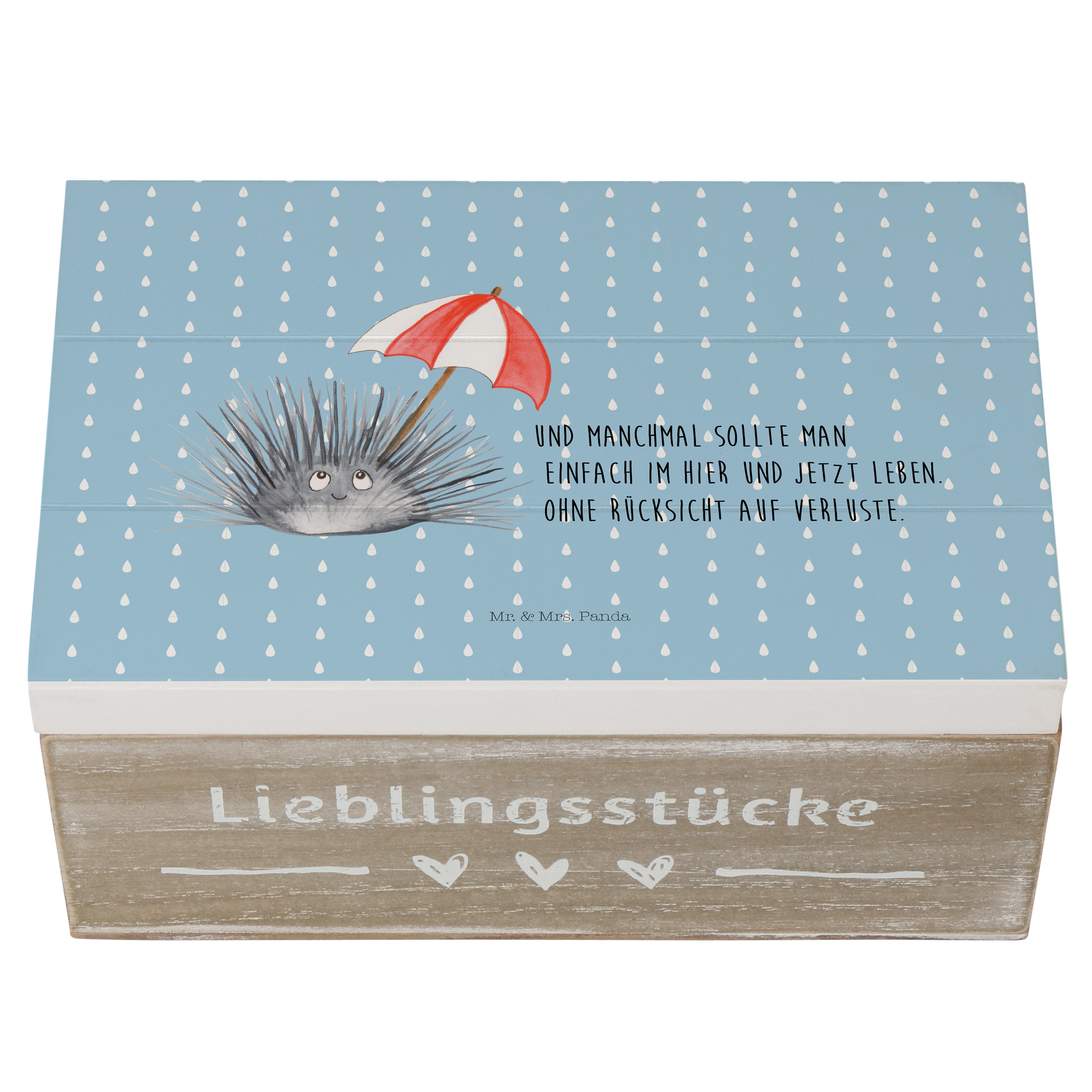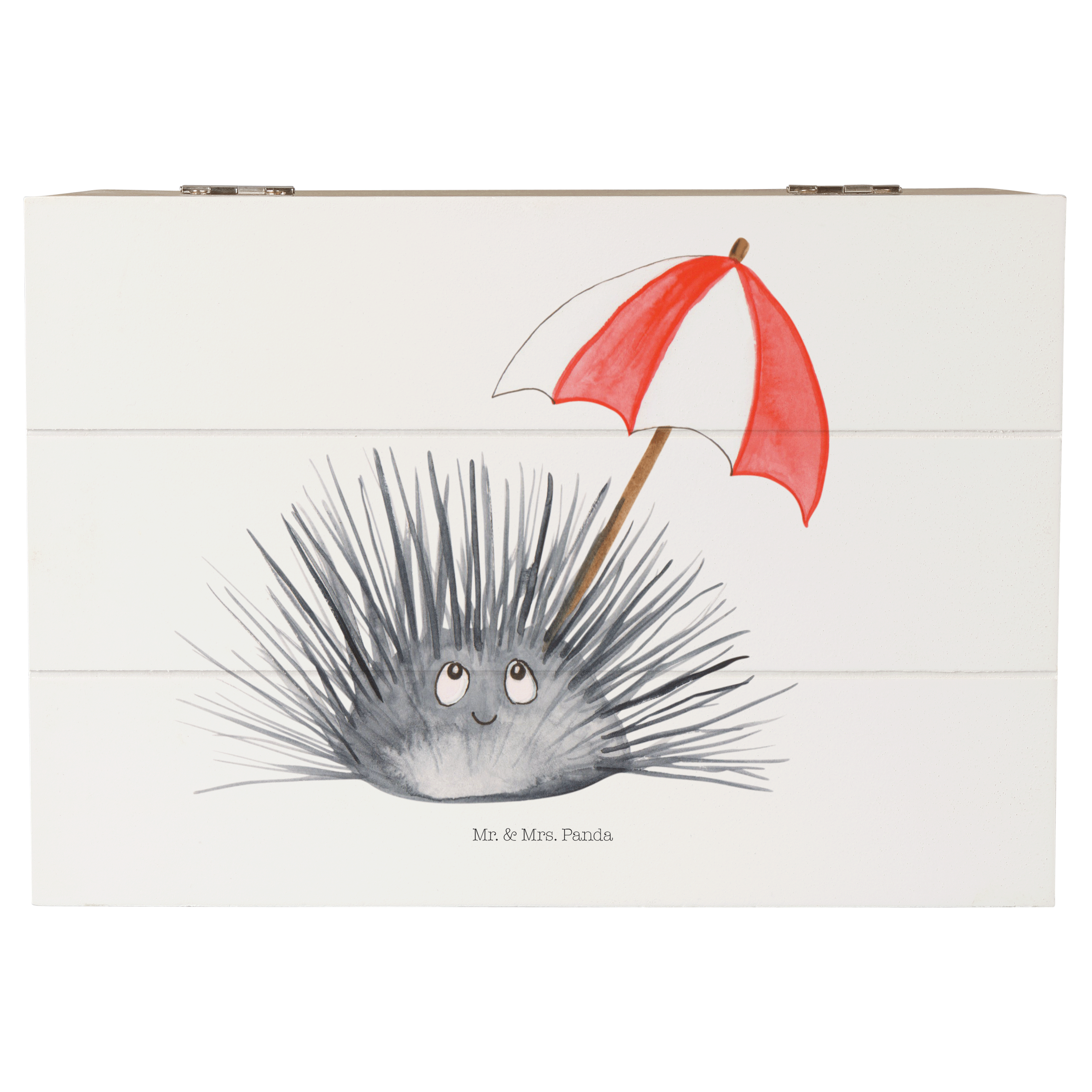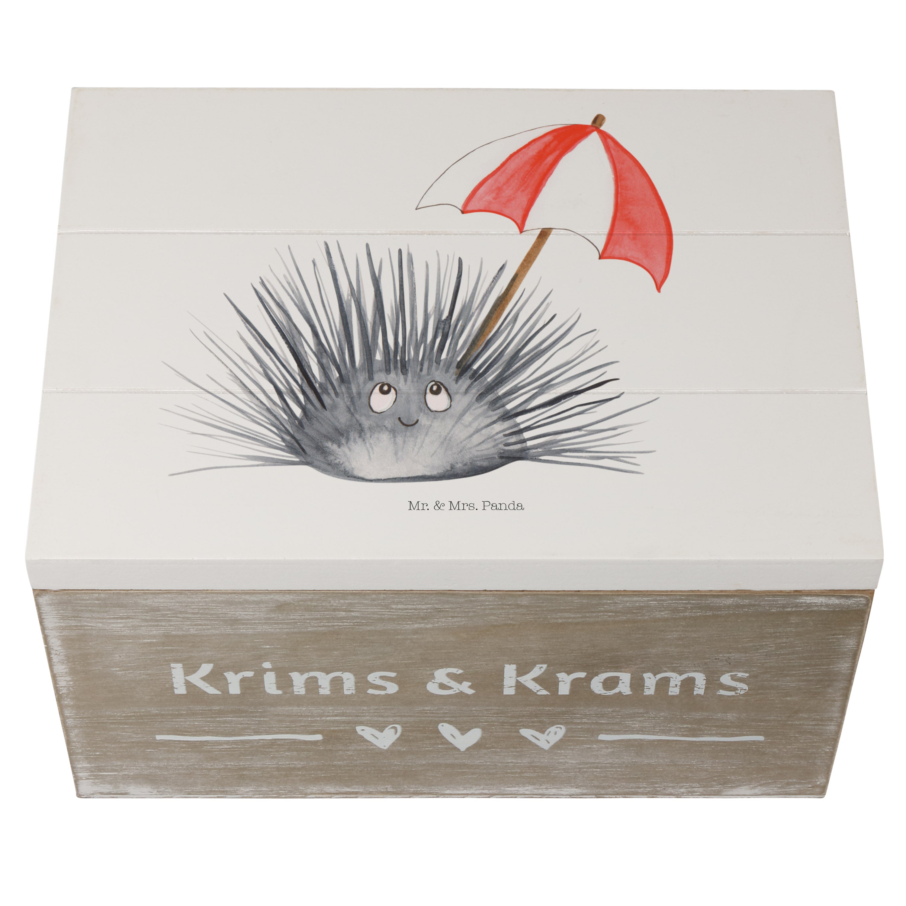 Holzkiste Seeigel - 25 x 18 cm - mit Spruch - Weiß