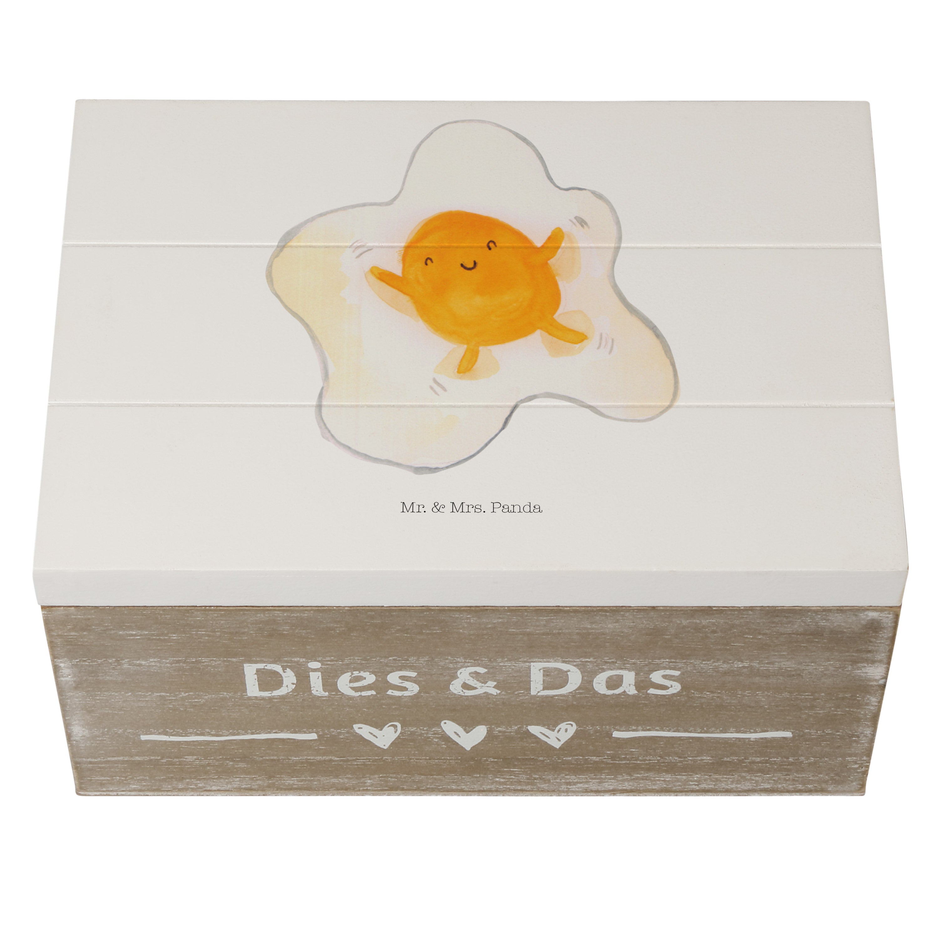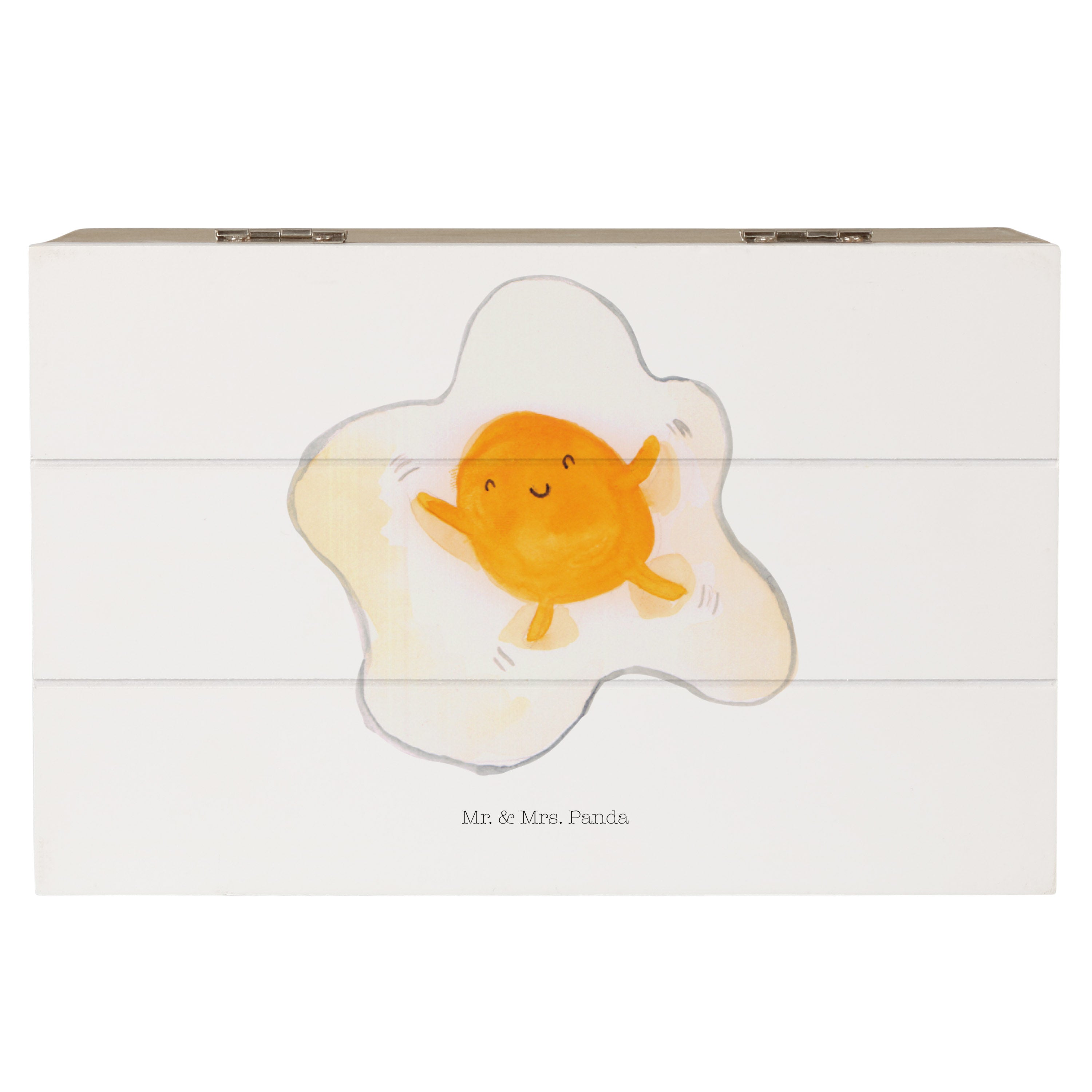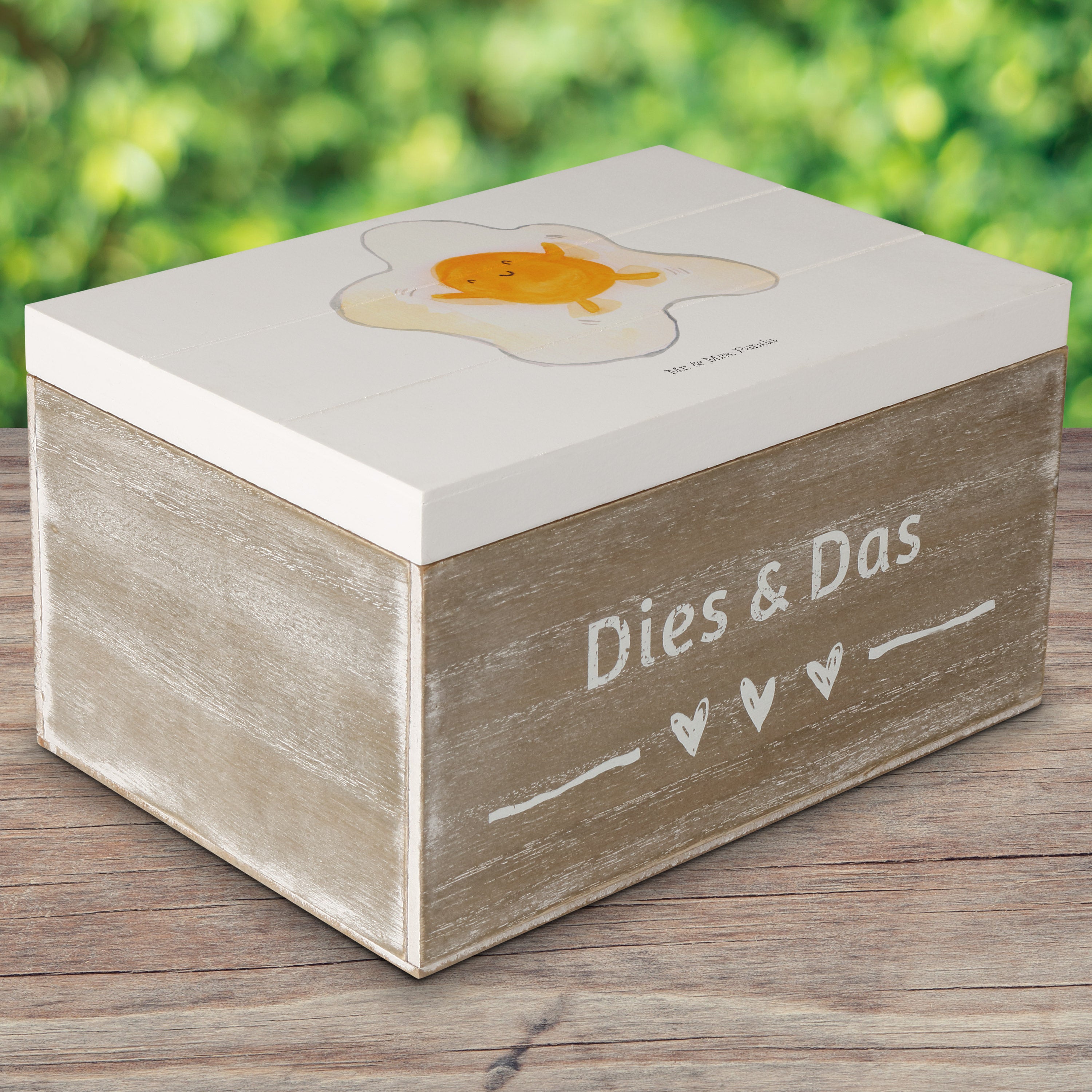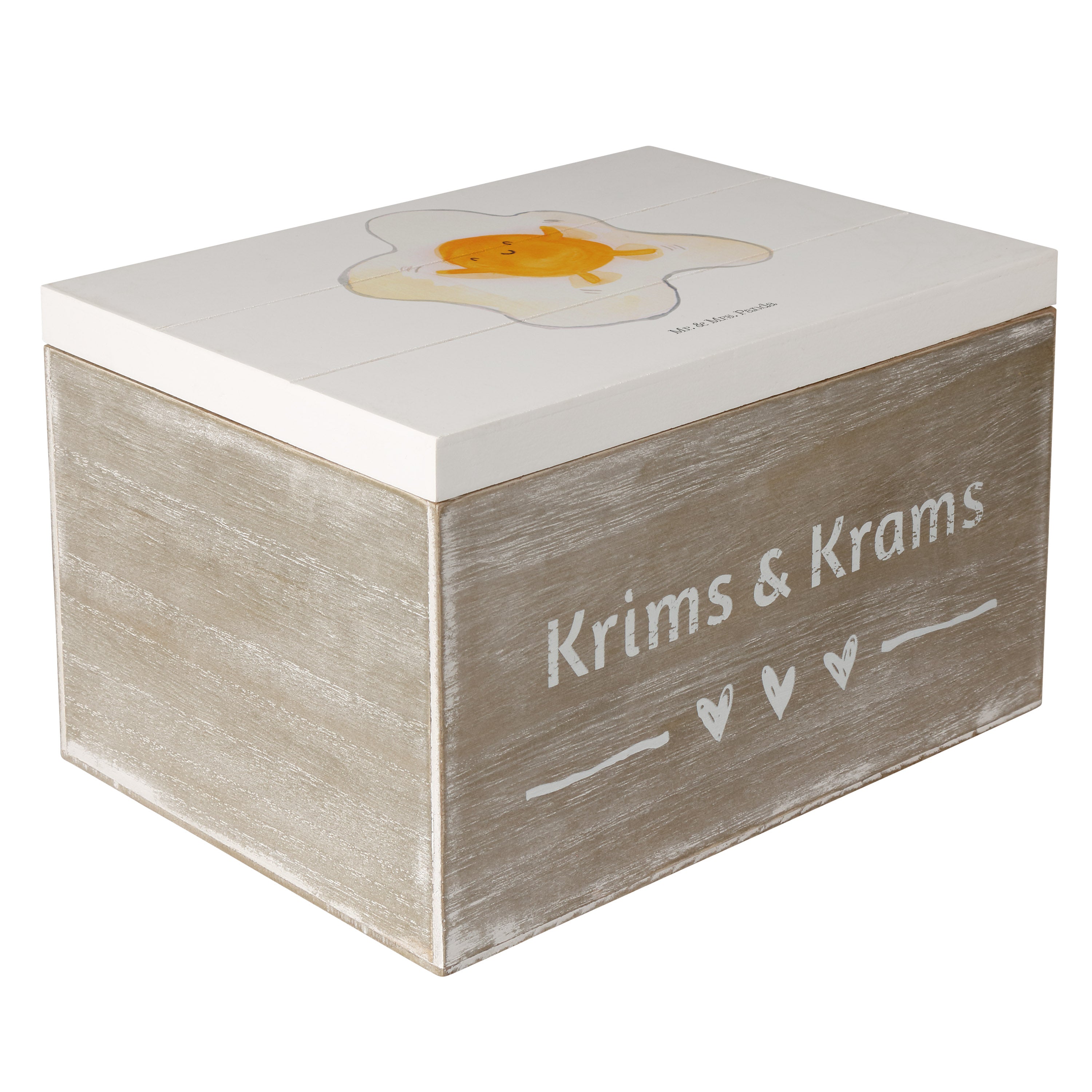 Holzkiste Spiegelei - 25 x 18 cm - mit Spruch - Weiß