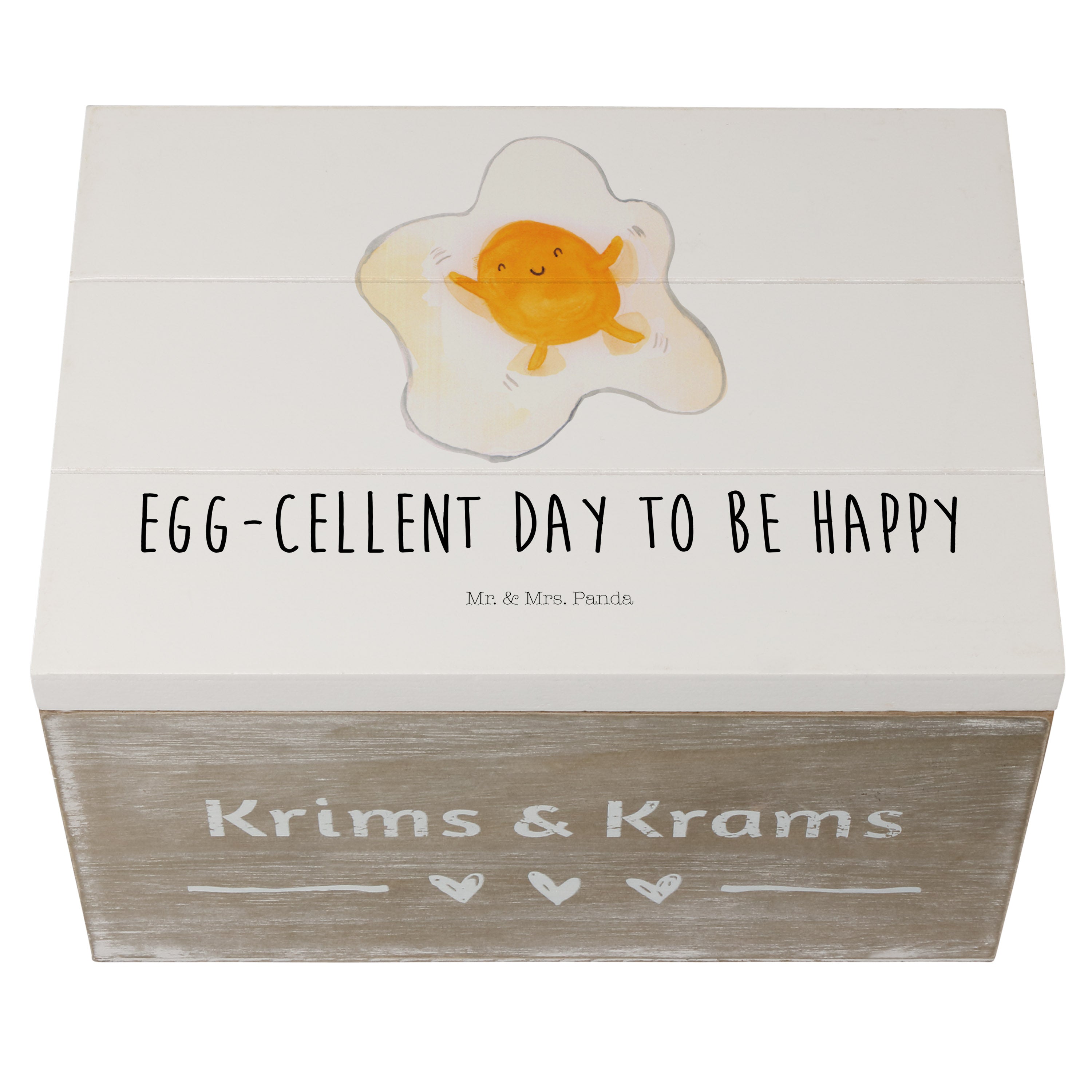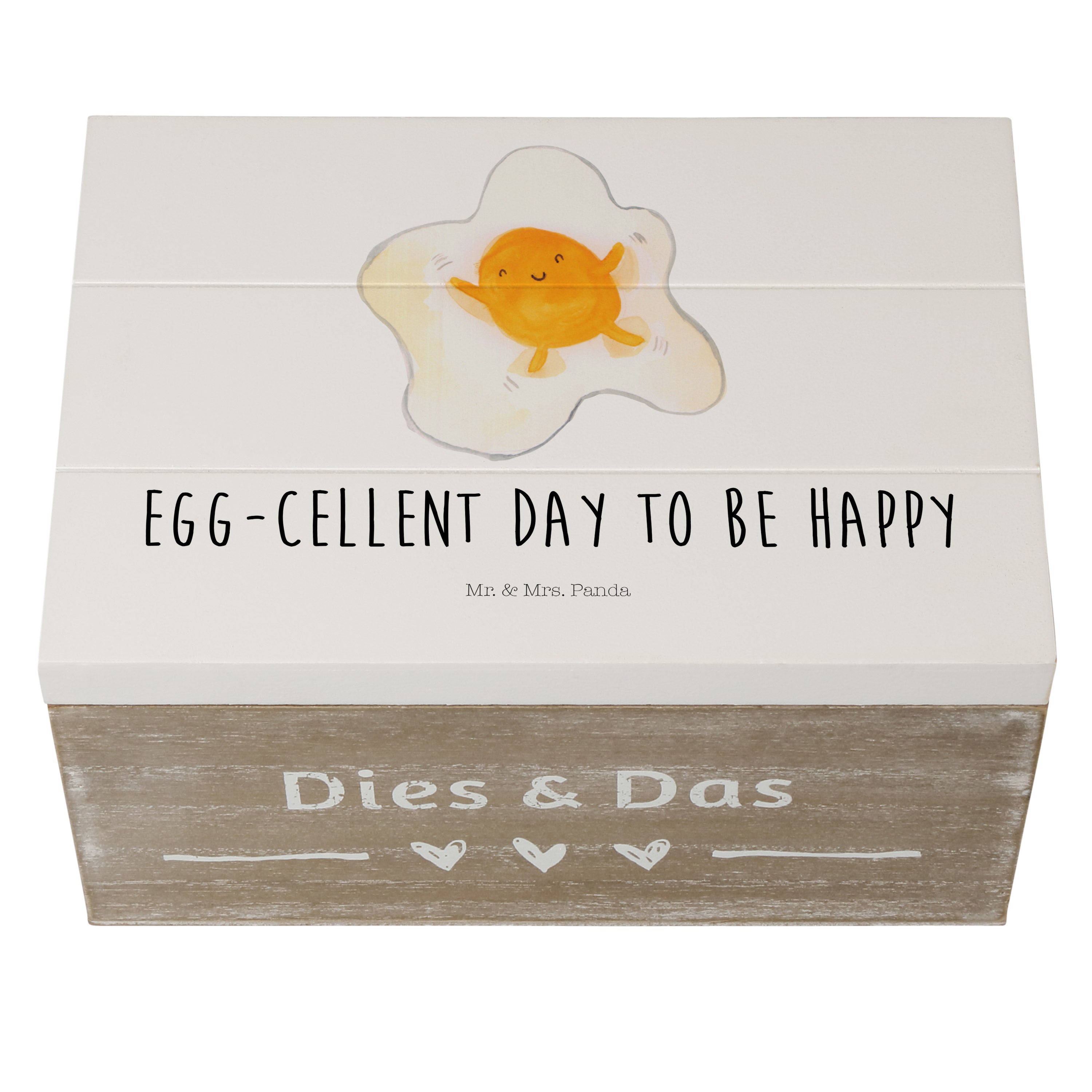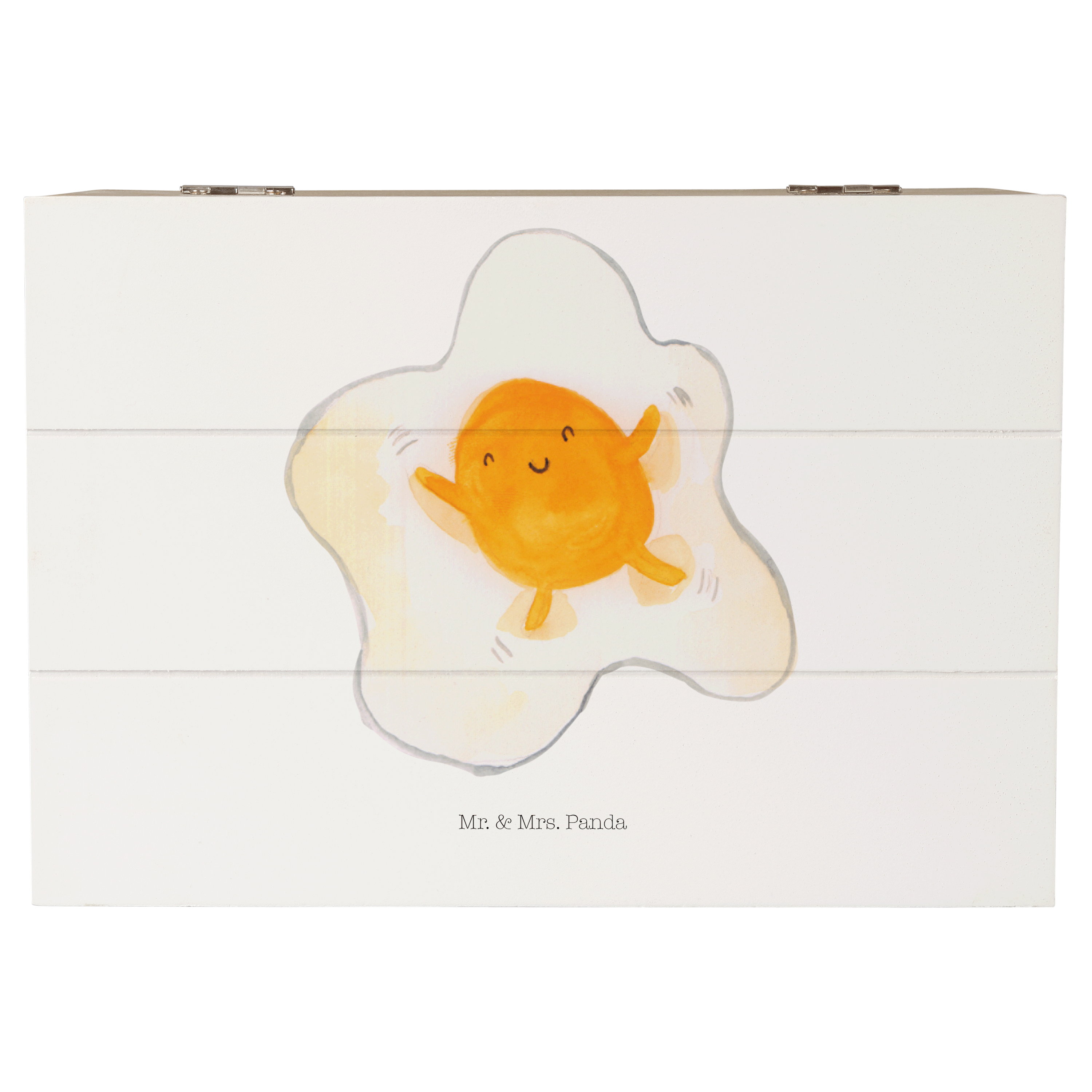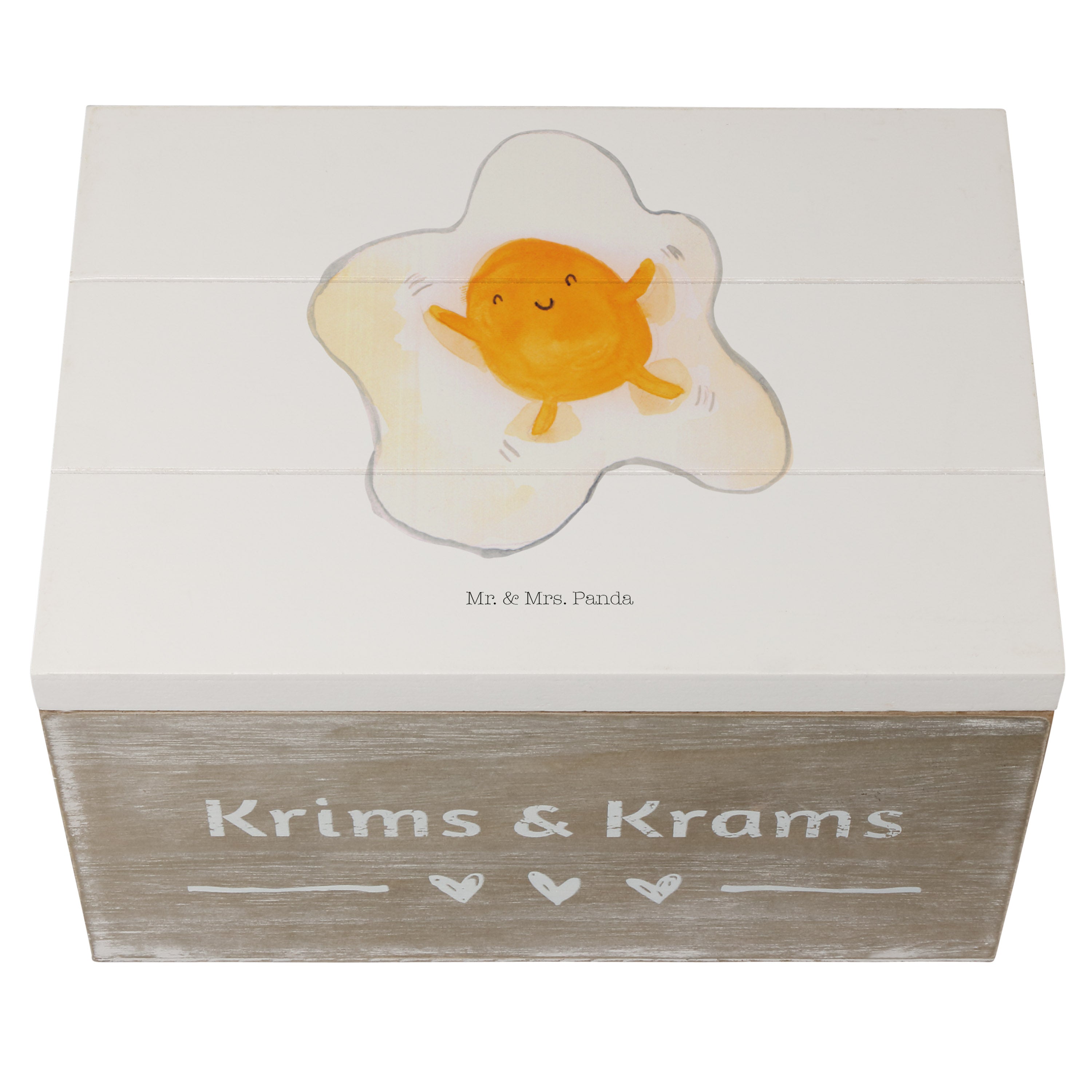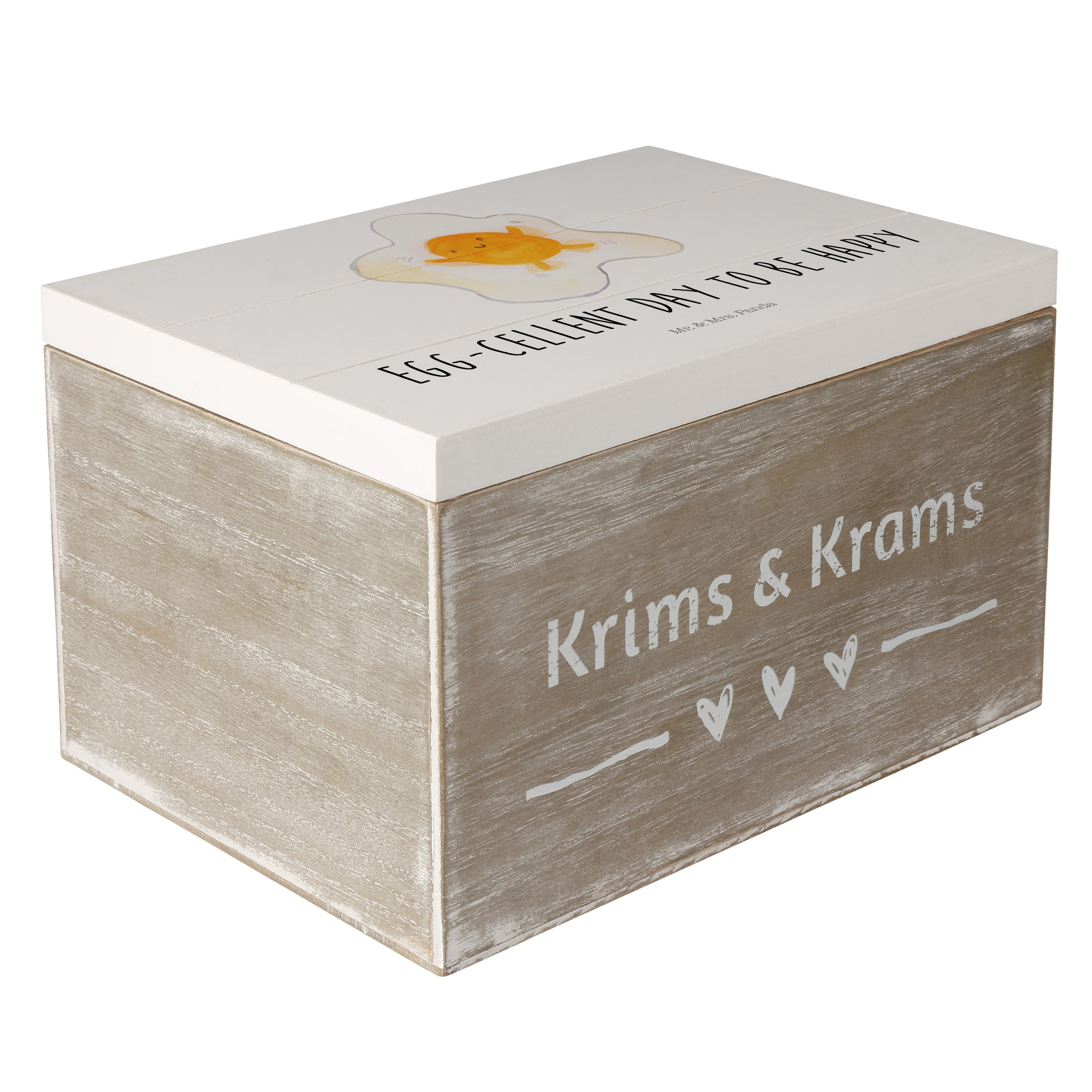 Holzkiste Spiegelei - 25 x 18 cm - mit Spruch - Weiß