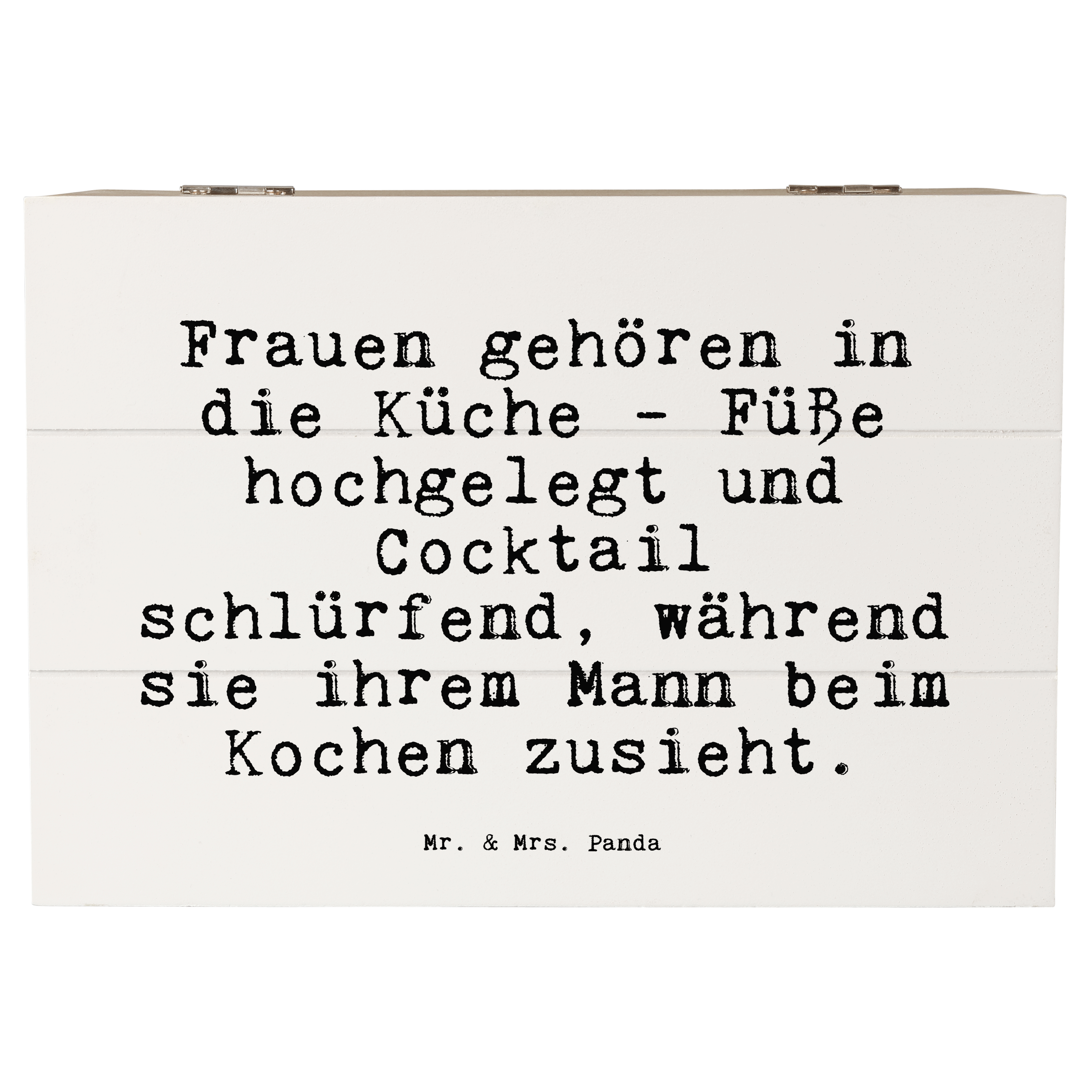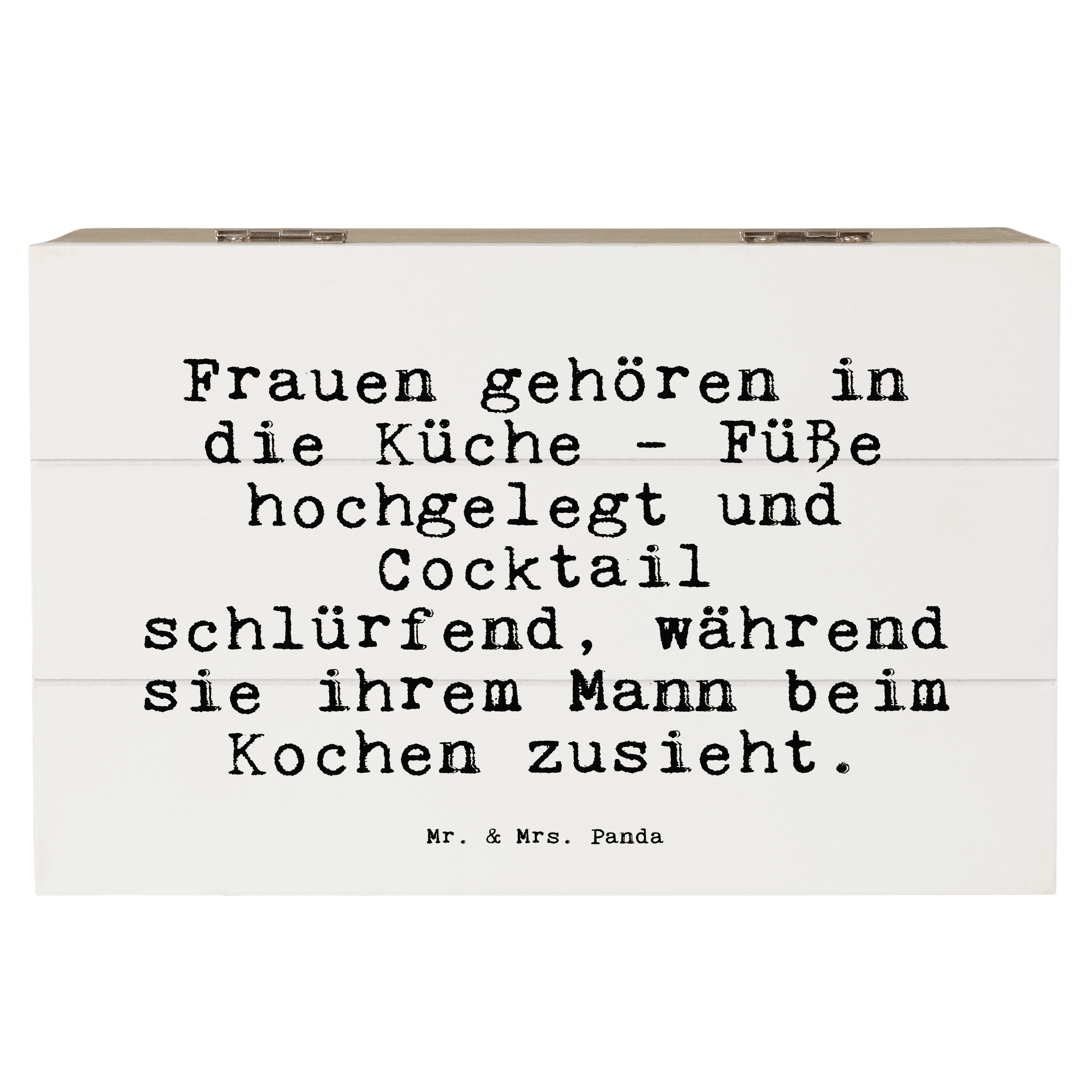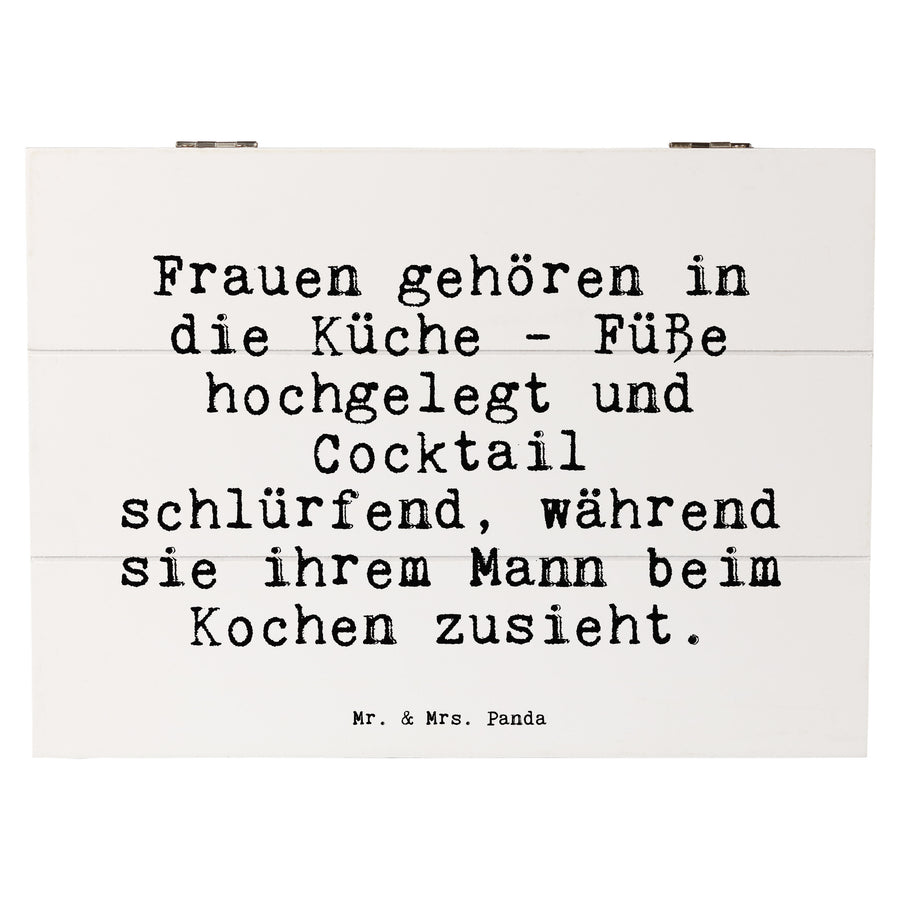 Holzkiste Sprüche und Zitate Frauen gehören in die Küche - Füße hochgelegt und Cocktail schlürfend, während sie ihrem Mann beim Kochen zusieht. - 25 x 18 cm
