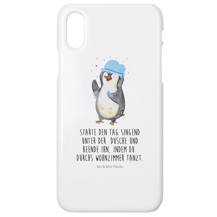 Iphone 10 Handyhülle Pinguin duscht - mit Spruch - Weiß