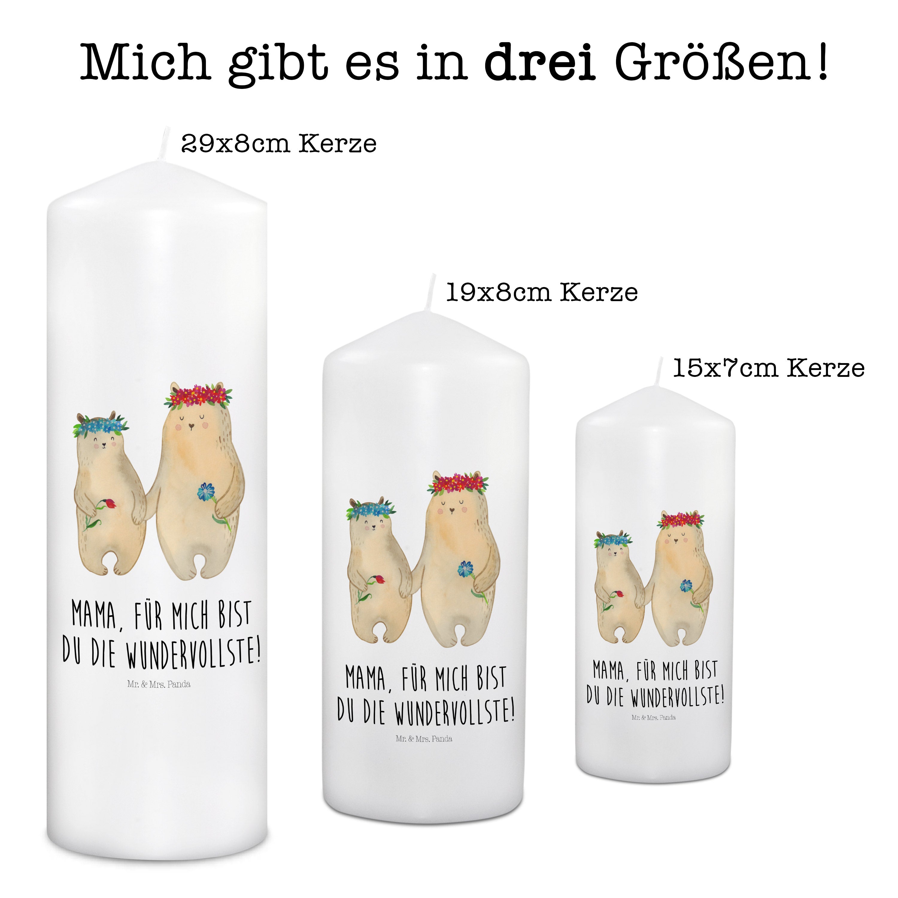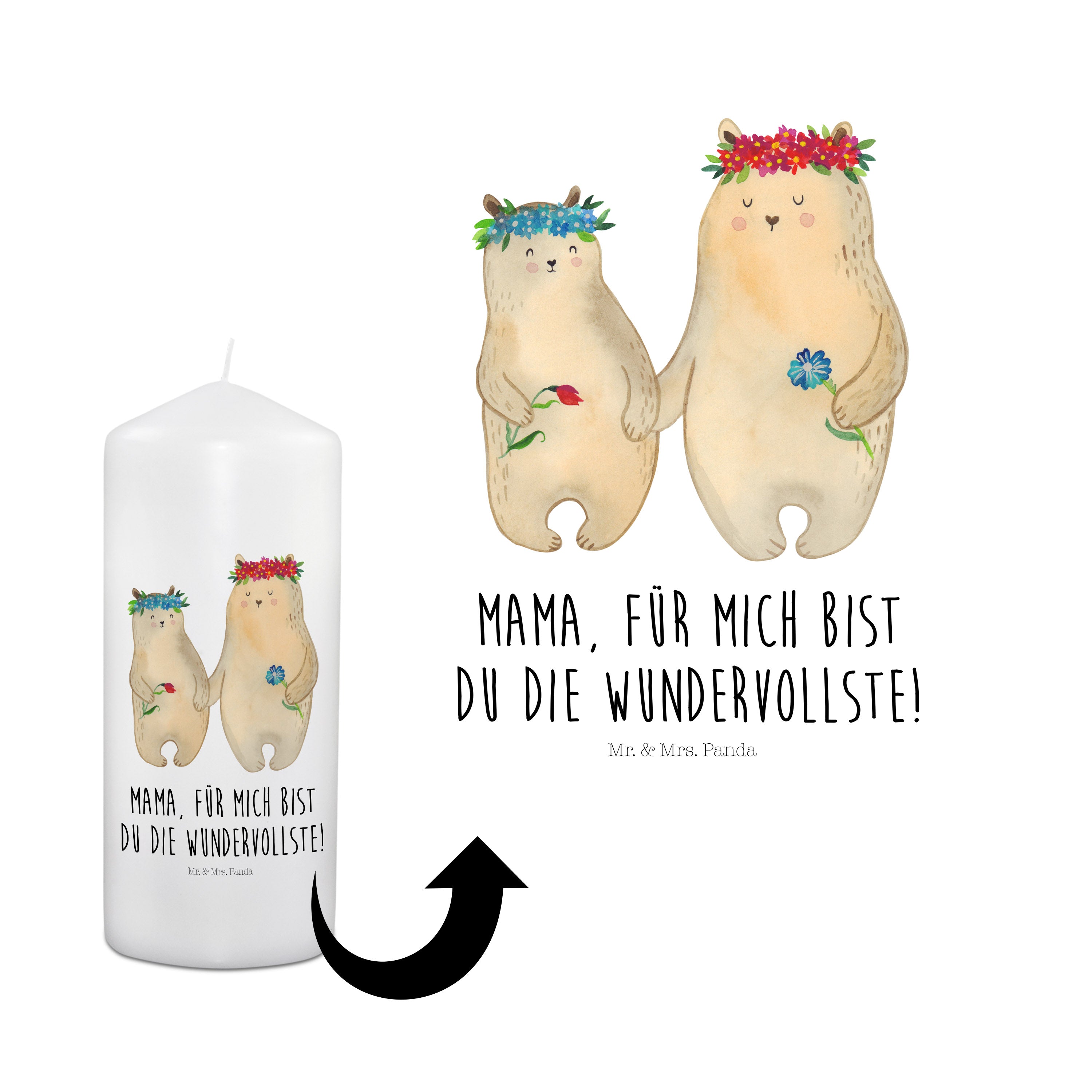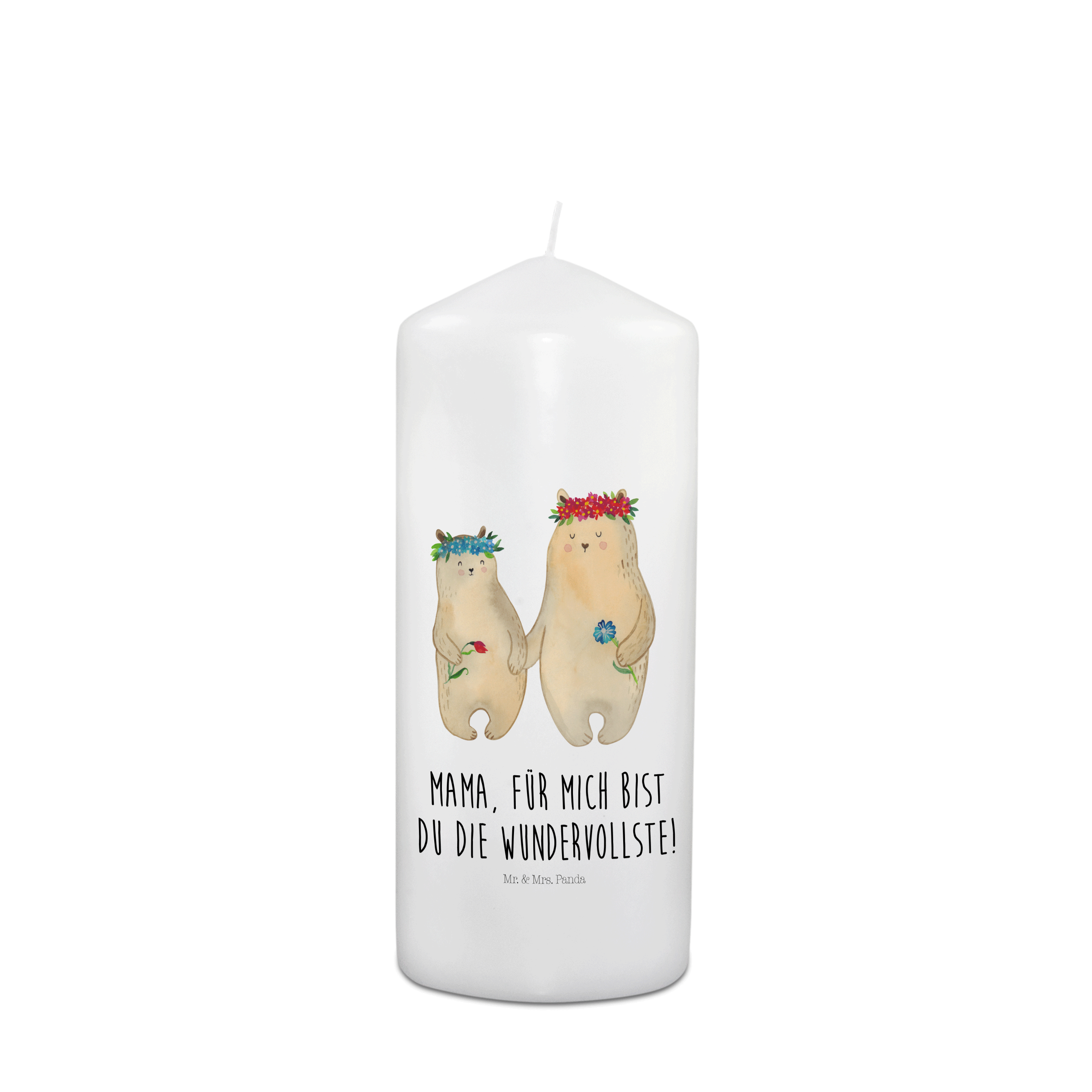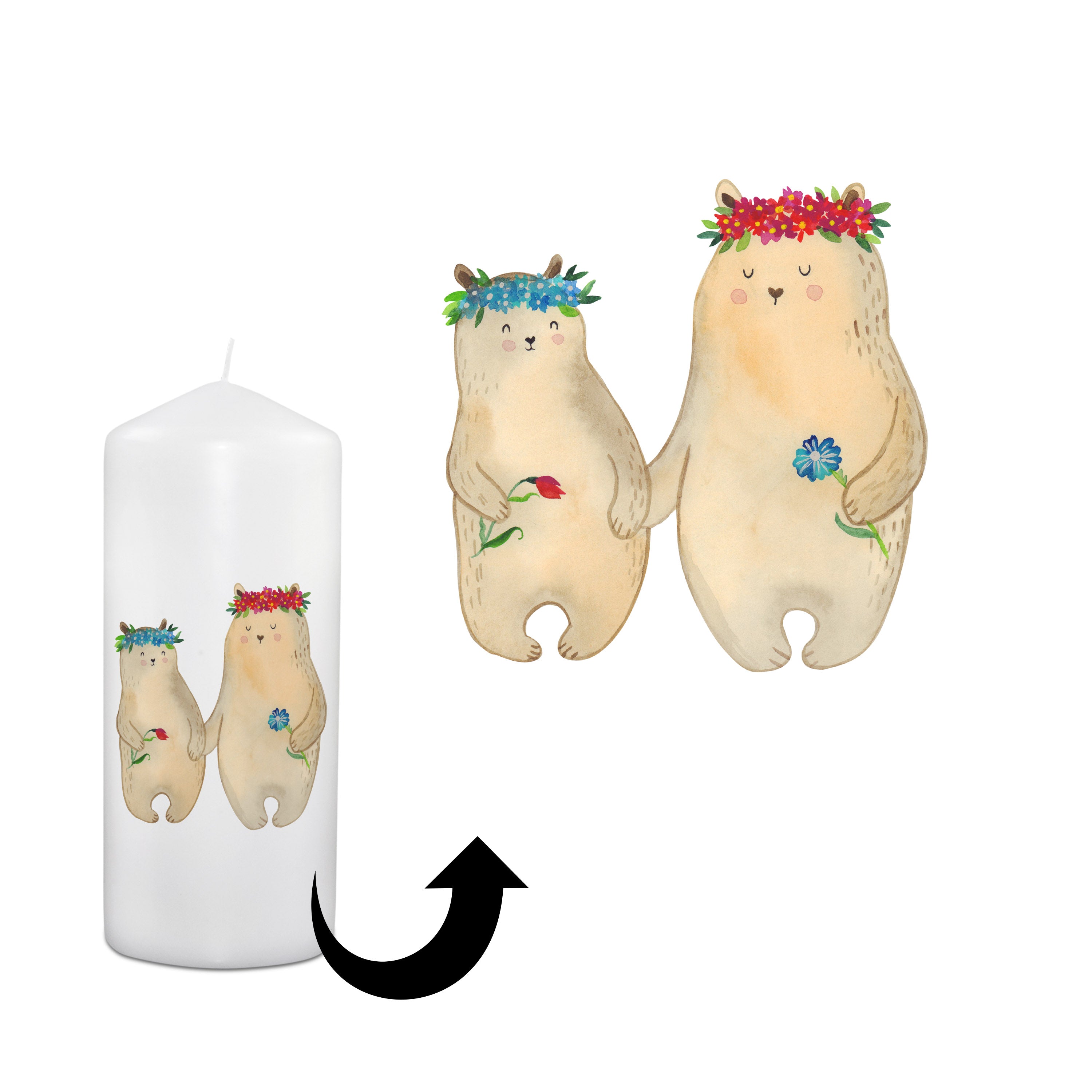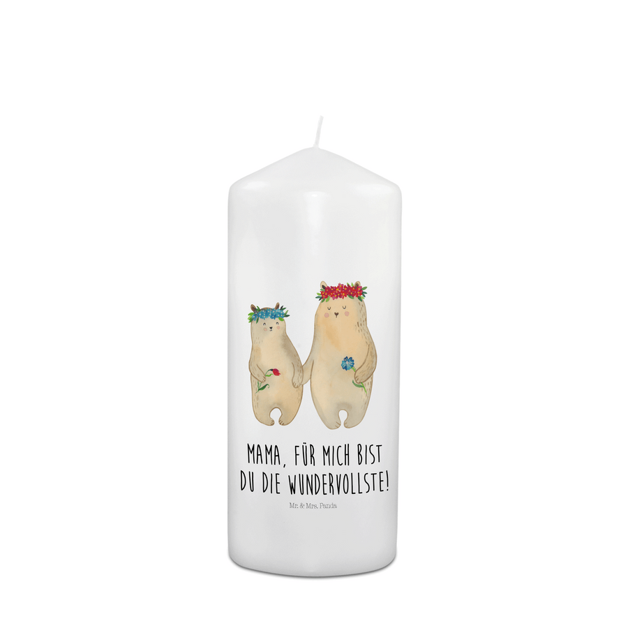 Kerze Bären mit Blumenkranz - 15 x 7 cm - mit Spruch