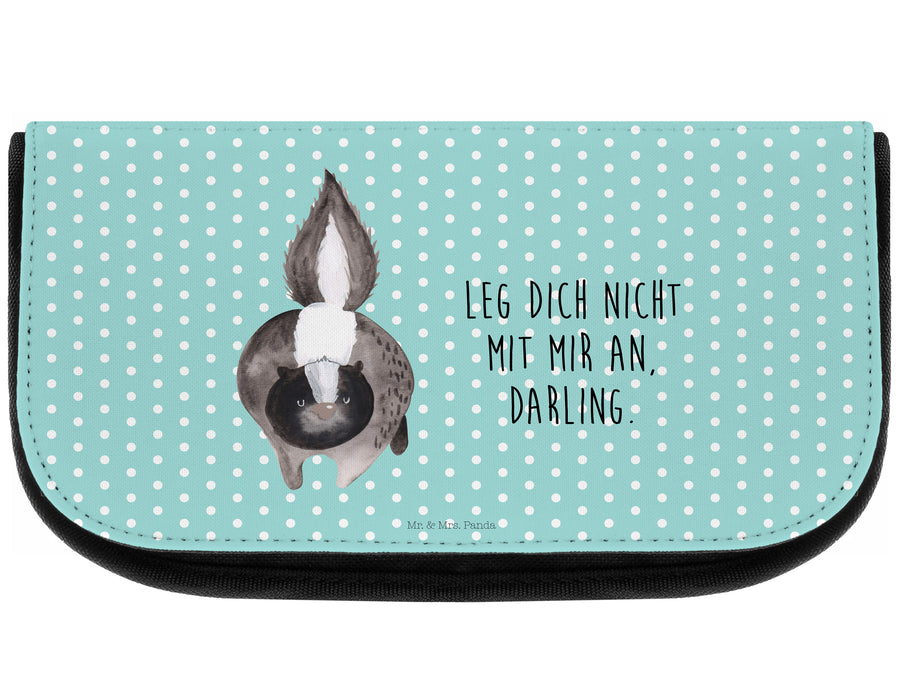 Kosmetiktasche Stinktier Angriff - mit Spruch - Türkis Pastell