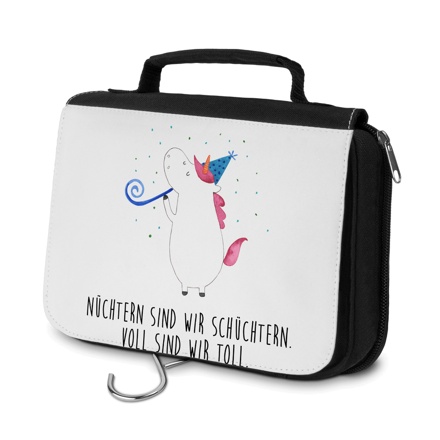 Kulturbeutel Einhorn Party - mit Spruch - Weiß