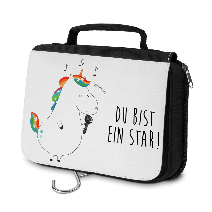 Kulturbeutel Einhorn Sänger - mit Spruch - Weiß