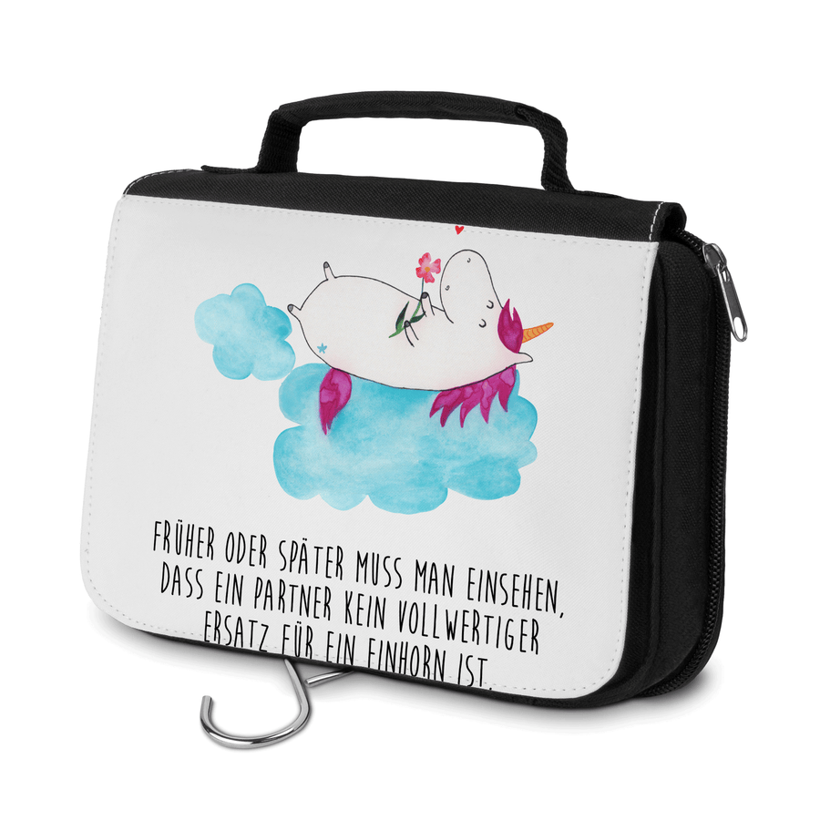 Kulturbeutel Einhorn verliebt auf Wolke - mit Spruch - Weiß