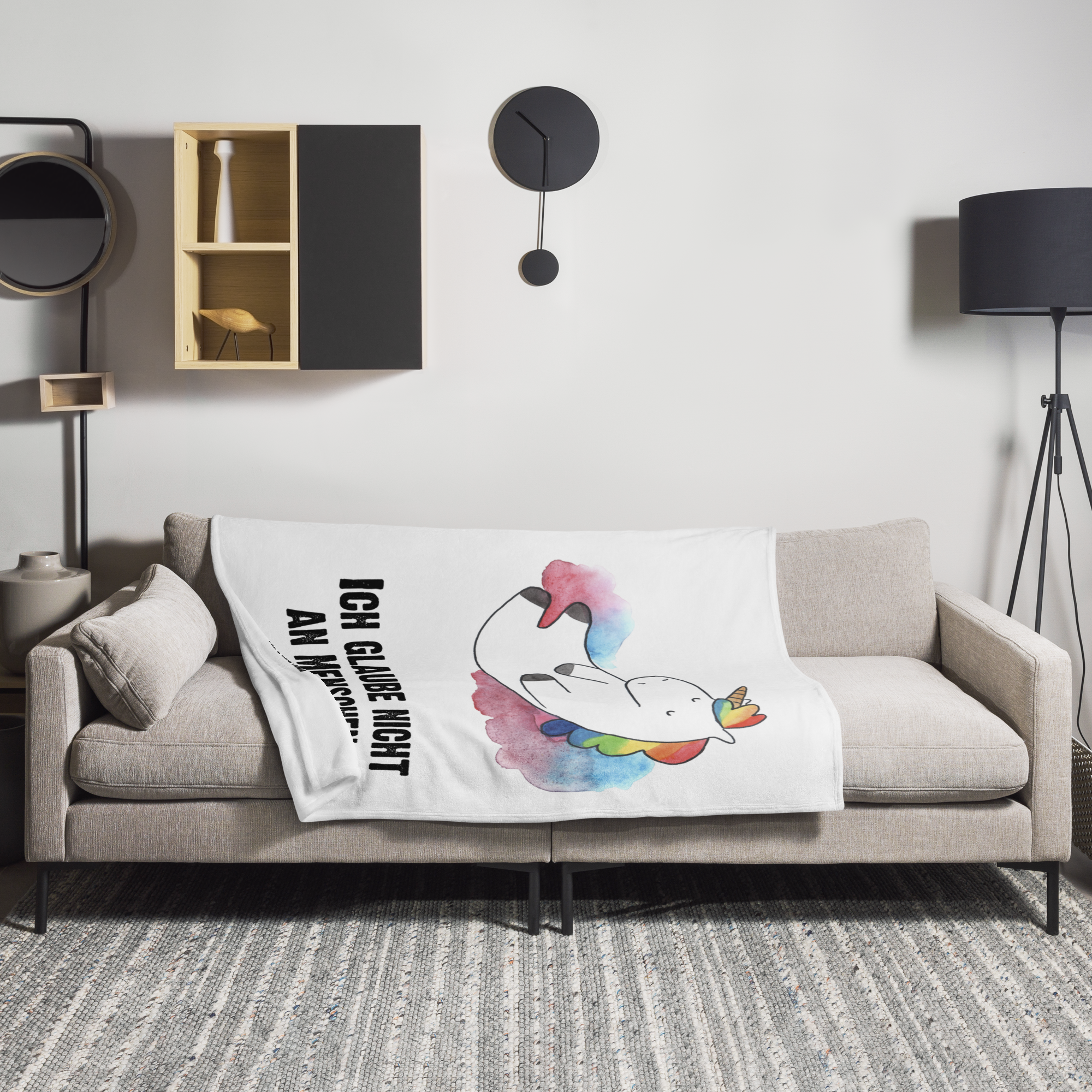 Das entspannte Einhorn auf Wolke 7 ist sich sicher: Menschen gibt es gar nicht. Vielleicht ist es deshalb so relaxed. Was wir sicher wissen: Es ist das perfekte Motiv, um dem Beschenkten oder dem Besucher ein kleines Lächeln zu entlocken.
