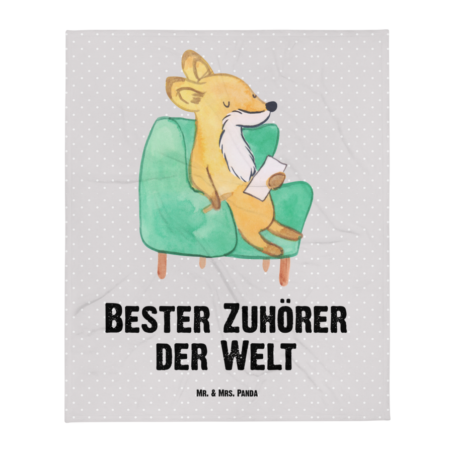 Kuscheldecke Fuchs Bester Zuhörer der Welt - Grau Pastell