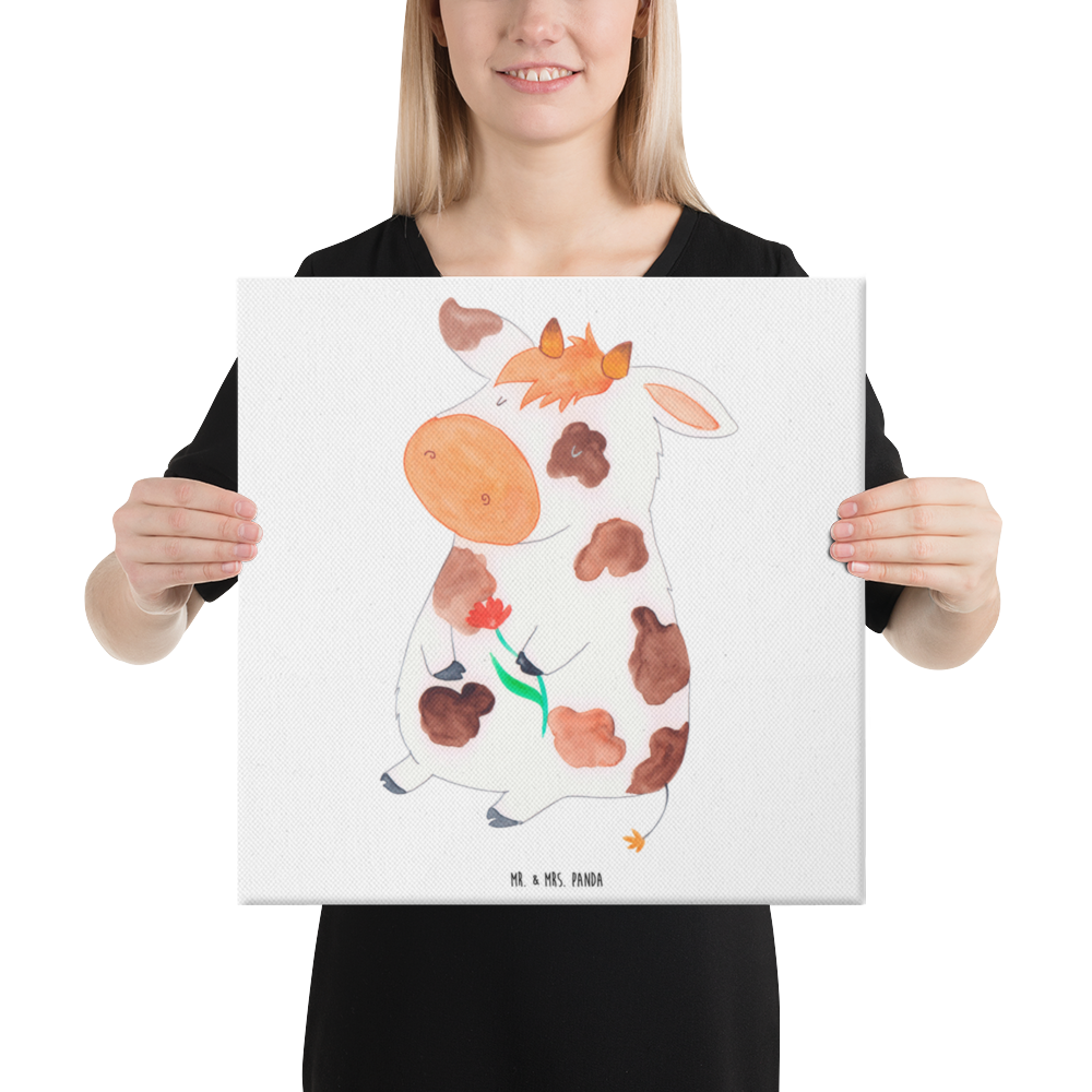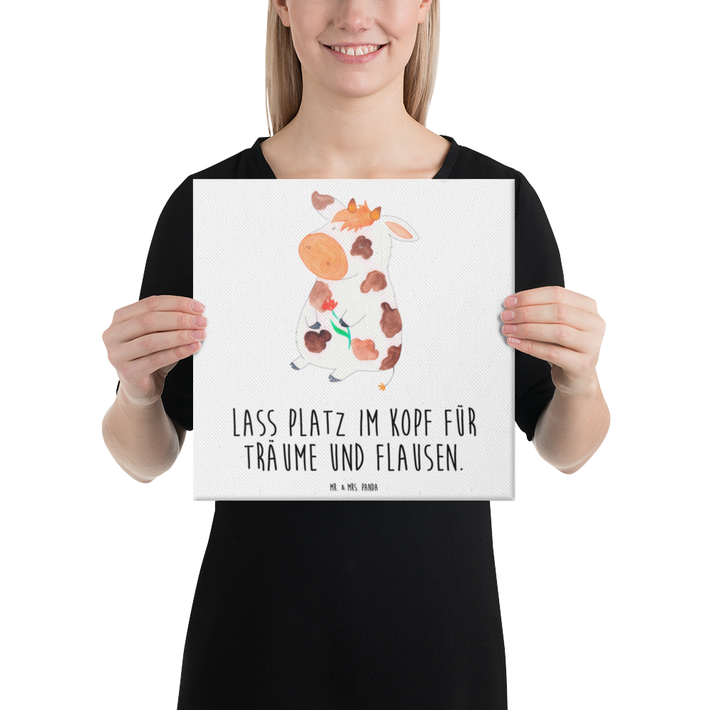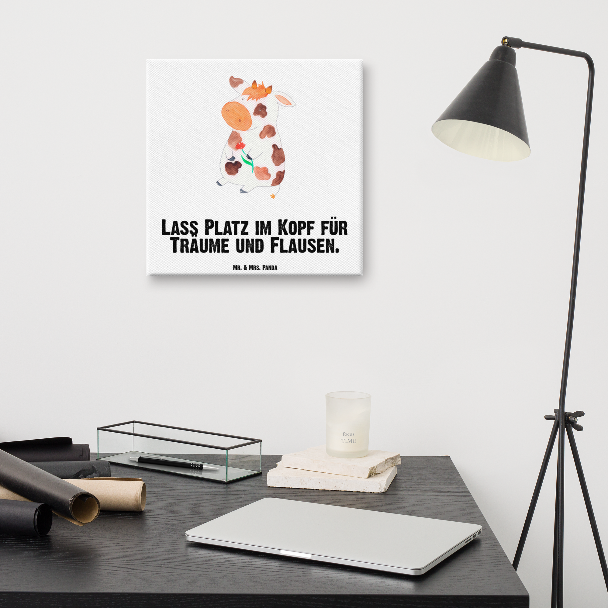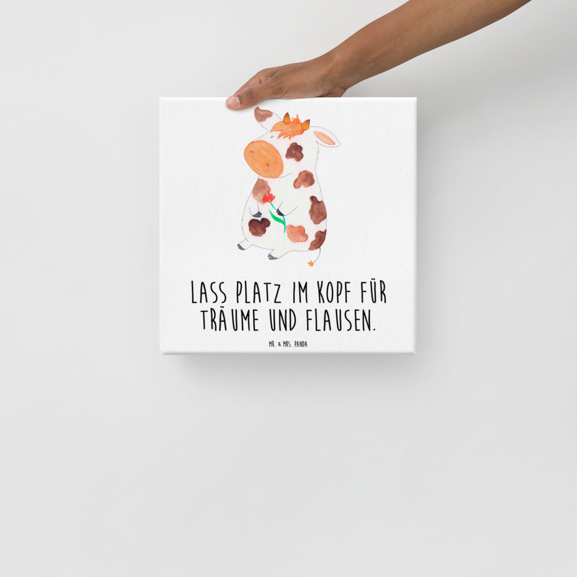 Leinwand Bild Kuh - 40 x 40 cm - mit Spruch