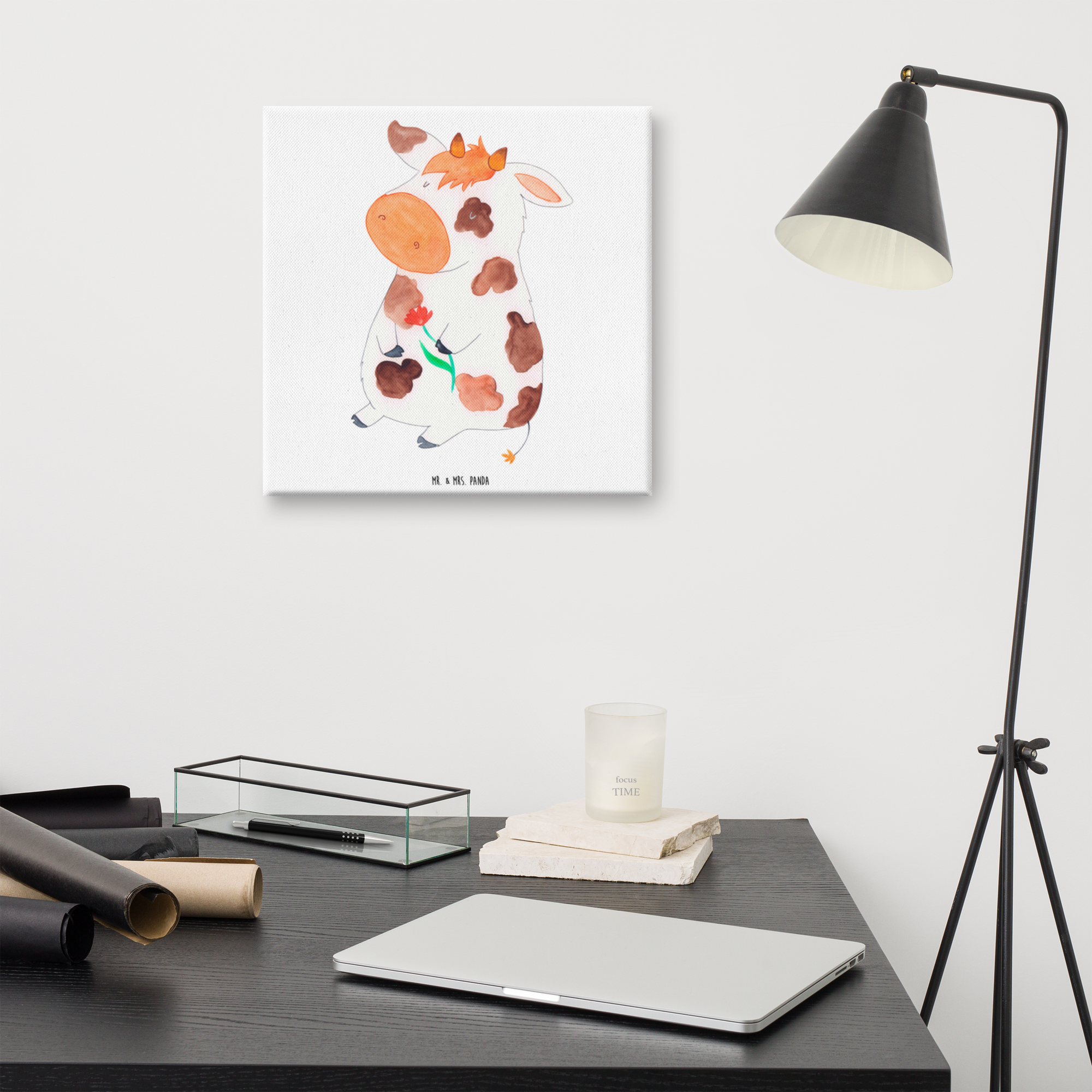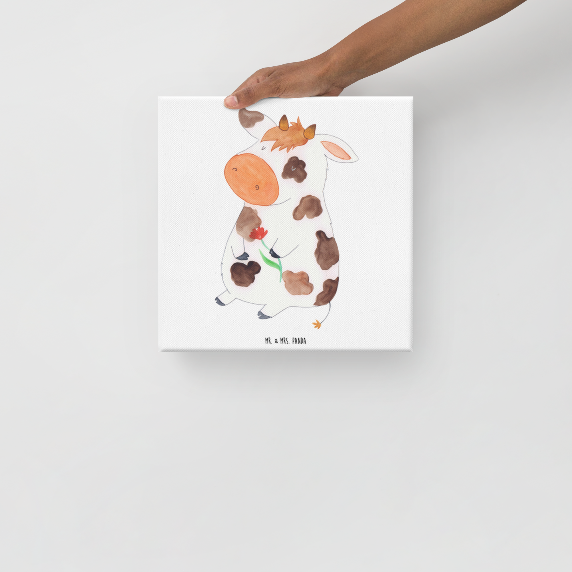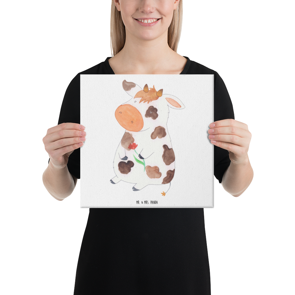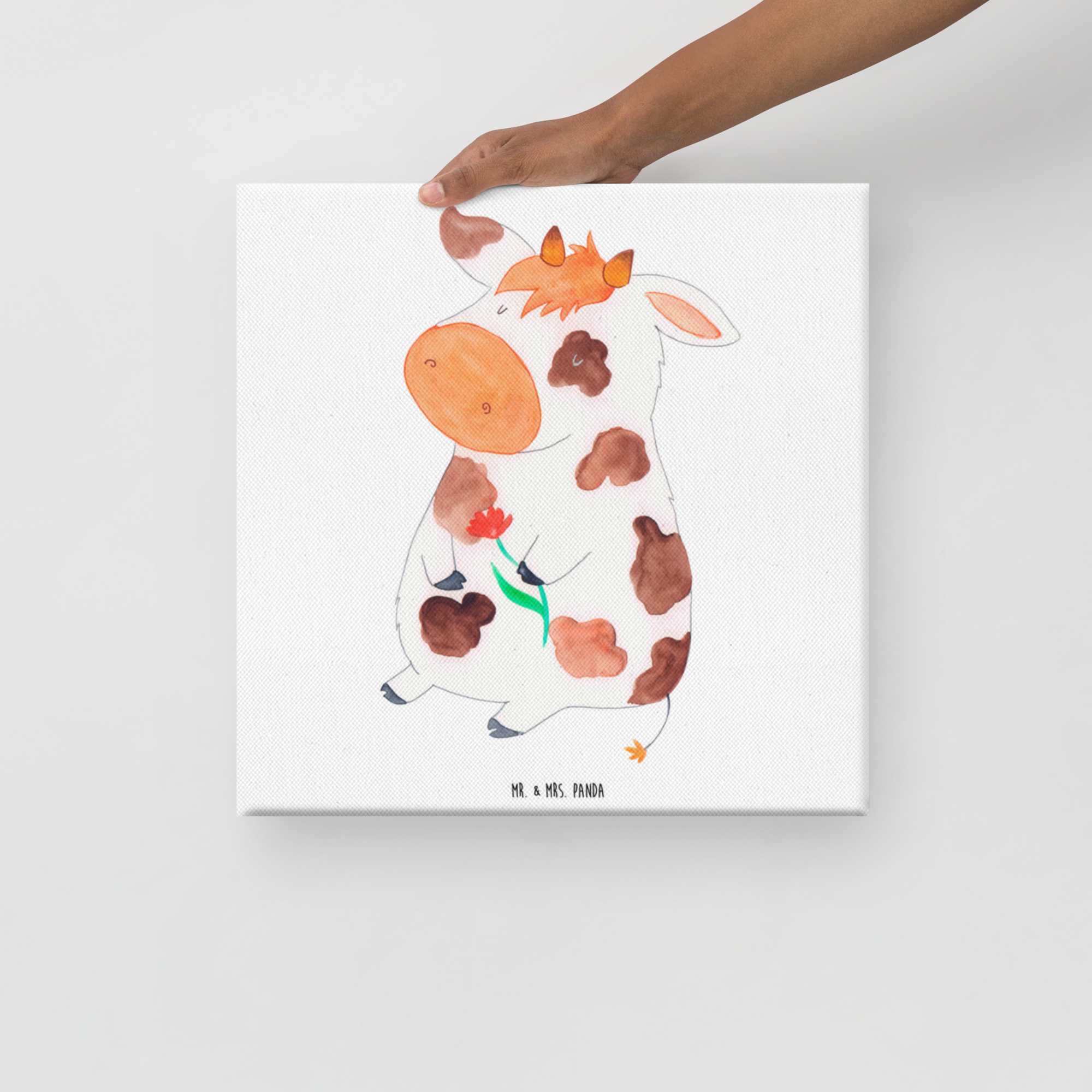 Leinwand Bild Kuh - 40 x 40 cm - mit Spruch