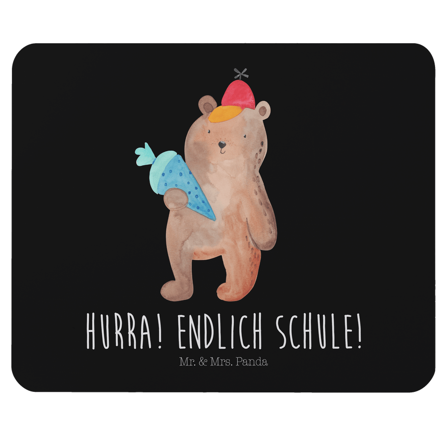 Mauspad Bär mit Schultüte - mit Spruch - Schwarz
