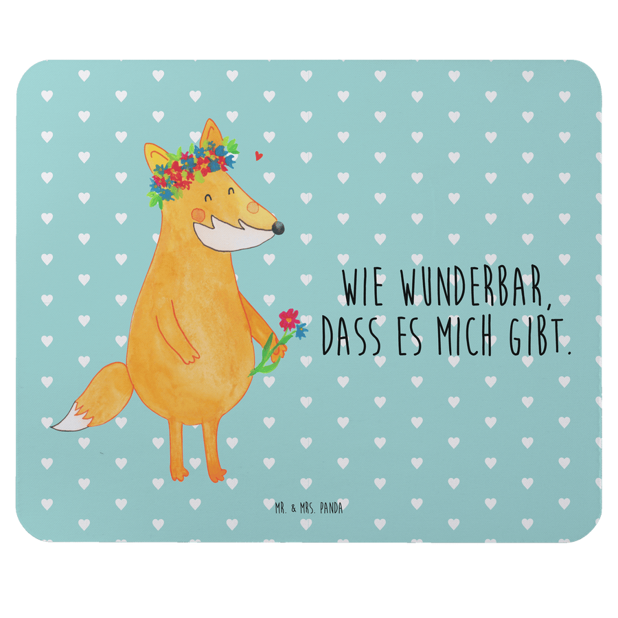 Mauspad Fuchs Blumenliebe - mit Spruch - Türkis Pastell