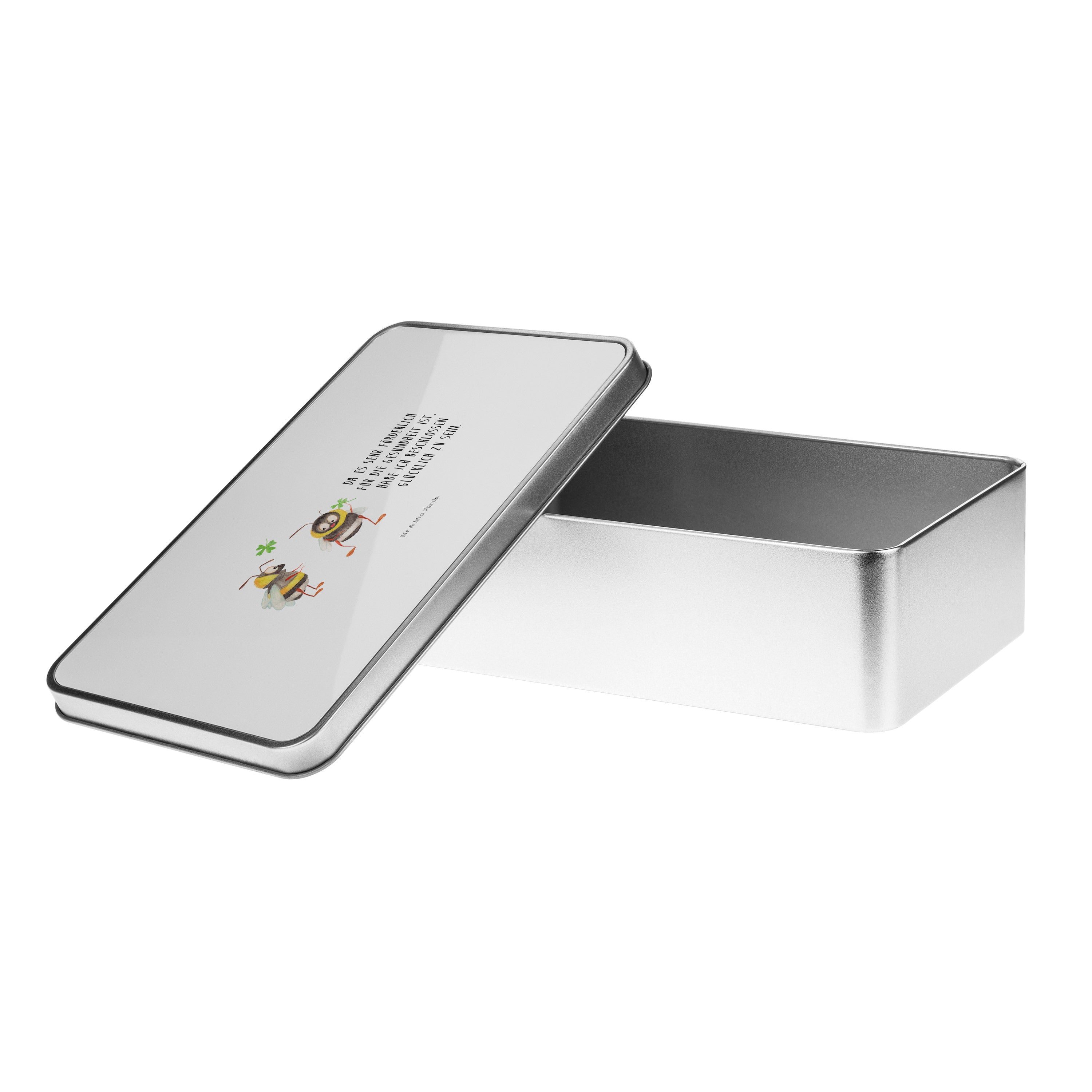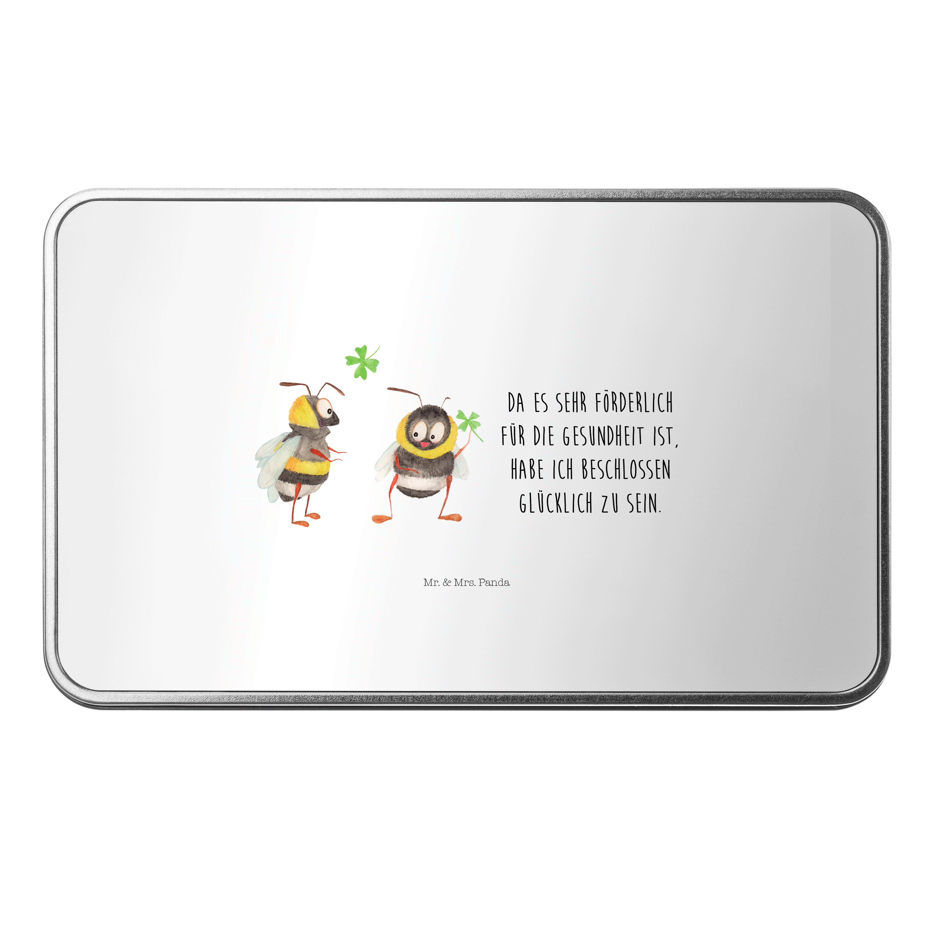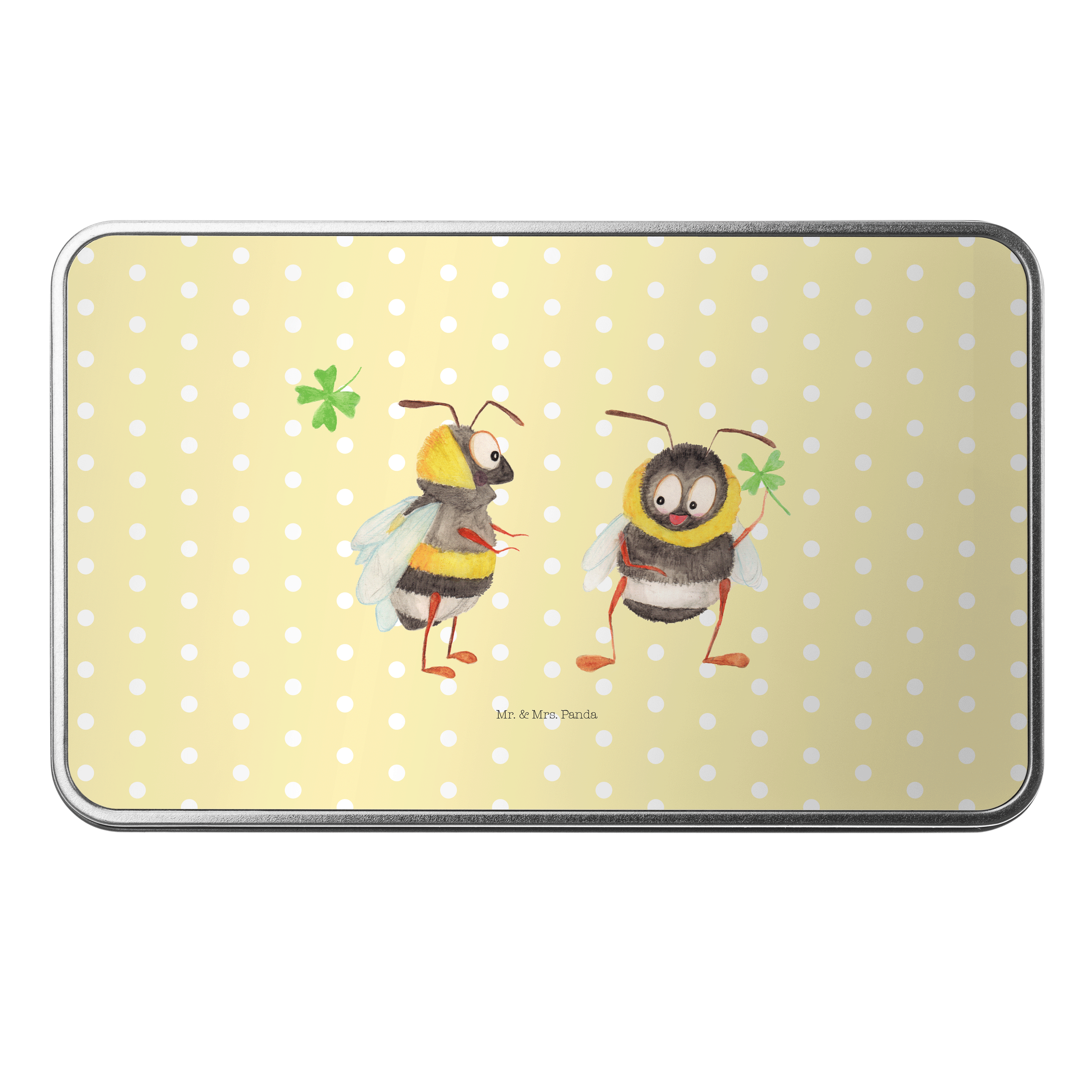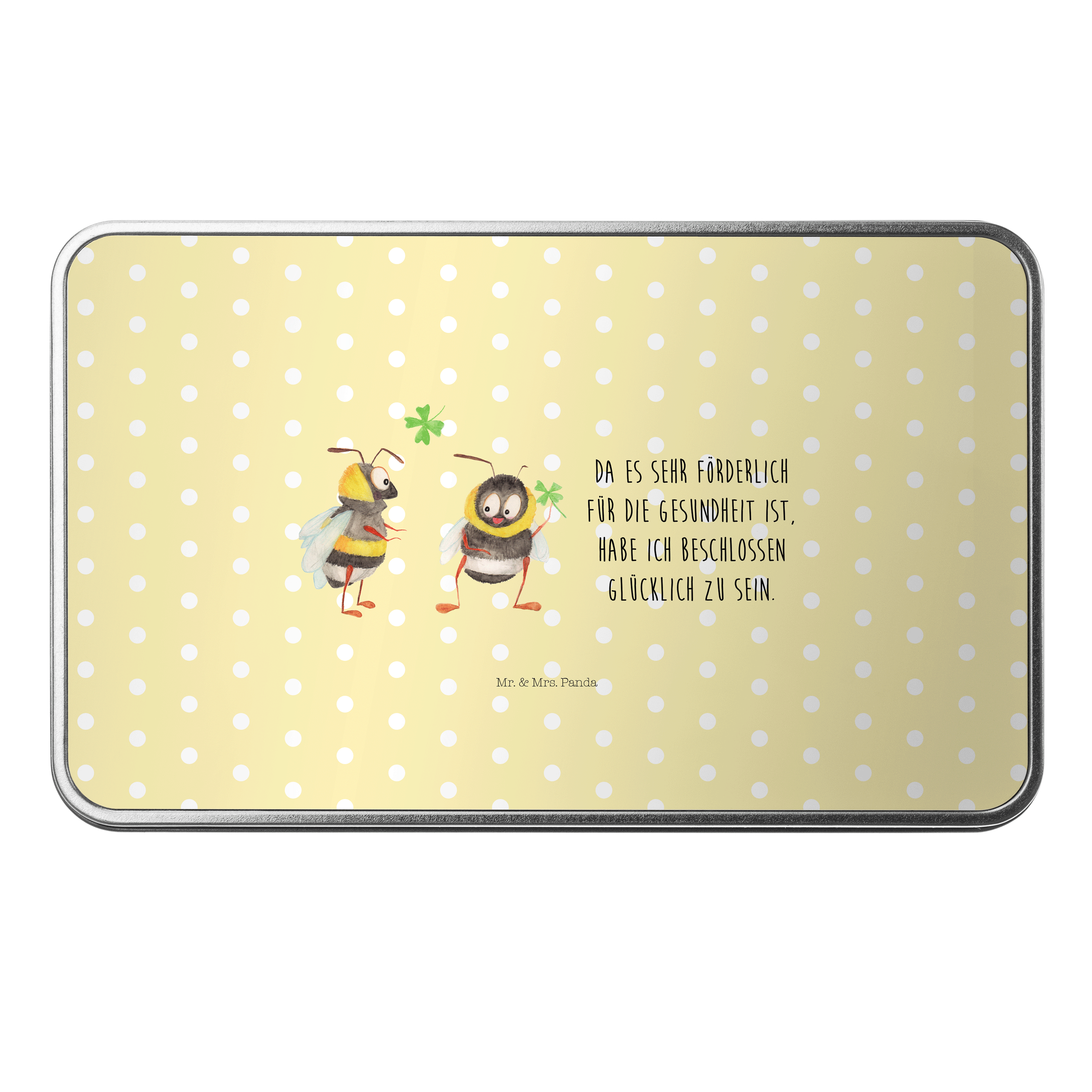 Metalldose rechteckig Hummeln mit Kleeblatt - mit Spruch - Gelb Pastell