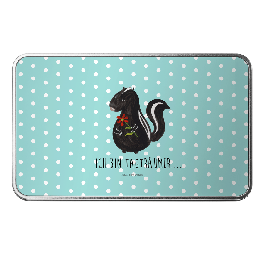 Metalldose rechteckig Stinktier Blume - mit Spruch - Türkis Pastell