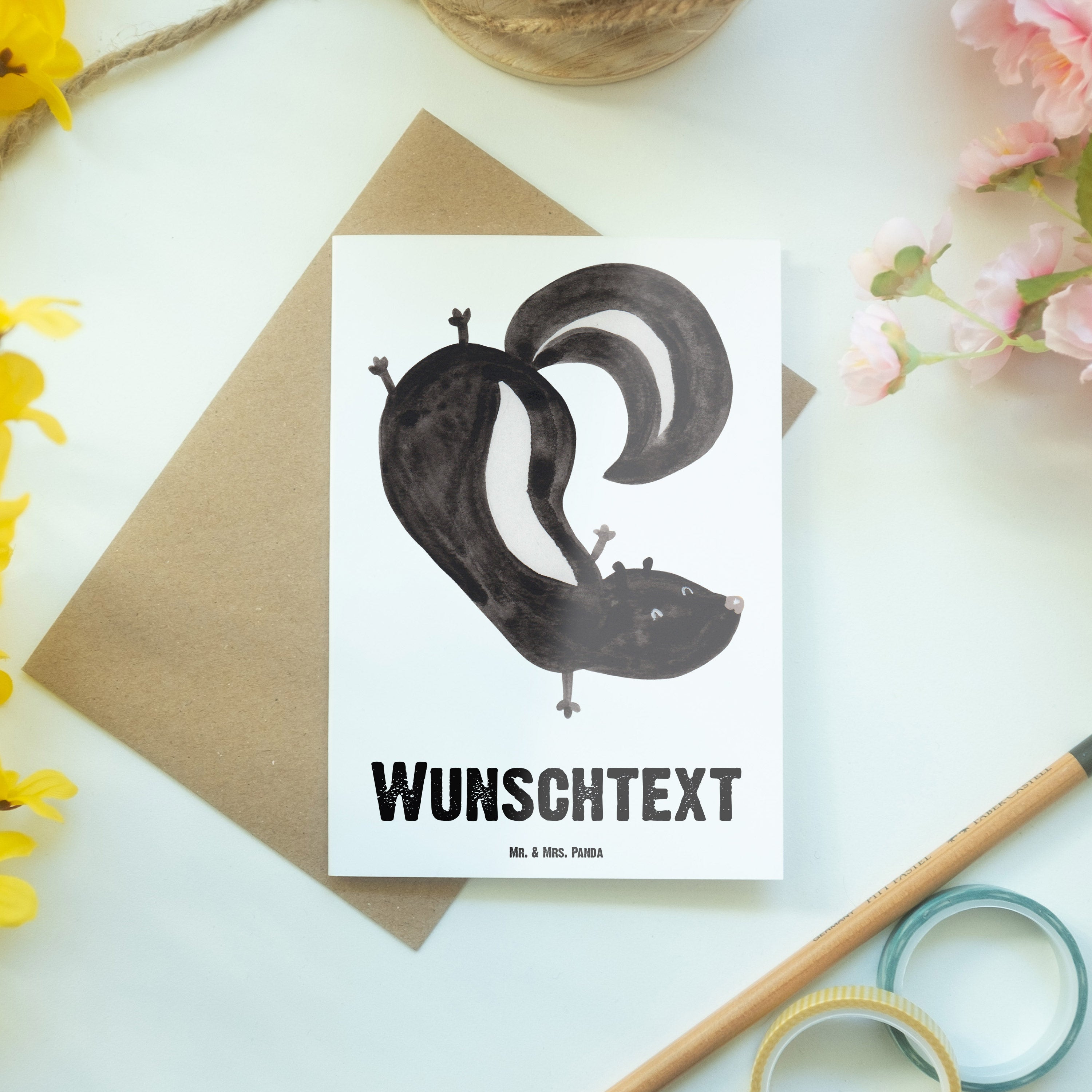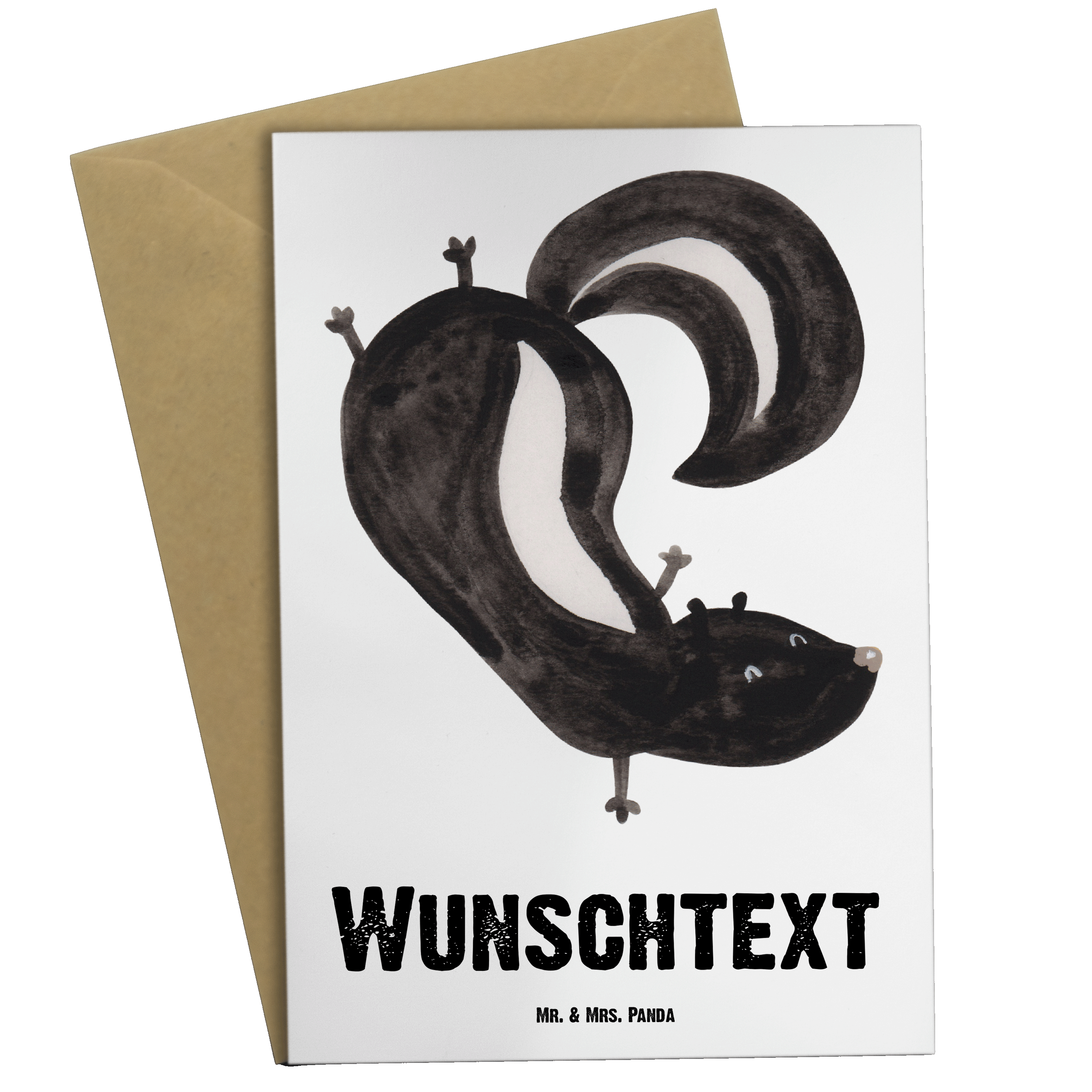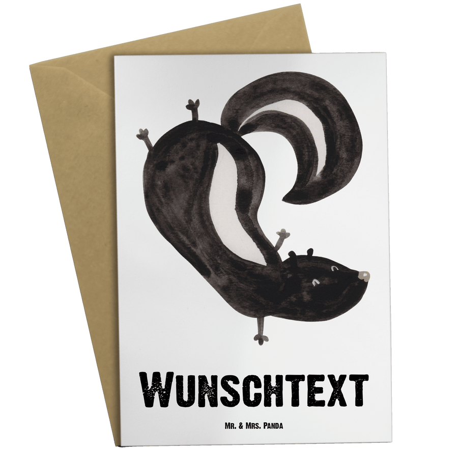Du kannst einfach nicht genug bekommen von Stinktieren? Dann ist das Stinktier Handstand Motiv von Mr. & Mrs. Panda genau das Richtige für Dich. Das süße Stinktier zeigt Dir, wie man auf sportliche Art einen Handstand hinlegt. Mit seinen liebenswerten Augen und dem typischen Stinktier-Look schaut es Dich dabei an und vermittelt Dir das richtige Sommerfeeling. Das Motiv wurde für Dich in liebevoller Handarbeit mit Aquarellfarben gemalt und zieht sicherlich viele Blicke auf sich.