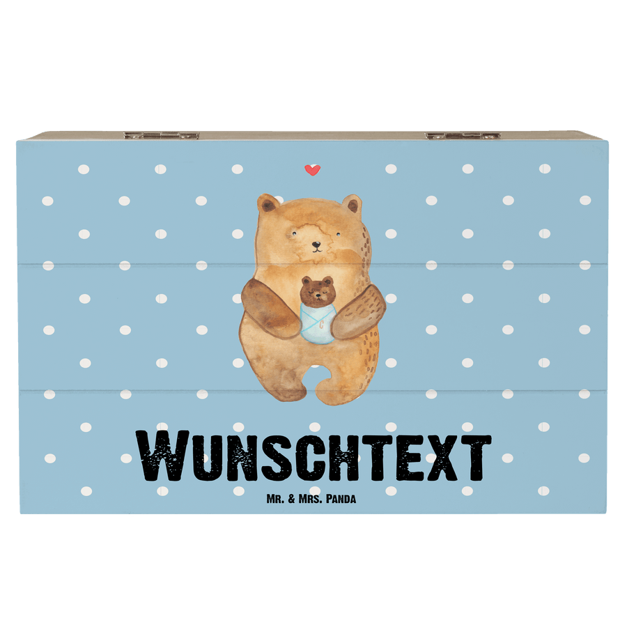Personalisierte Holzkiste Bär mit Baby - Blau Pastell - 19 x 12 cm