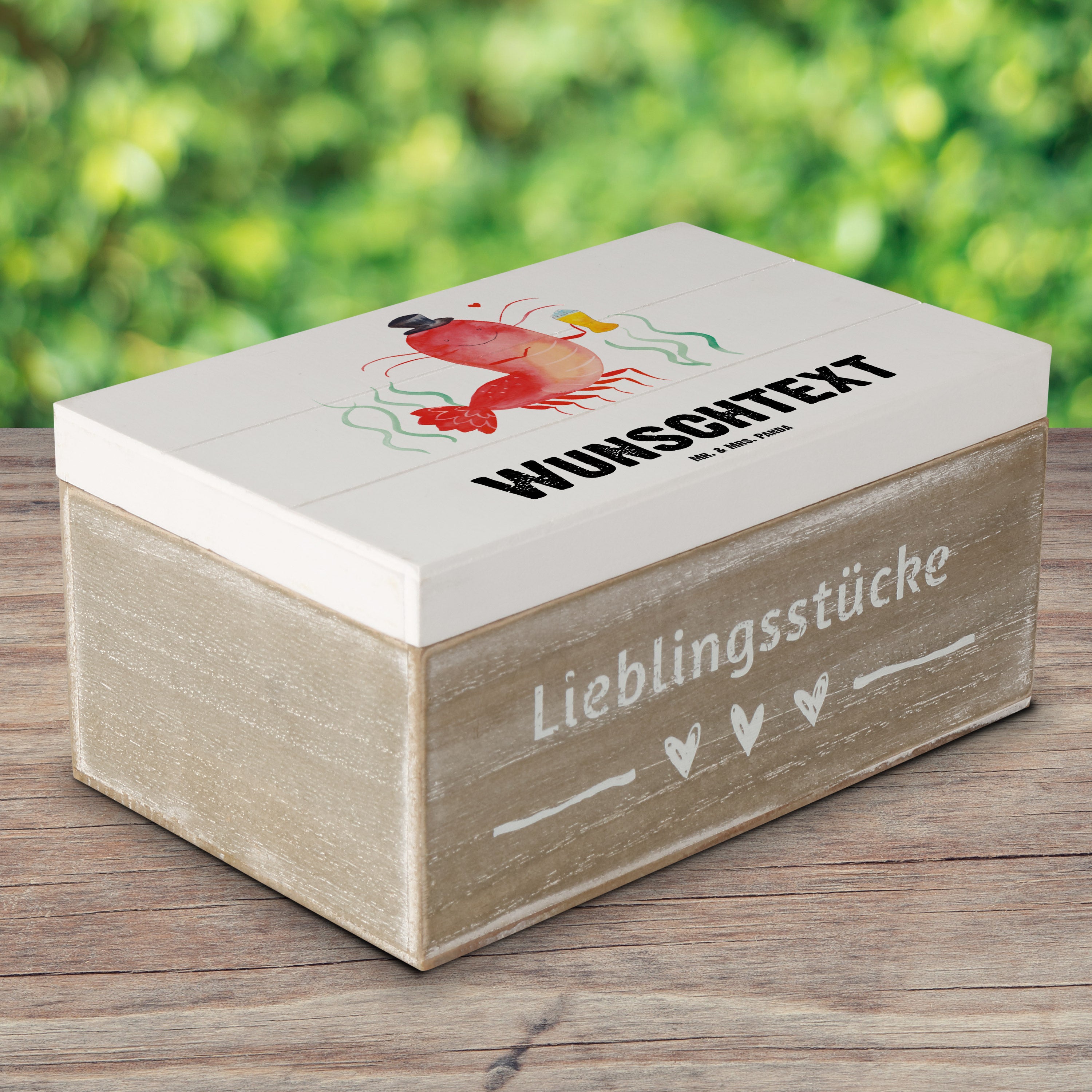 Personalisierte Holzkiste Hummer mit Weizen - Weiß - 19 x 12 cm