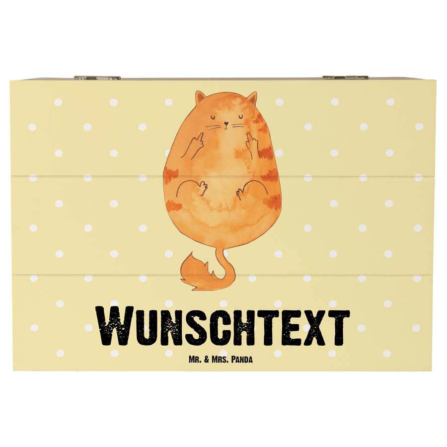 Personalisierte Holzkiste Katze Frühaufsteher - Gelb Pastell - 22x15cm - Personalisierte Holzkiste