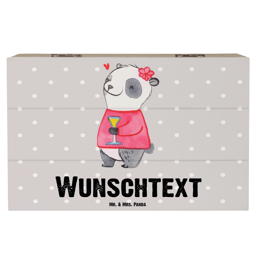 Personalisierte Holzkiste Panda Beste Schwiegertochter der Welt - Grau Pastell - 19 x 12 cm