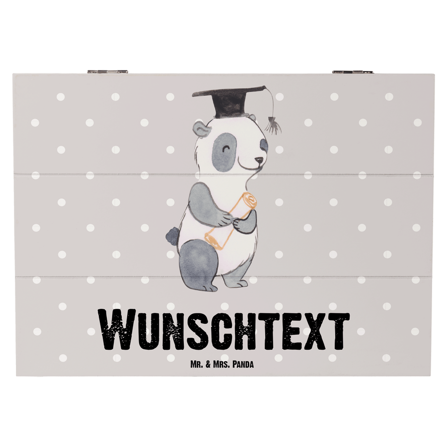 Personalisierte Holzkiste Panda Beste Studentin der Welt - 25 x 18 cm - Grau Pastell