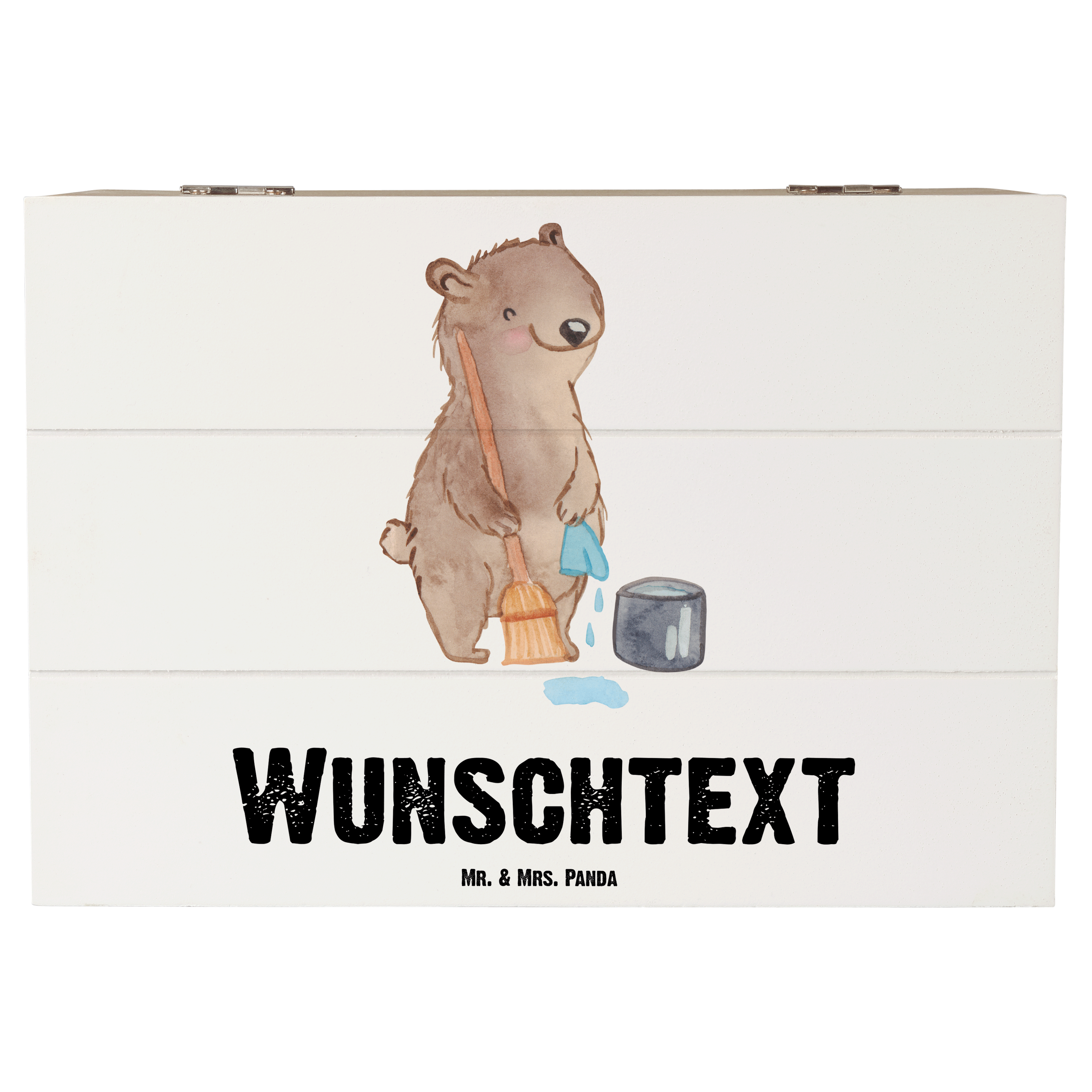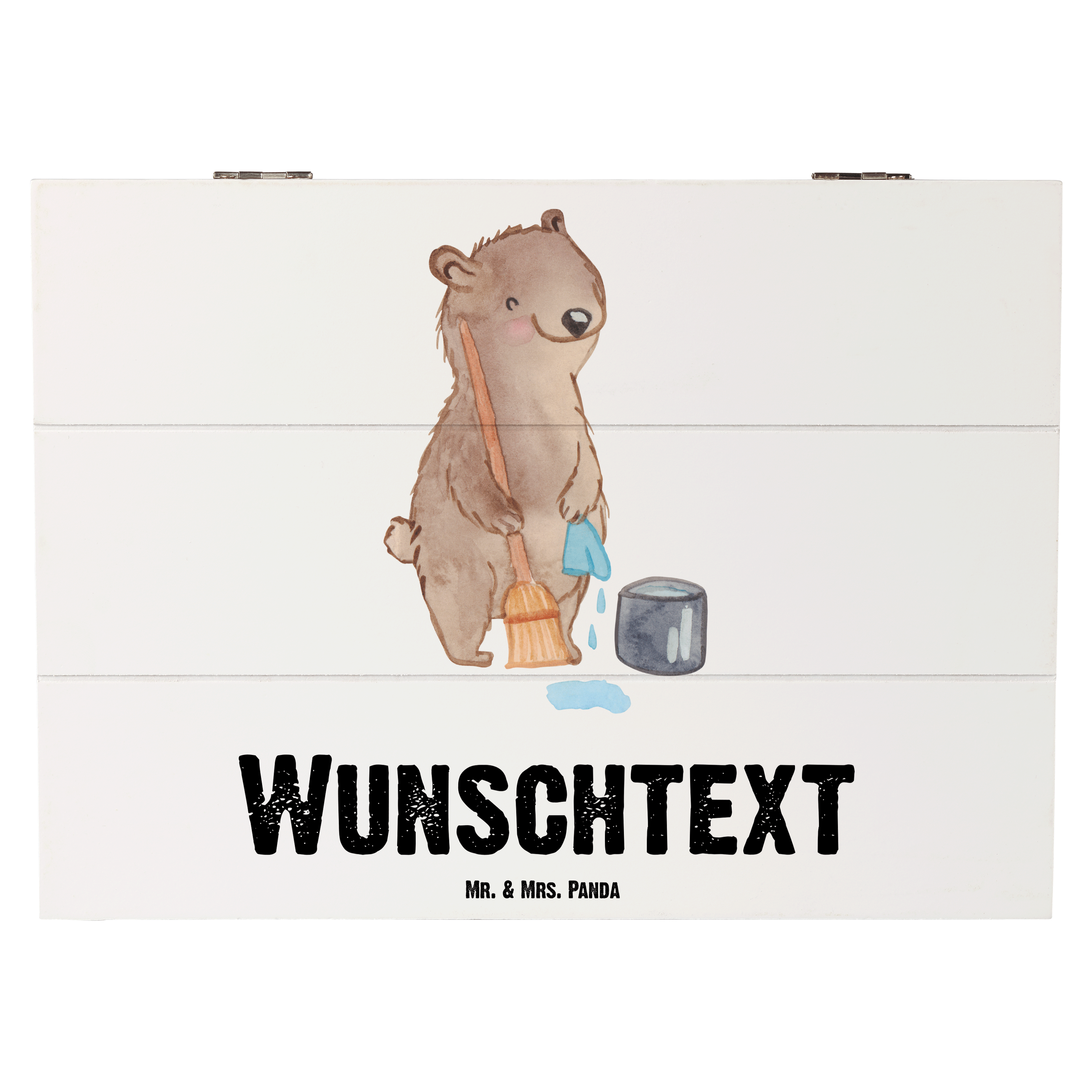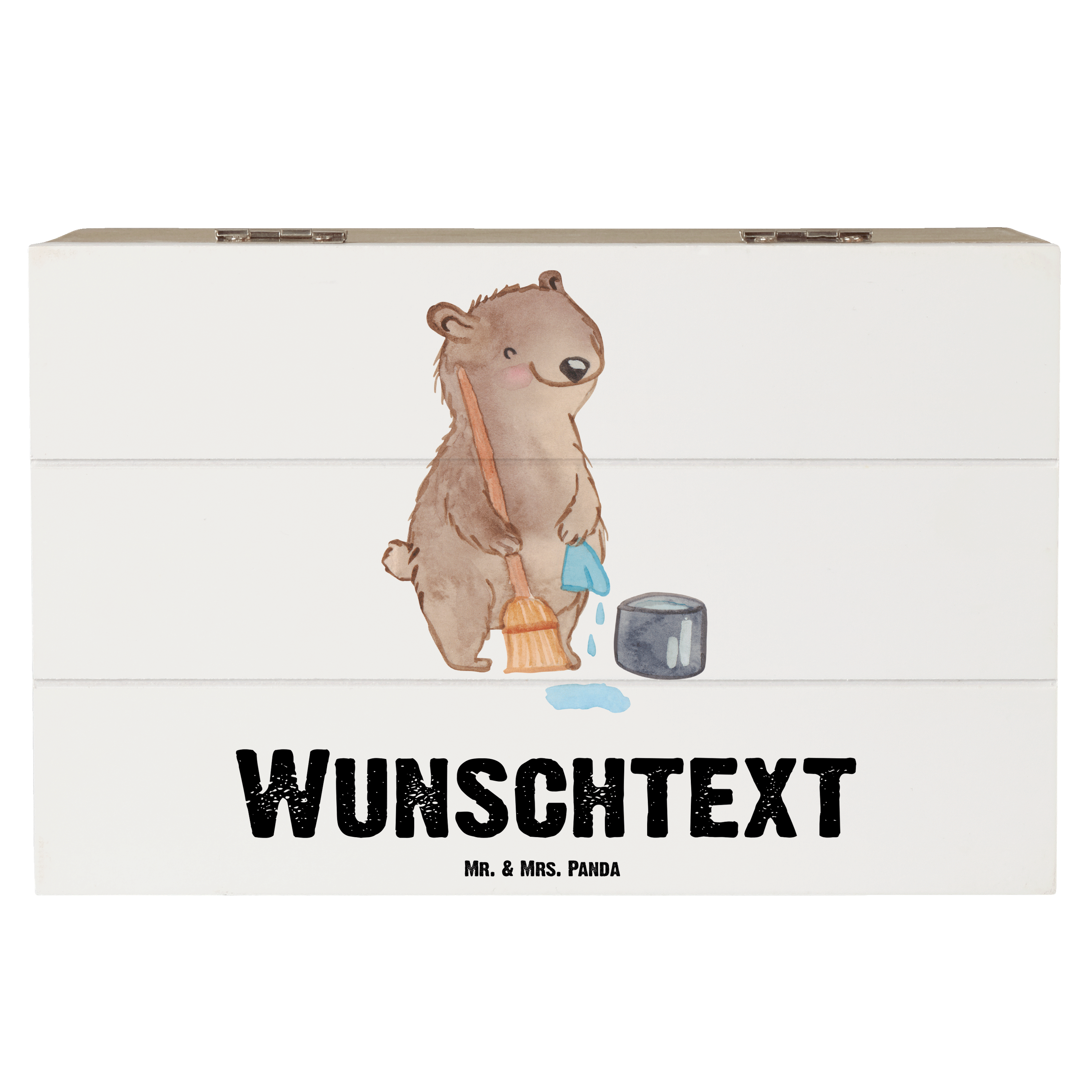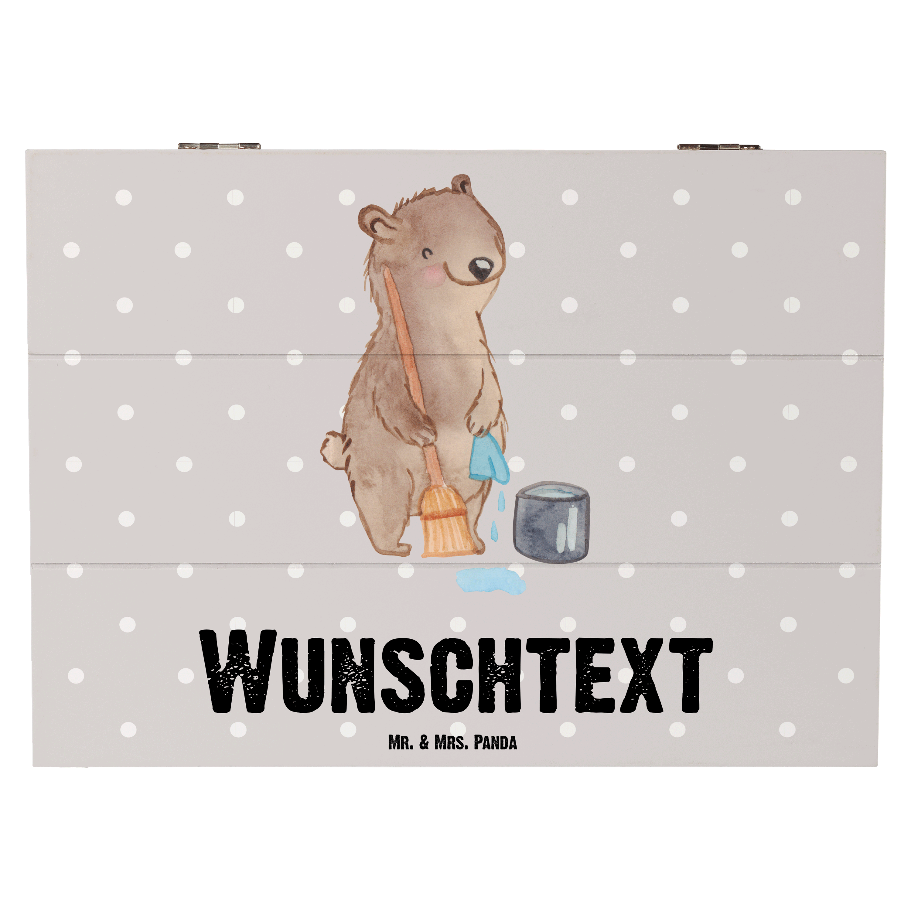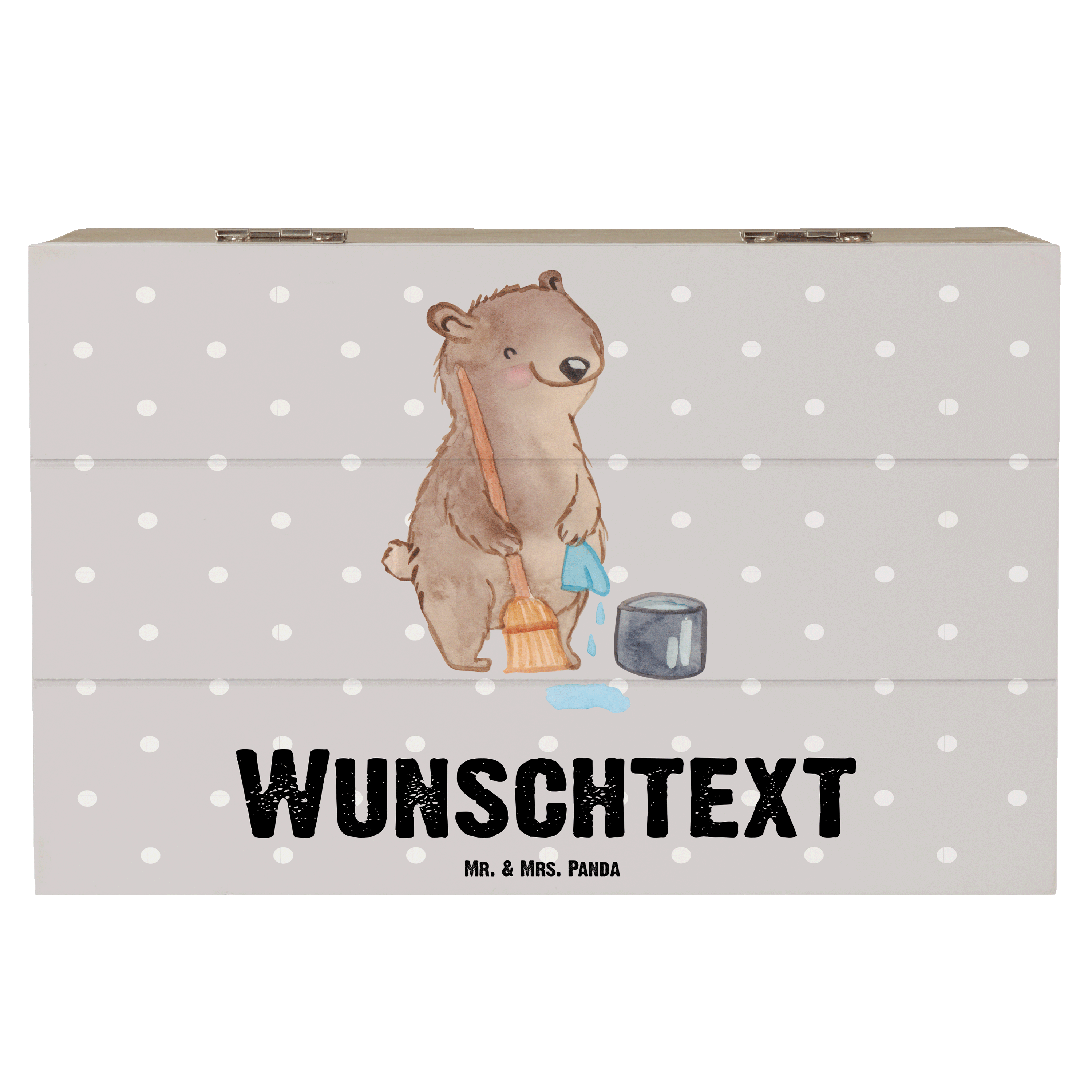 Personalisierte Holzkiste Reinigungskraft mit Herz - 25 x 18 cm - Grau Pastell