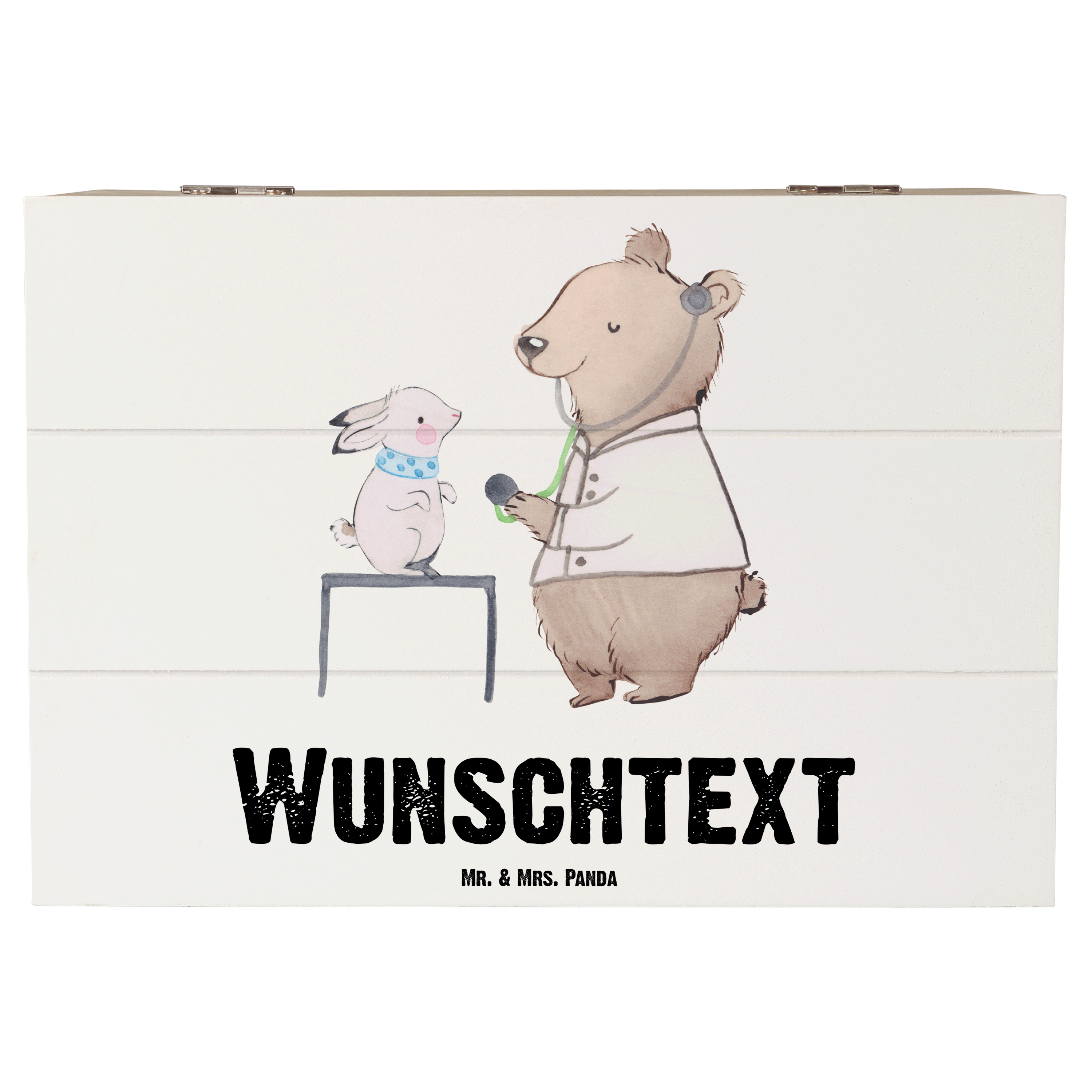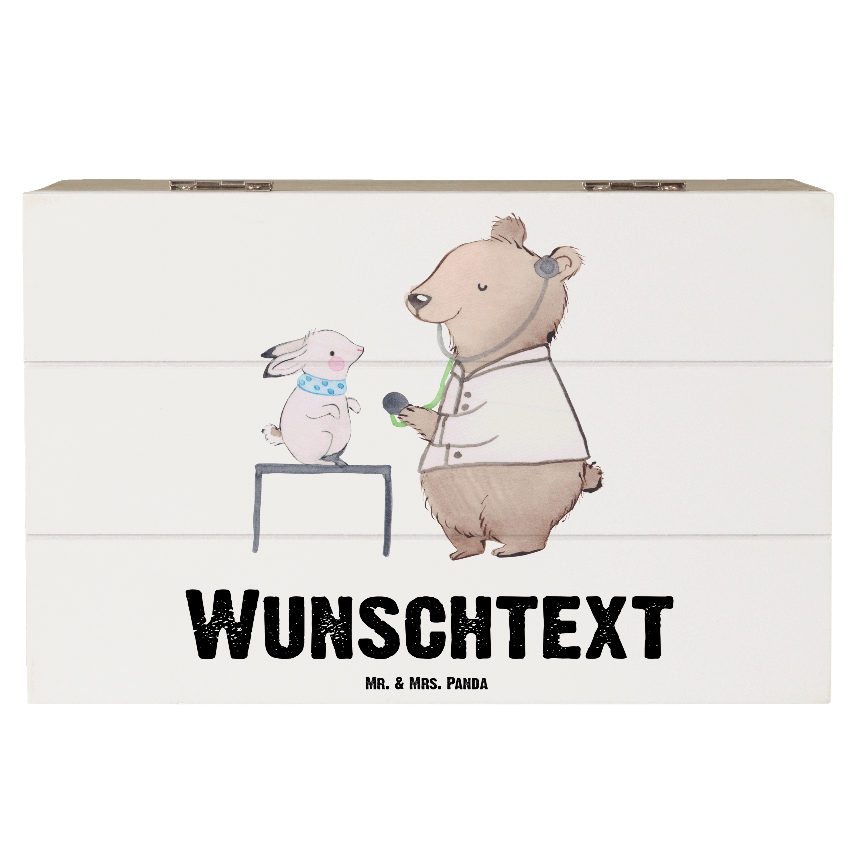 Personalisierte Holzkiste Tierarzt mit Herz - 25 x 18 cm - Grau Pastell