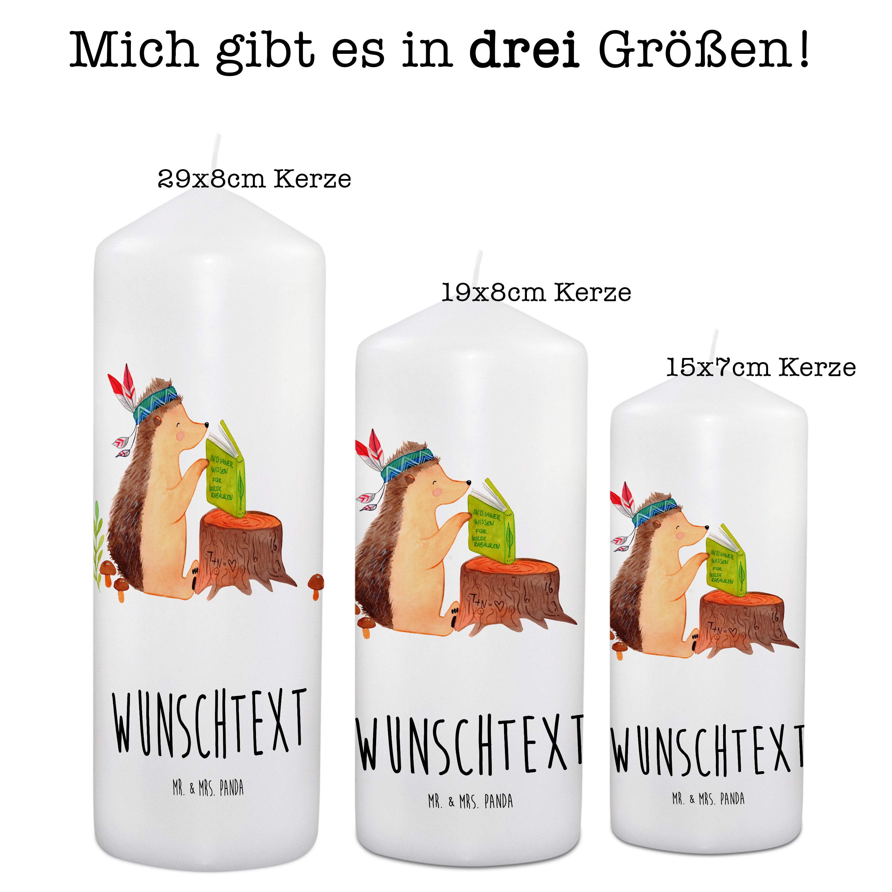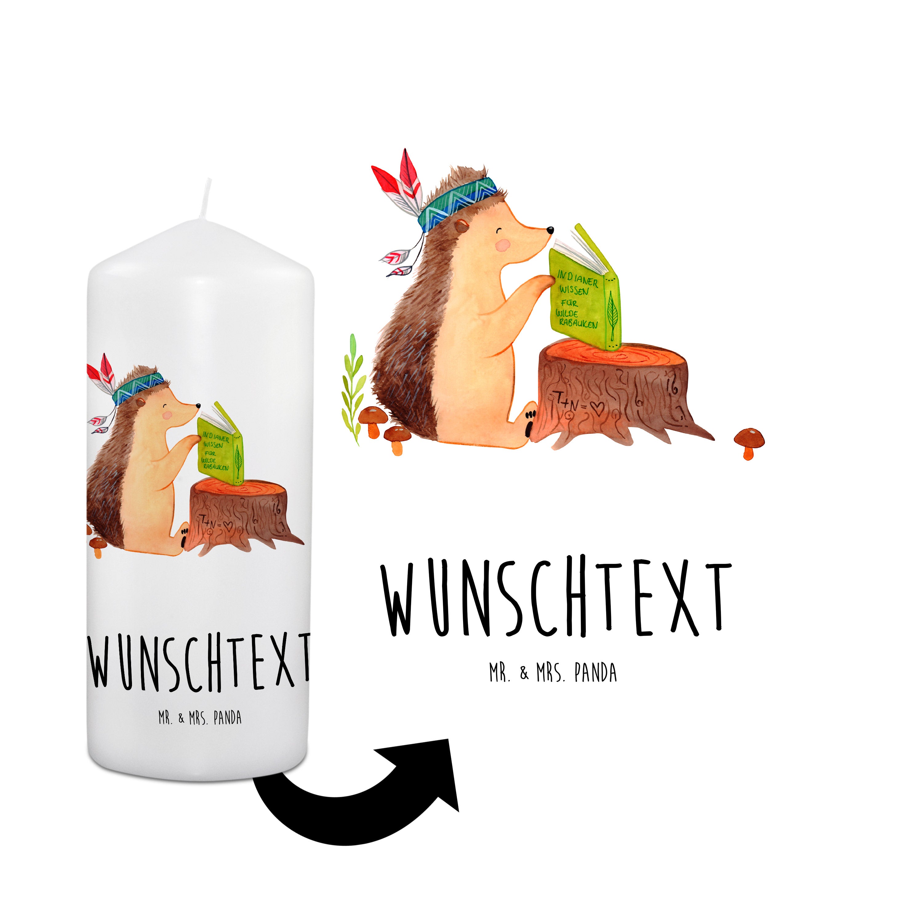 Personalisierte Kerze Igel Indianer - 15 x 7 cm