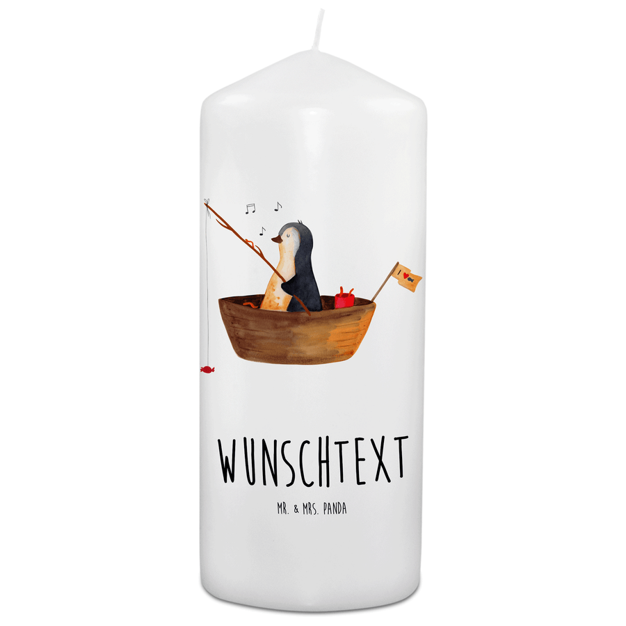 Personalisierte Kerze Pinguin Angelboot - 15 x 7 cm