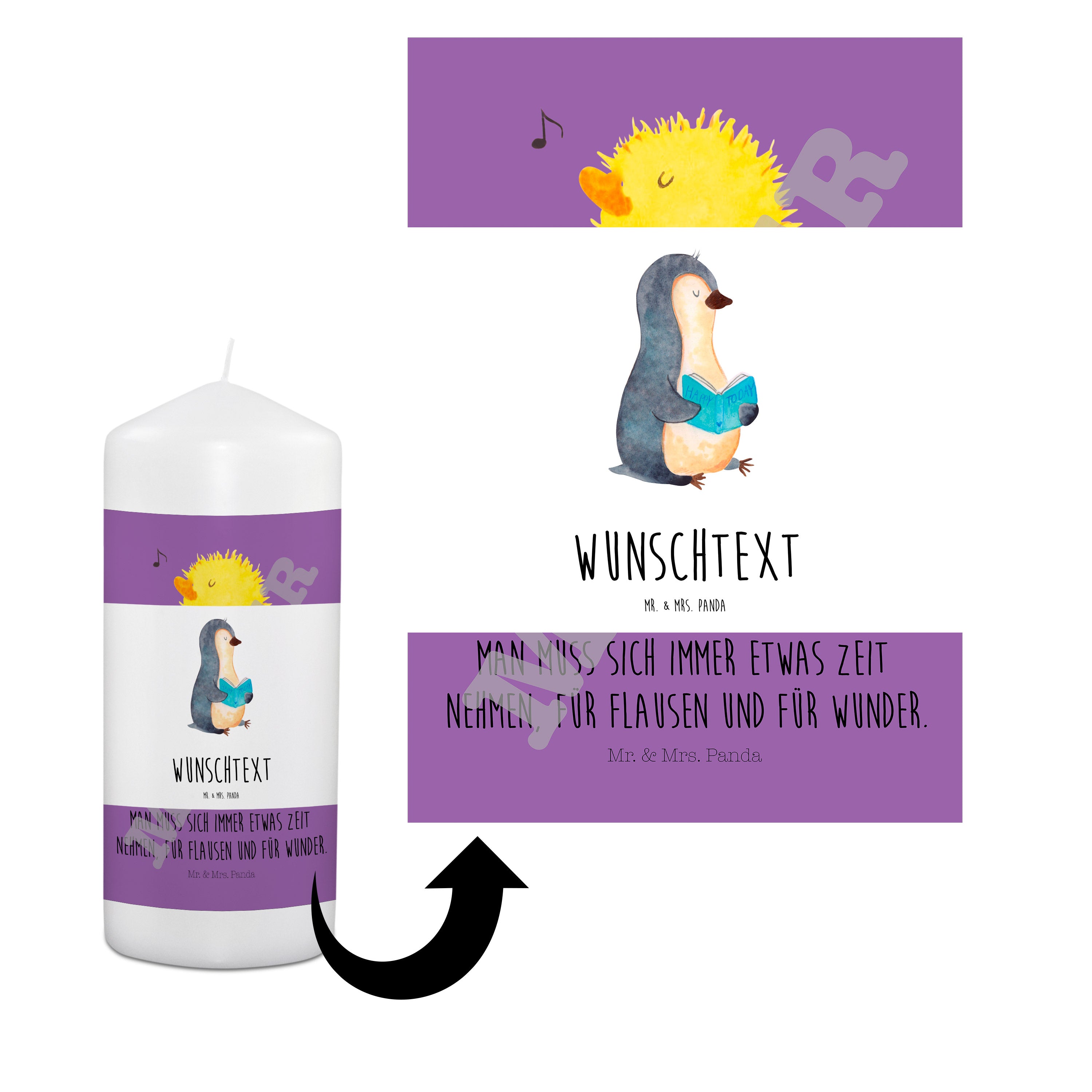Personalisierte Kerze Pinguin Buch - 15 x 7 cm