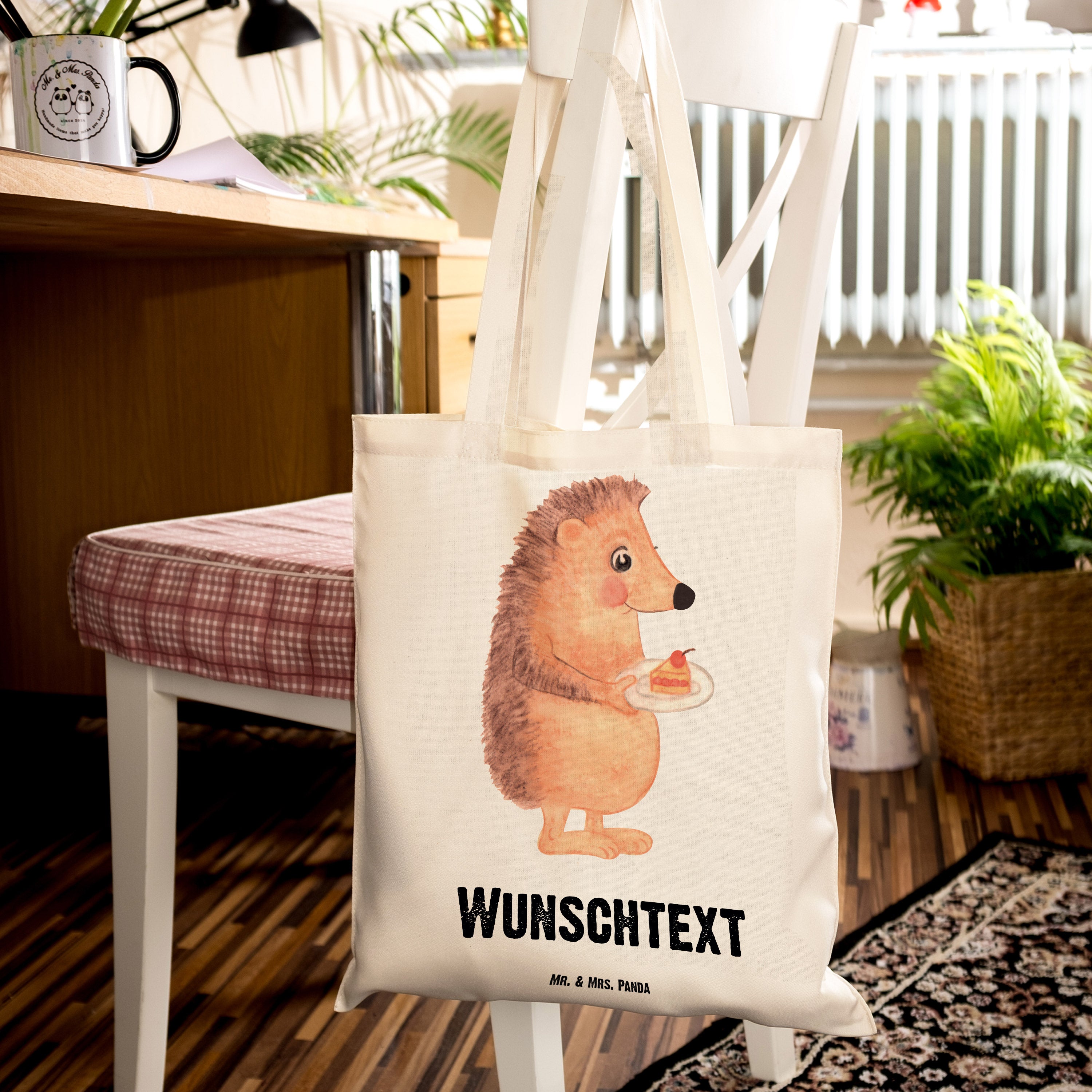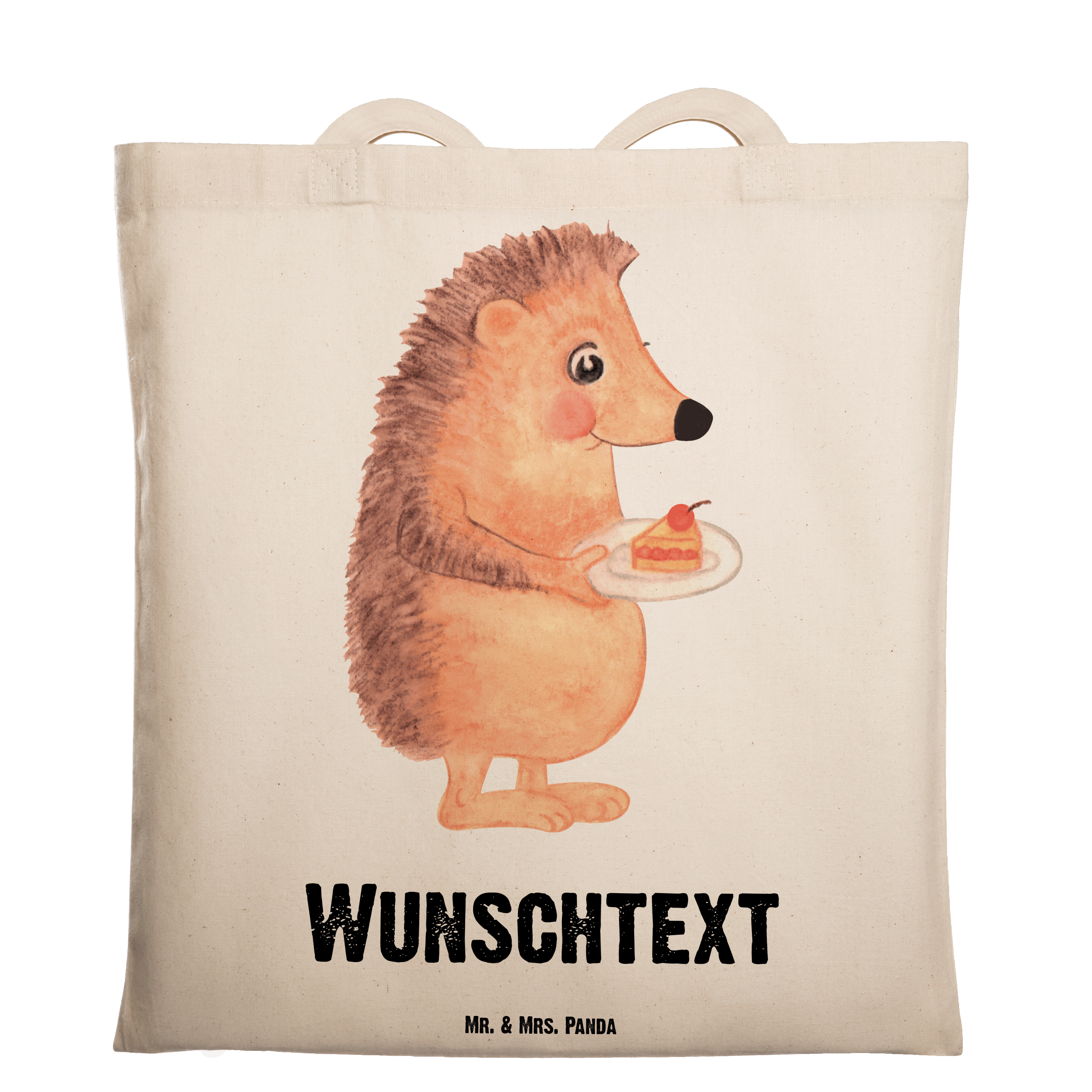 Personalisierte Tragetasche Igel mit Kuchenstück - Transparent
