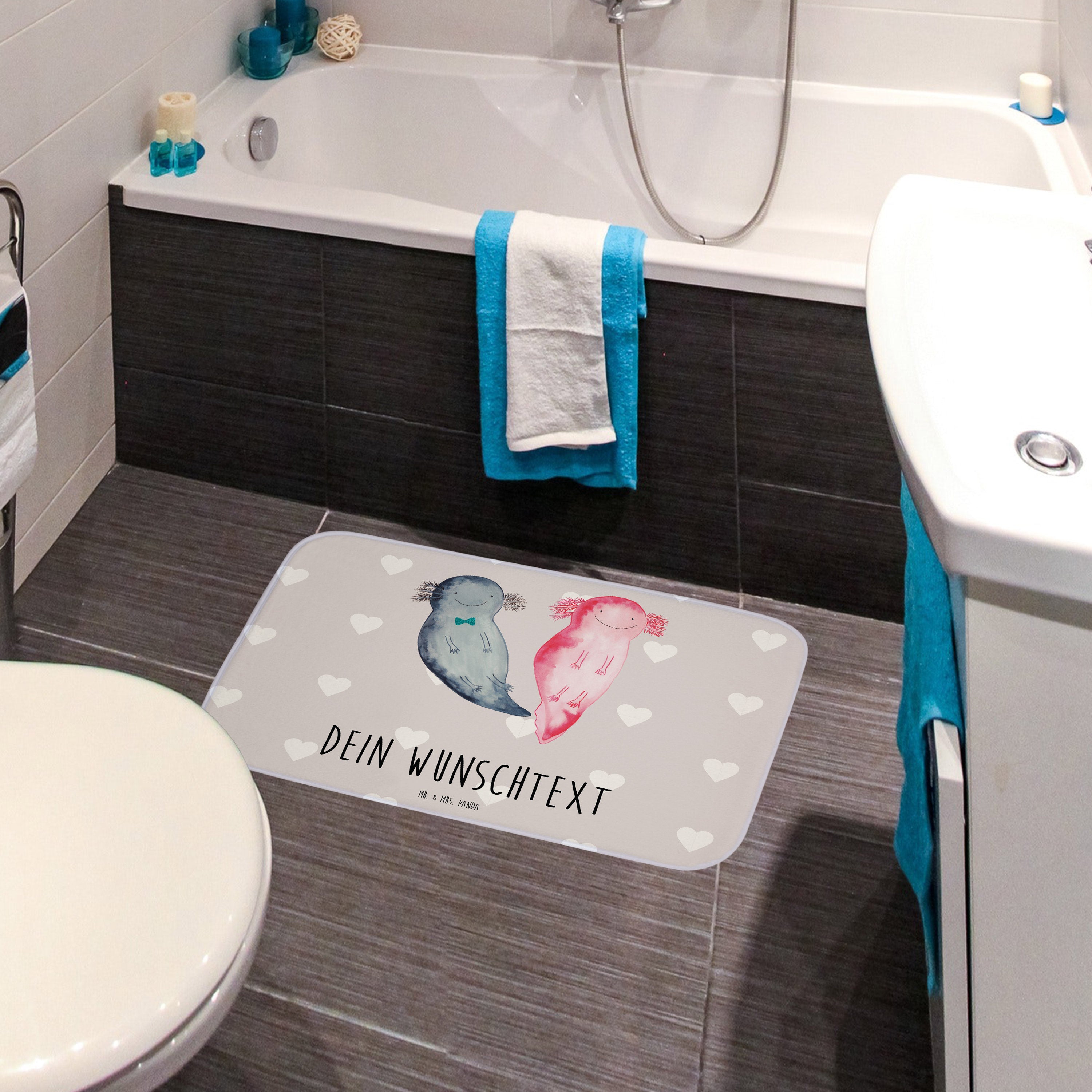 Personalisierter Badvorleger Axolotl Liebe