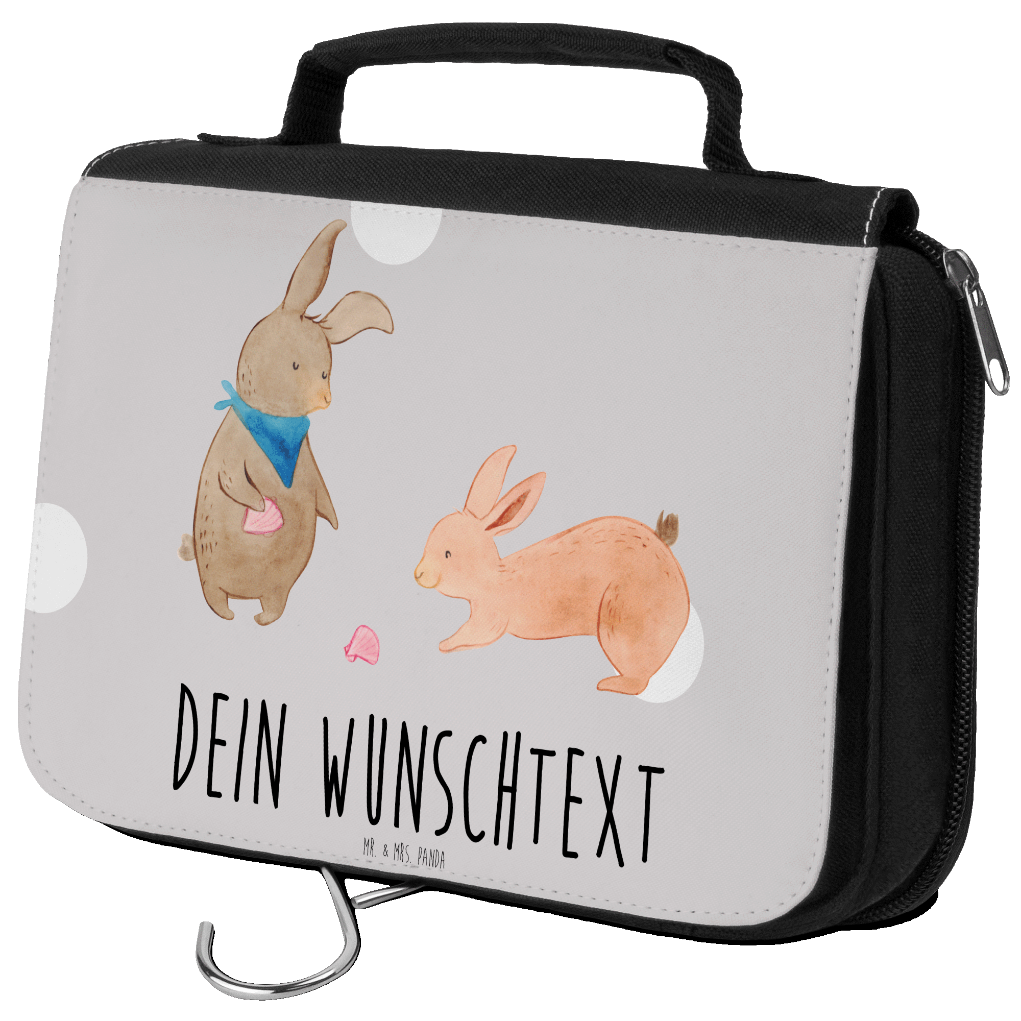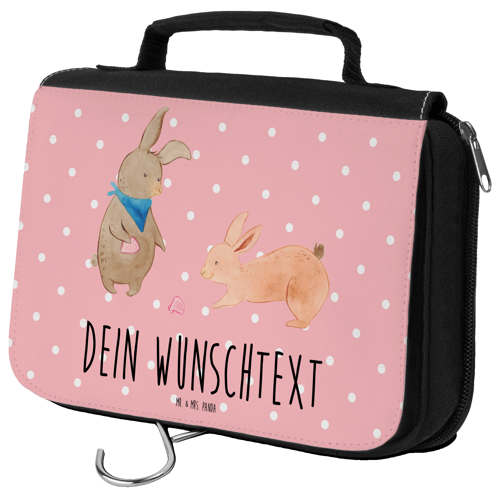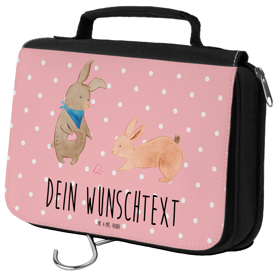 Personalisierter Kulturbeutel Hasen Muschel - Rot Pastell