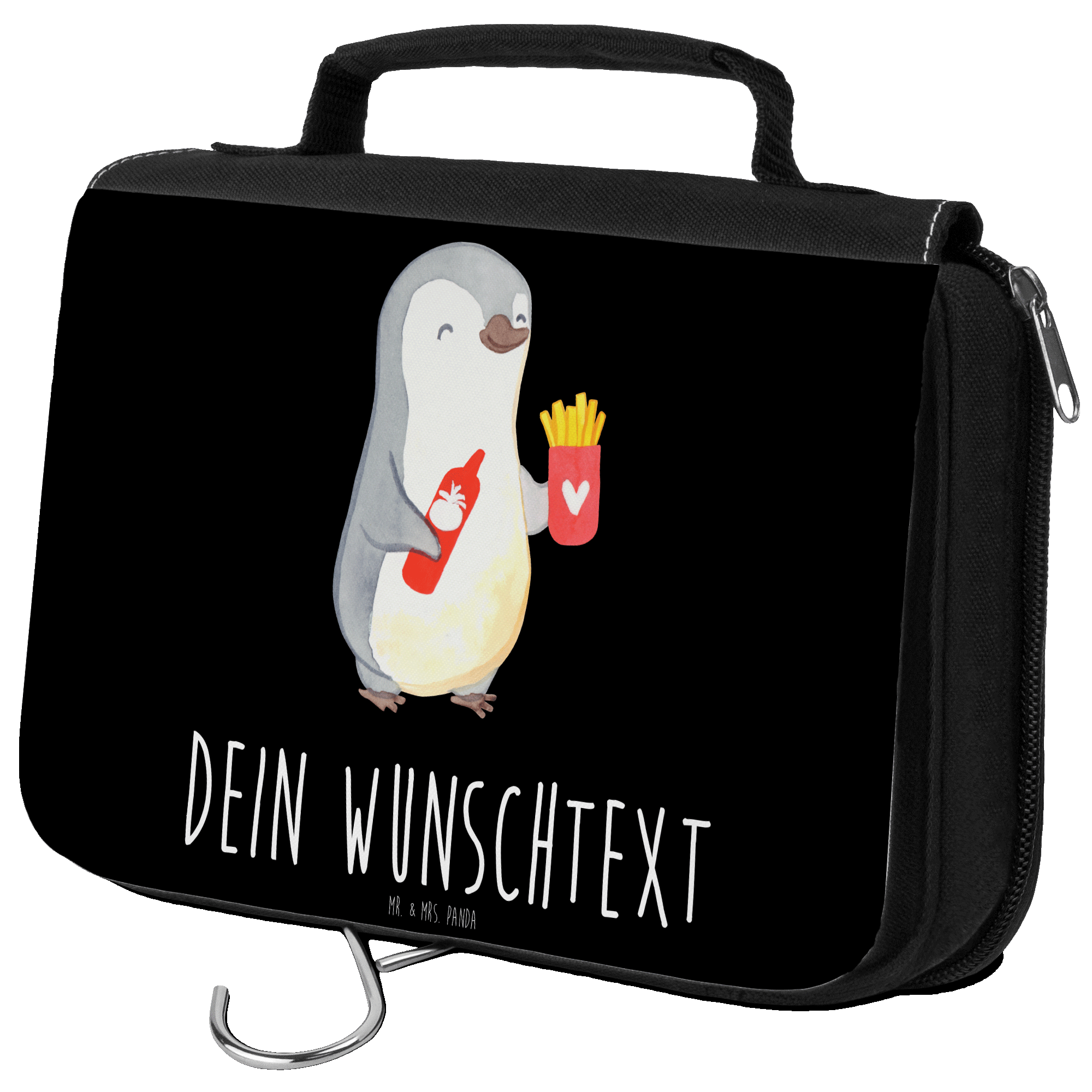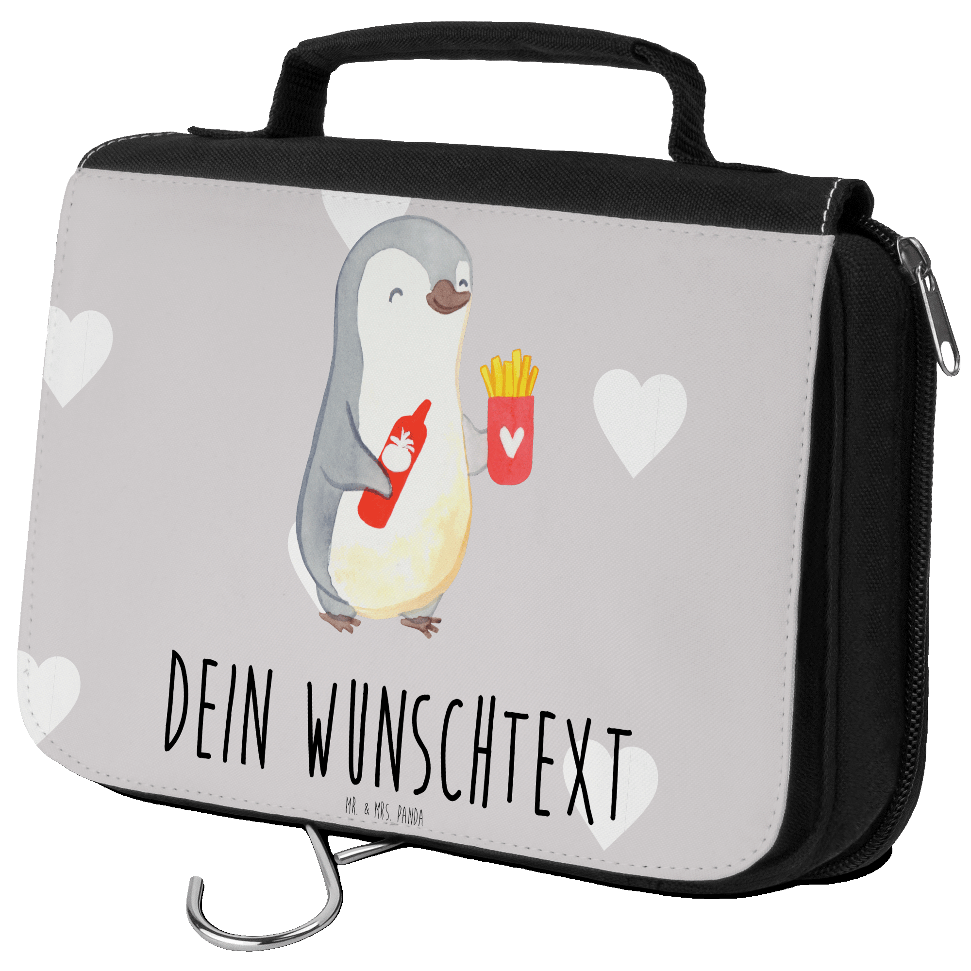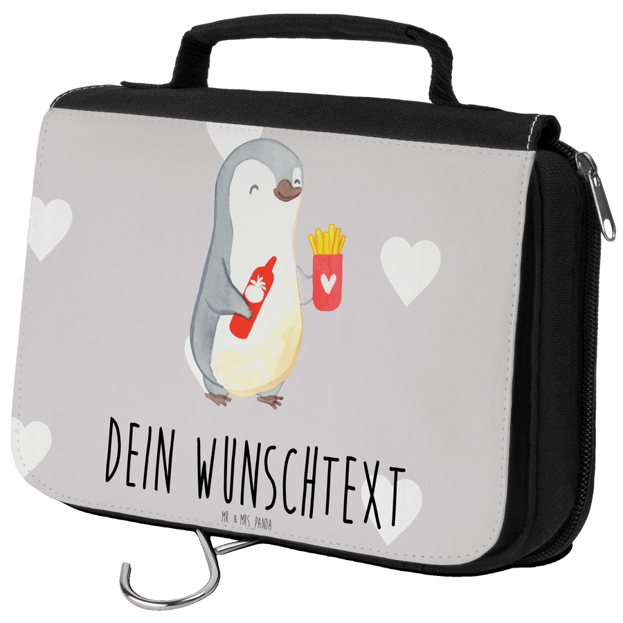 Personalisierter Kulturbeutel Pinguin Pommes - Grau Pastell