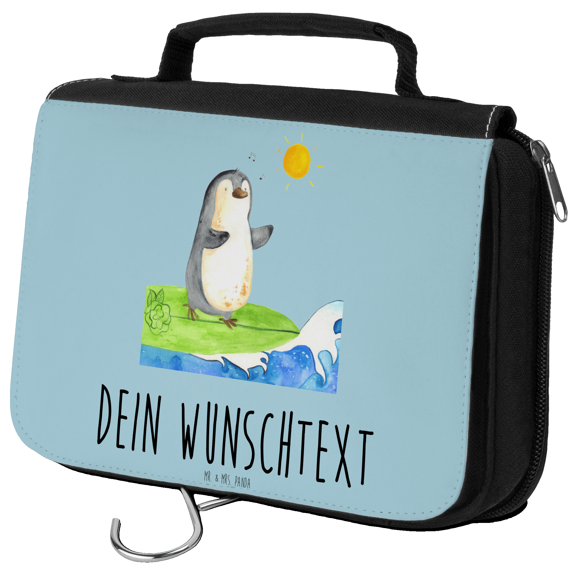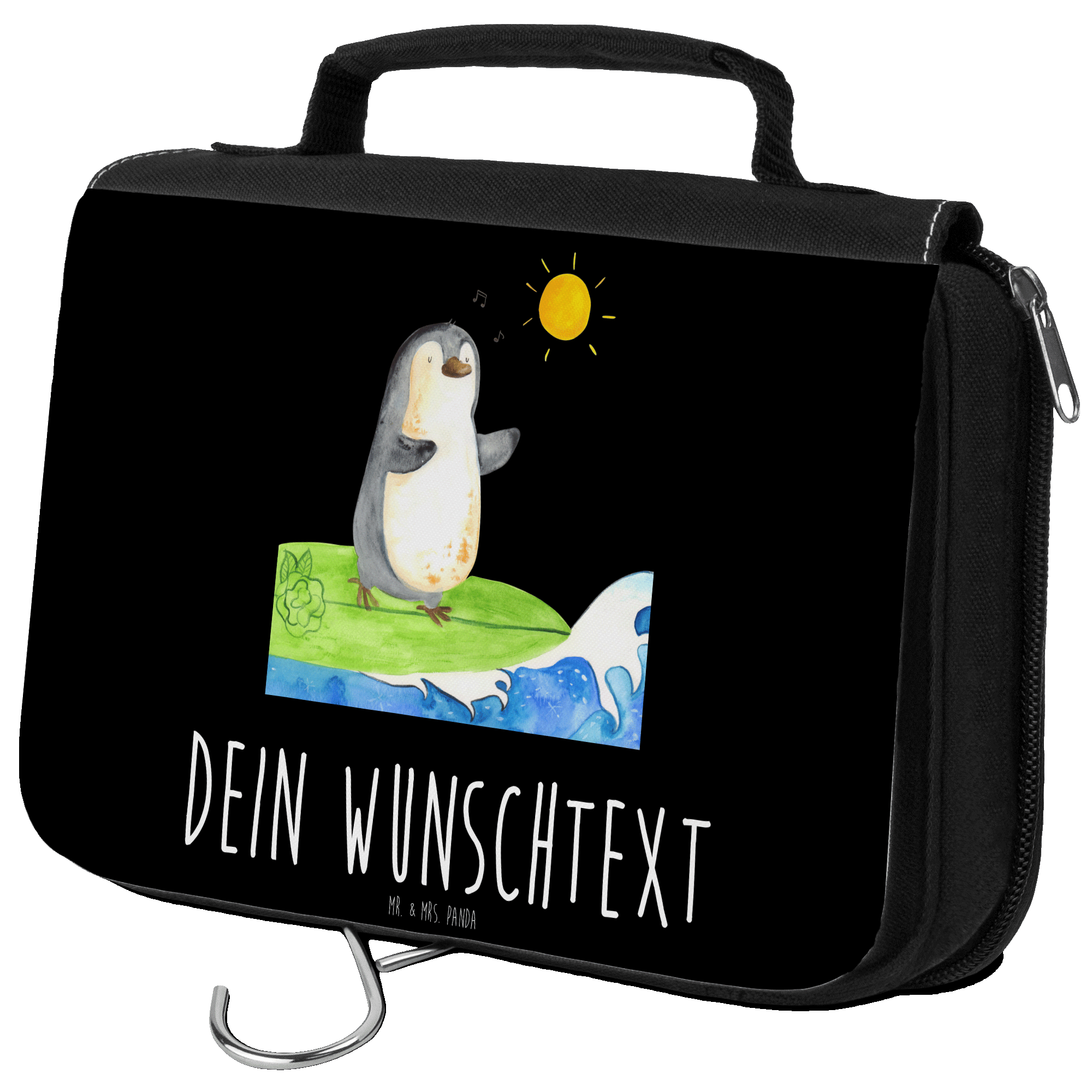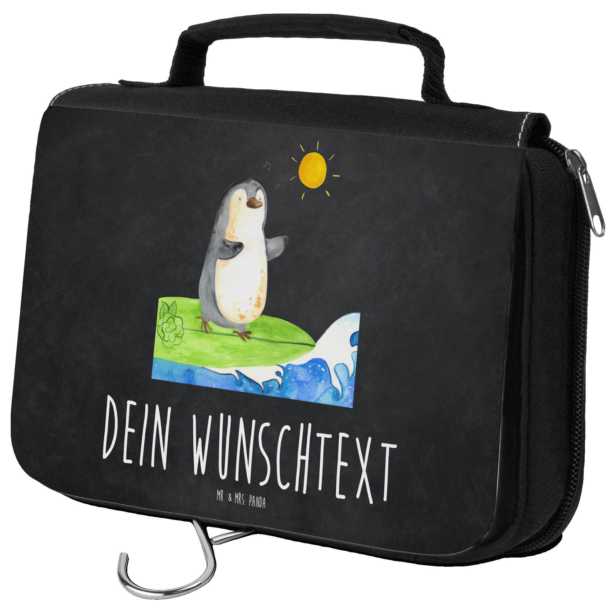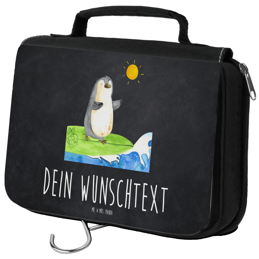 Personalisierter Kulturbeutel Pinguin Surfer - Kreidetafel
