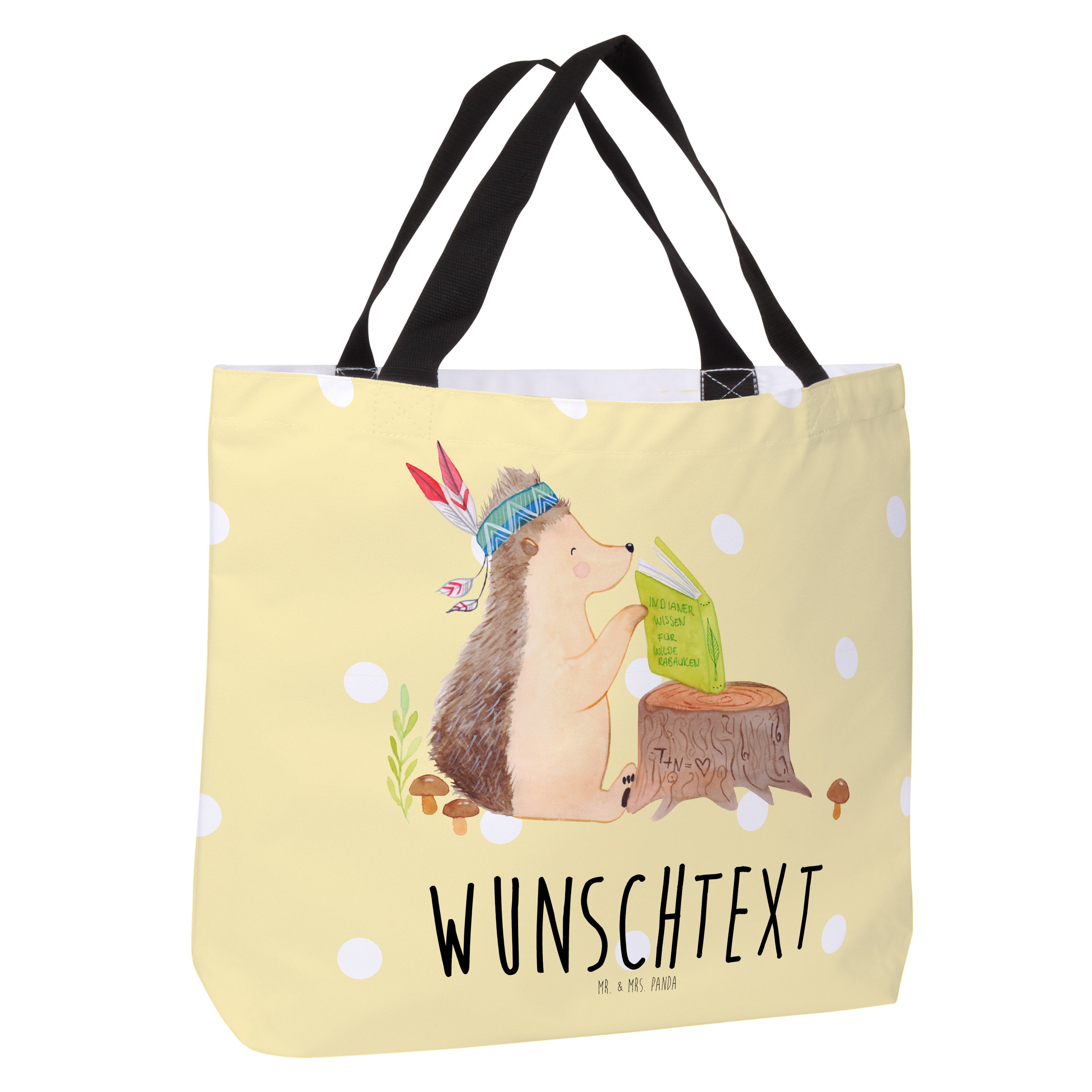 Personalisierter Shopper Igel Indianer - Gelb Pastell