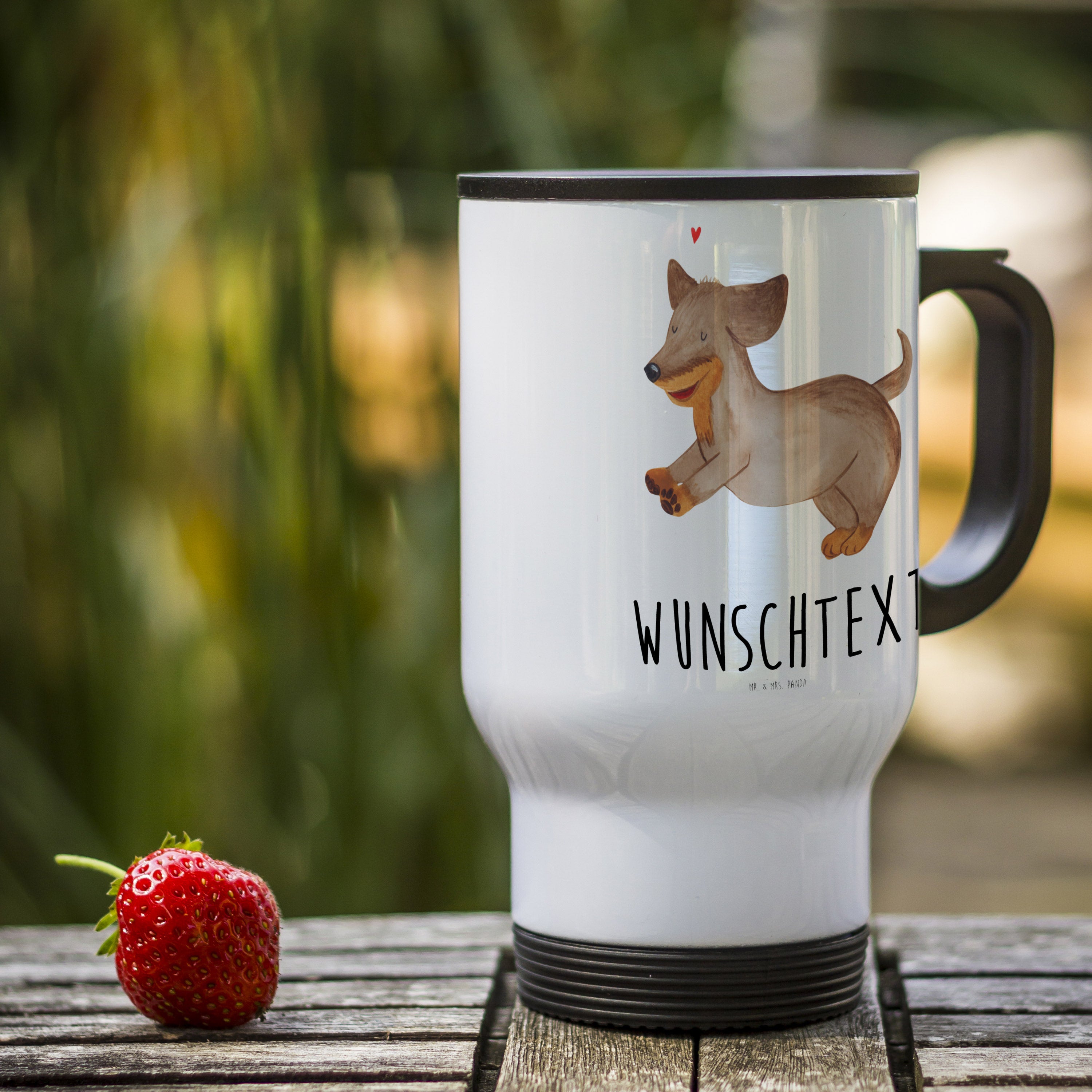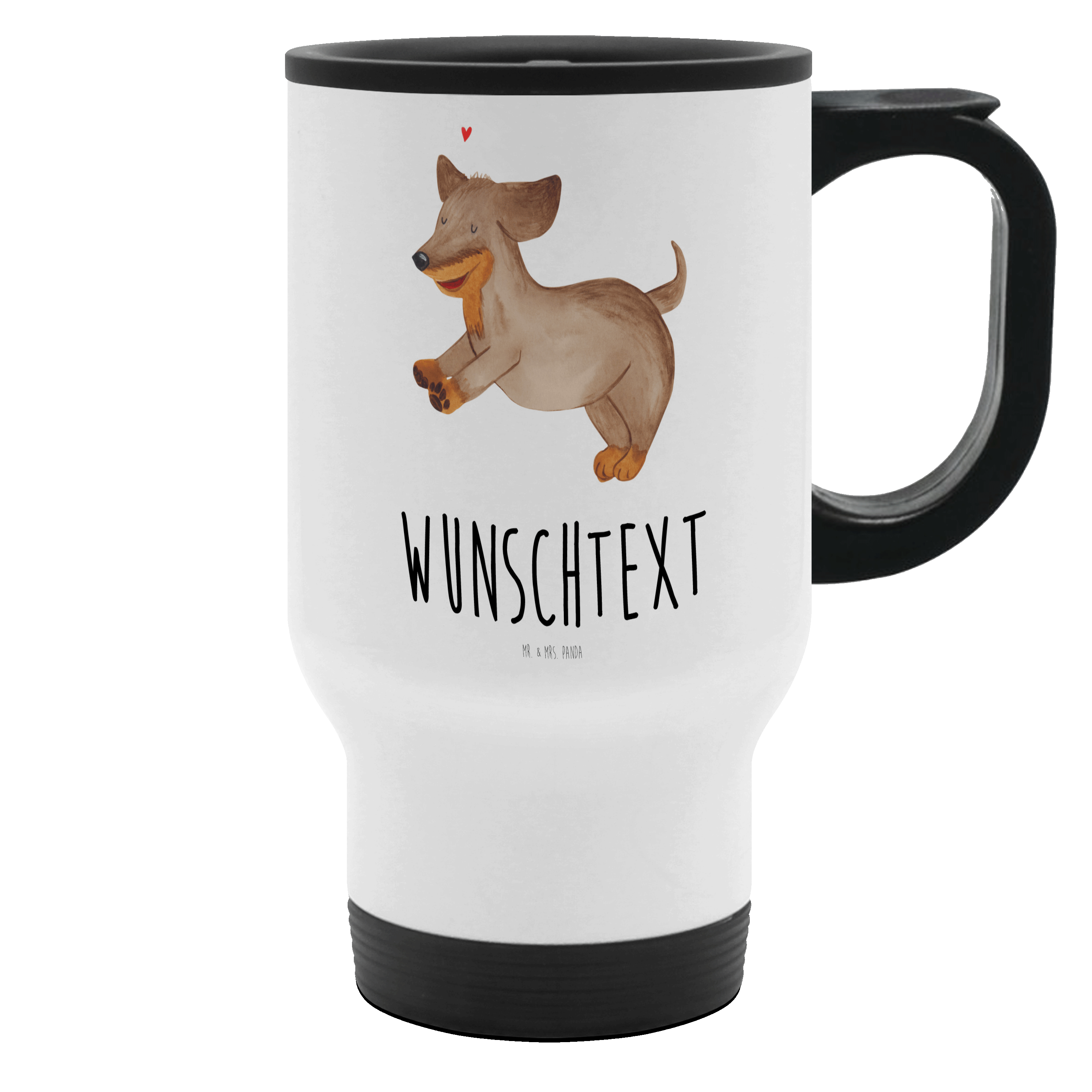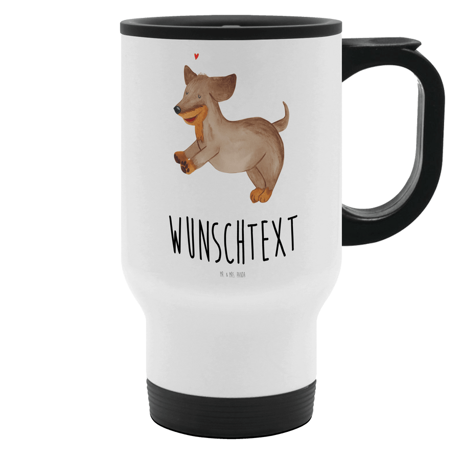 Personalisierter Thermobecher Hund Dackel fröhlich