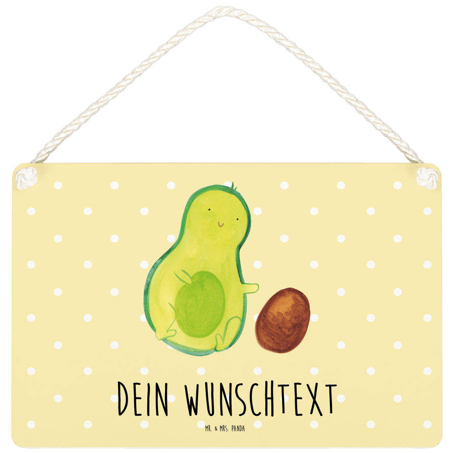 Personalisiertes Deko Schild Avocado rollt Kern - DIN A6 - Gelb Pastell