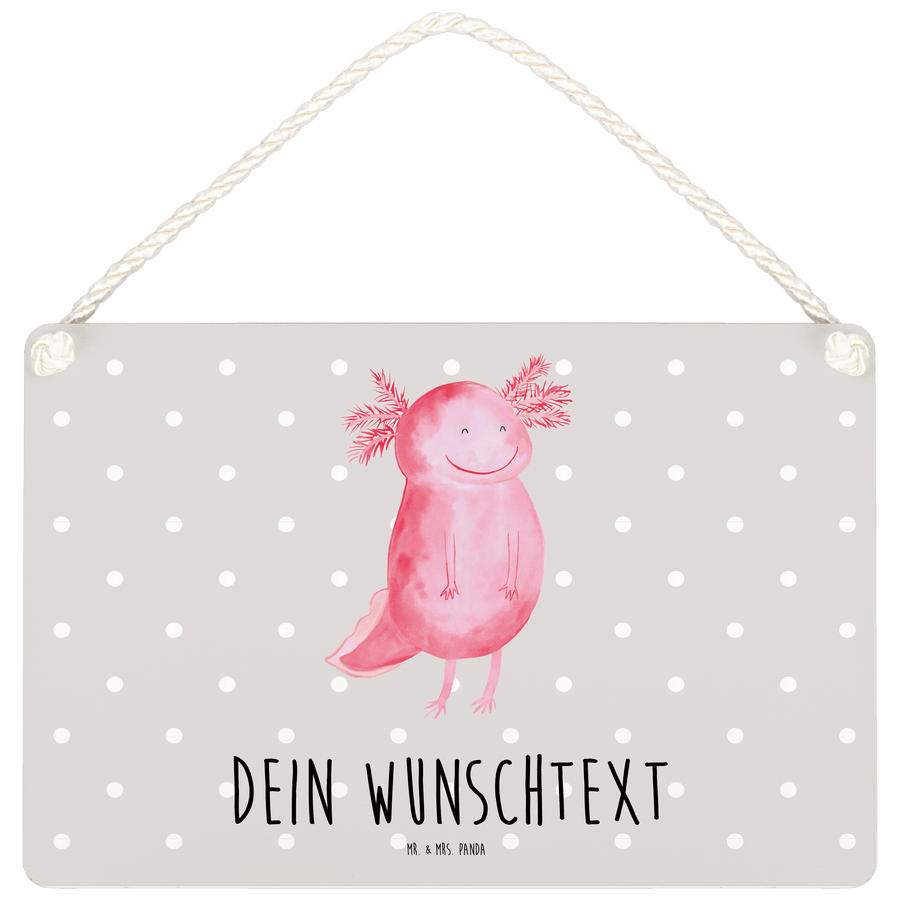 Personalisiertes Deko Schild Axolotl glücklich - DIN A6 - Grau Pastell