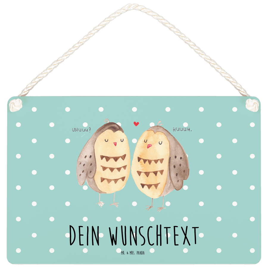 Personalisiertes Deko Schild Eule Liebe - Türkis Pastell - DIN A5