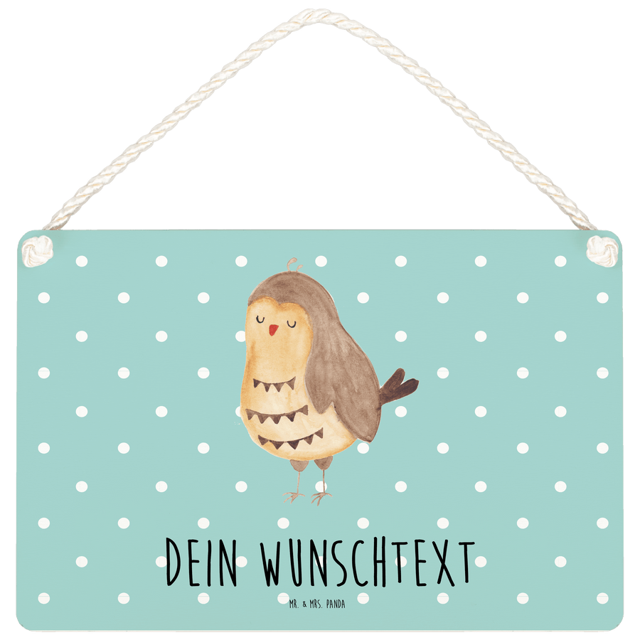 Personalisiertes Deko Schild Eule Zufrieden - Türkis Pastell - DIN A5