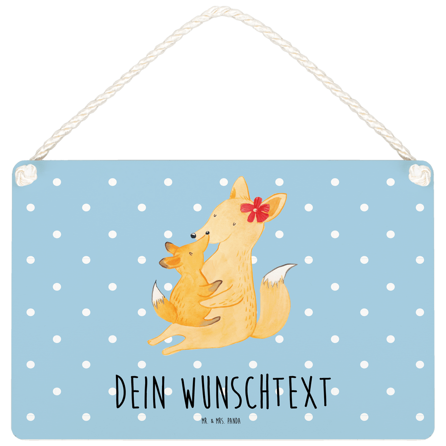 Personalisiertes Deko Schild Fuchs Mama & Kind - Blau Pastell - DIN A6