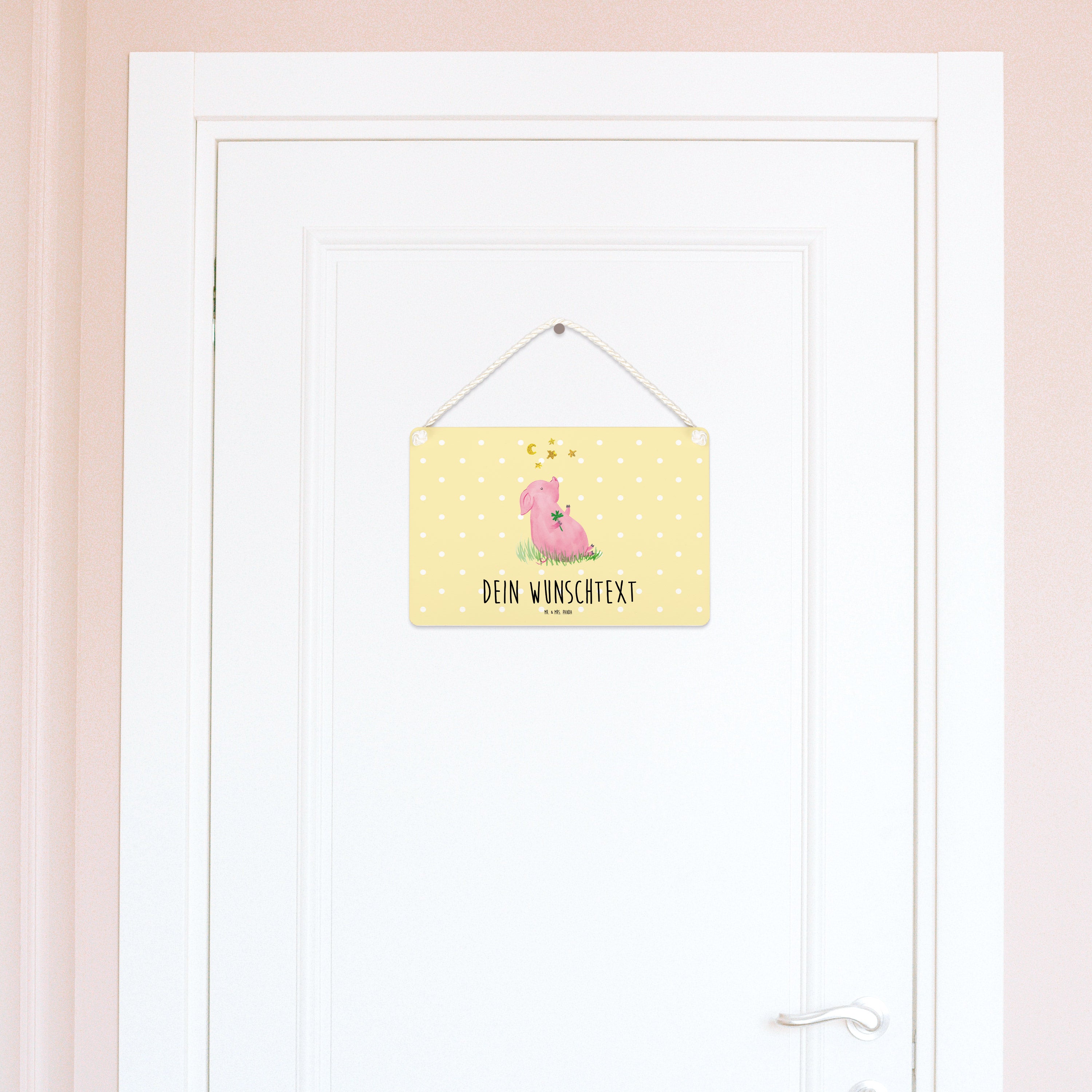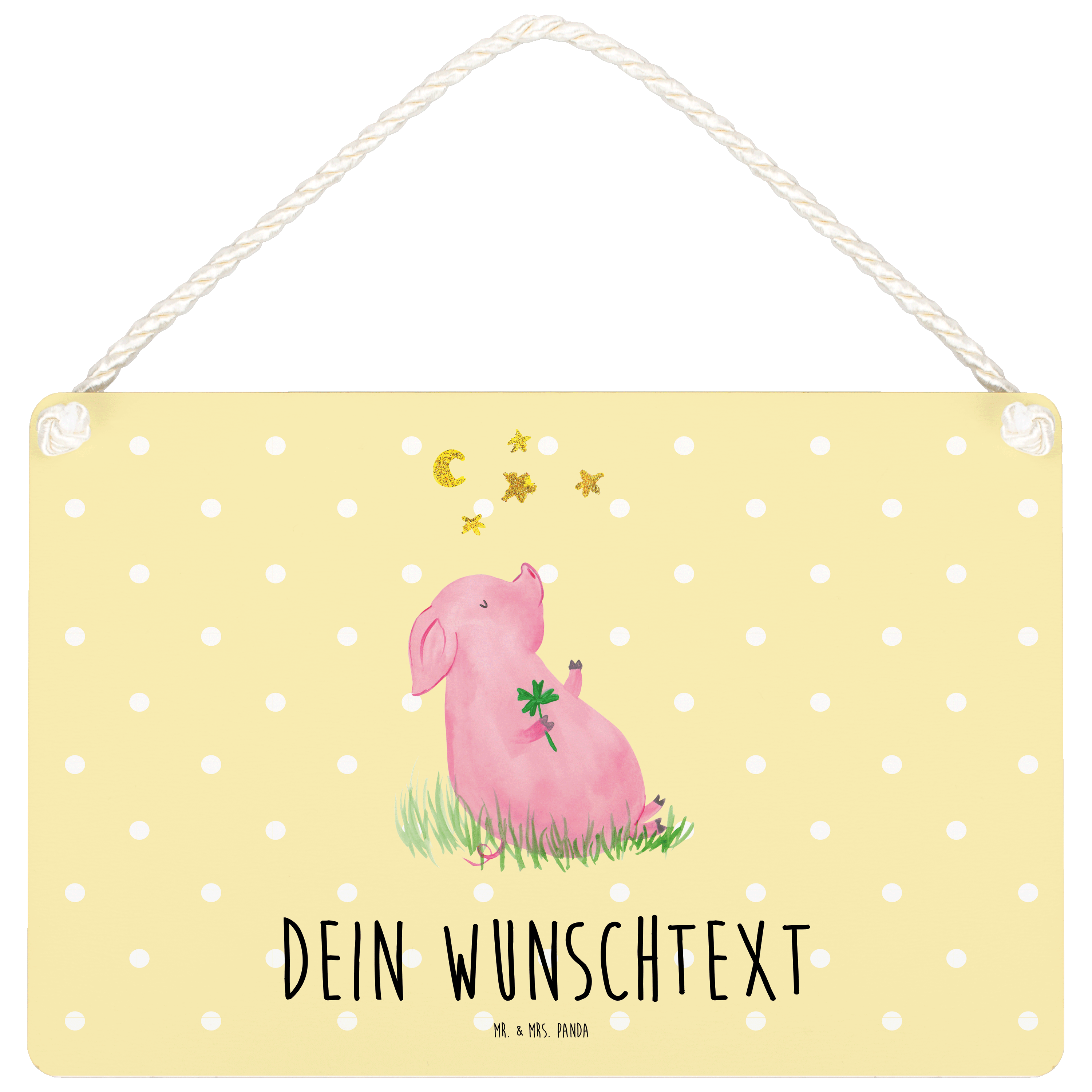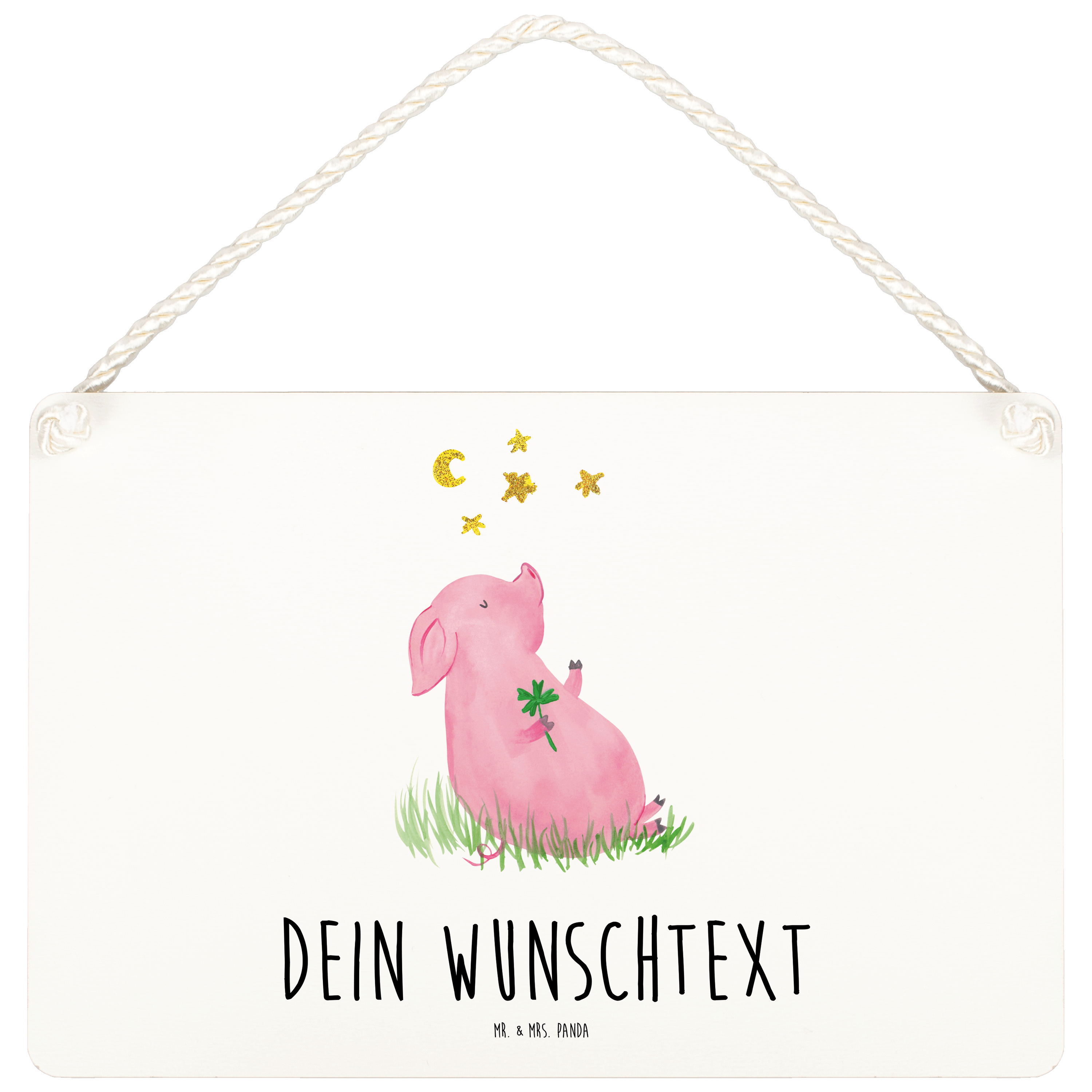 Personalisiertes Deko Schild Glücksschwein - DIN A6 - Weiß