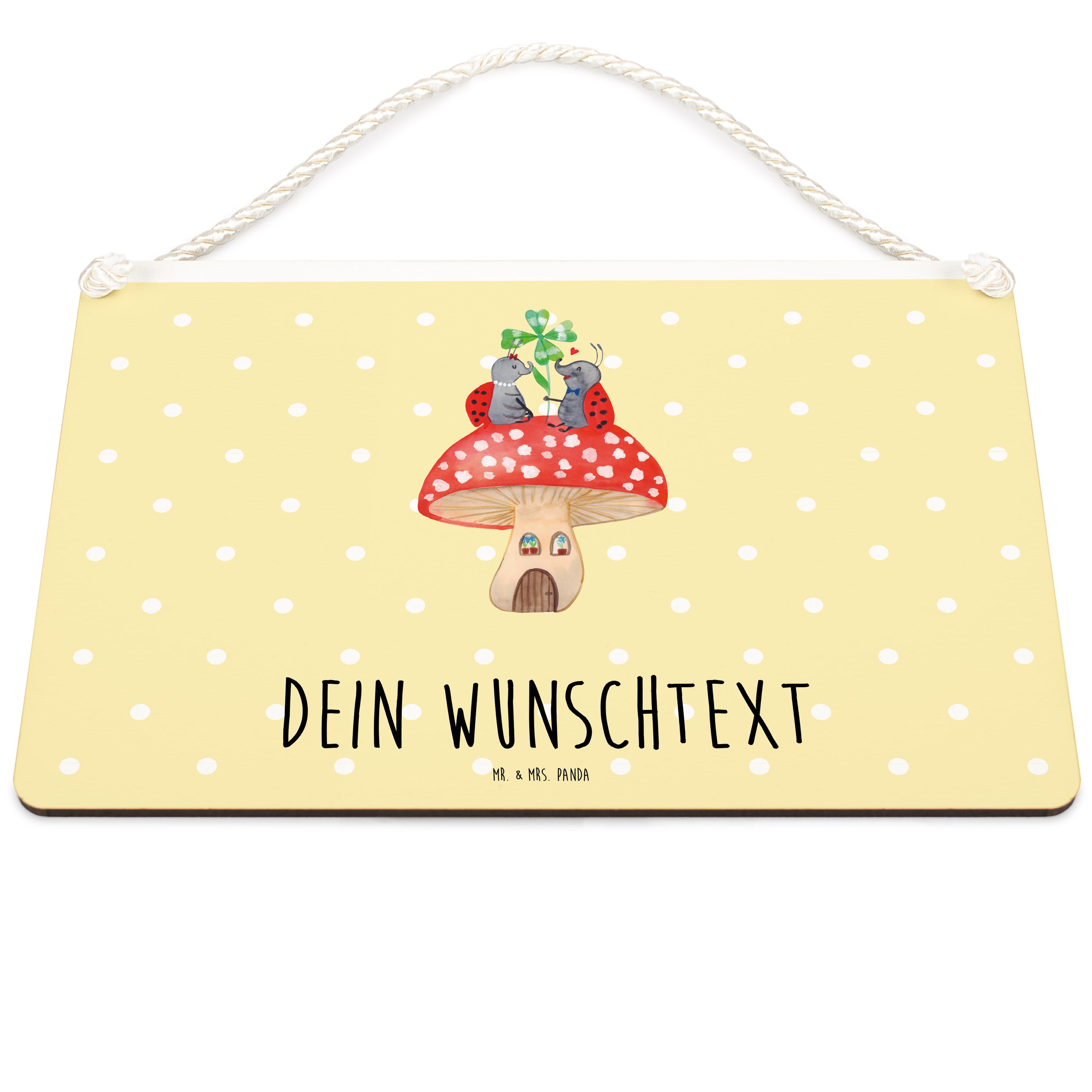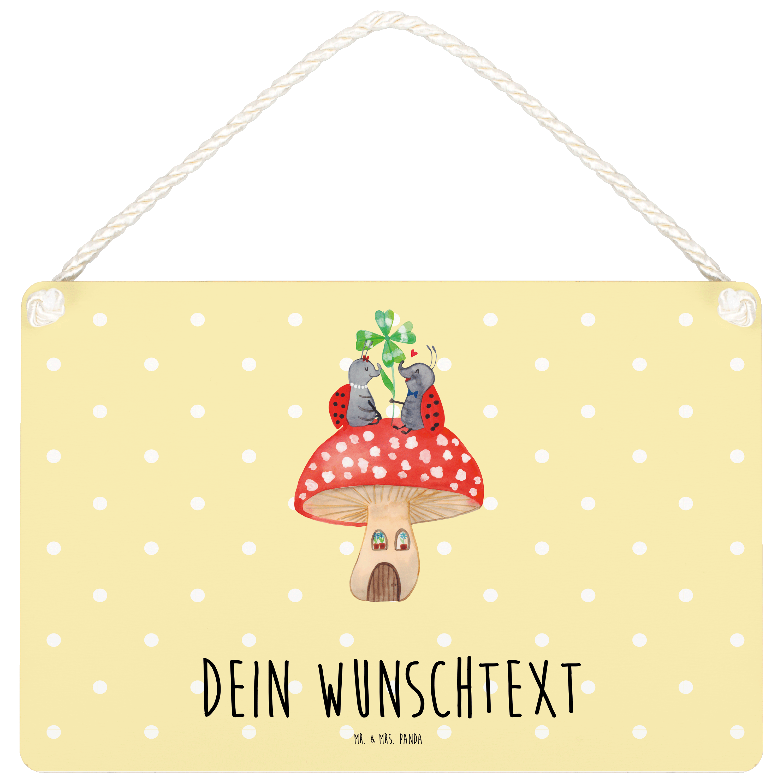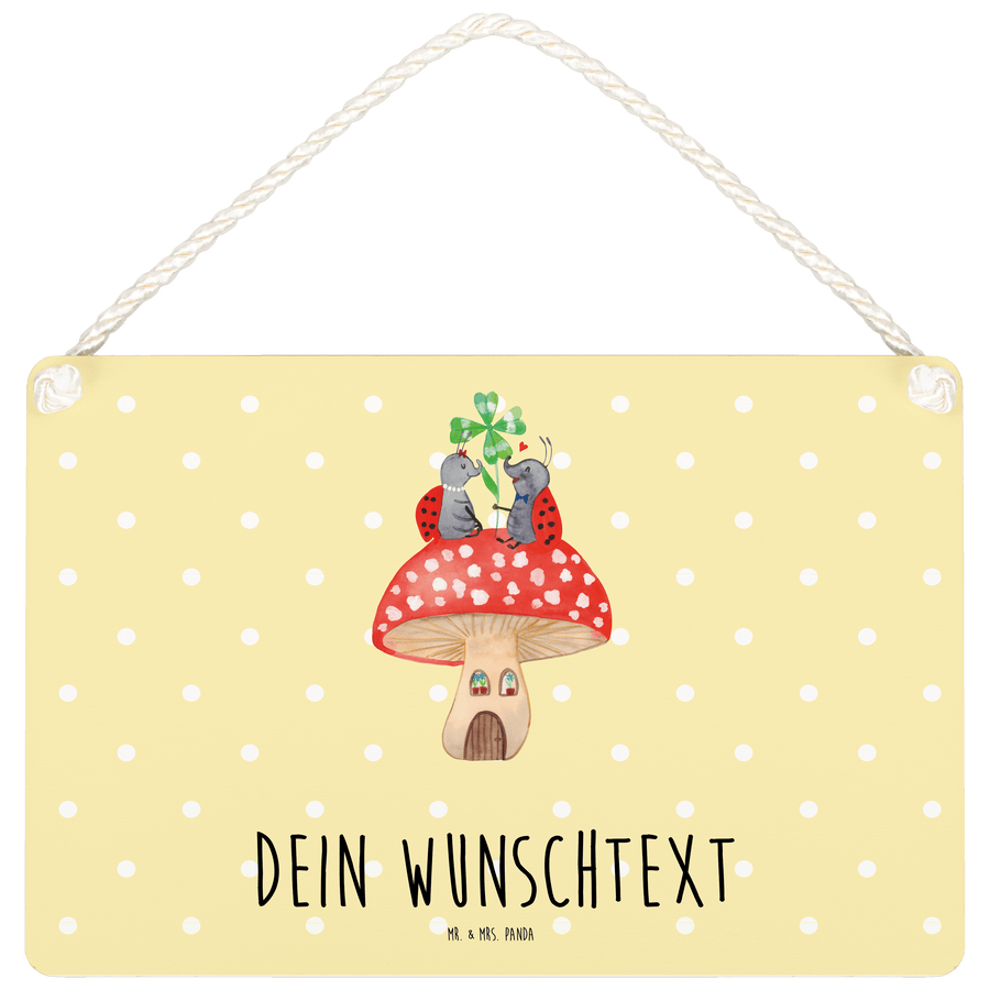 Personalisiertes Deko Schild Marienkäfer Paar Fliegenpilz - DIN A5 - Gelb Pastell