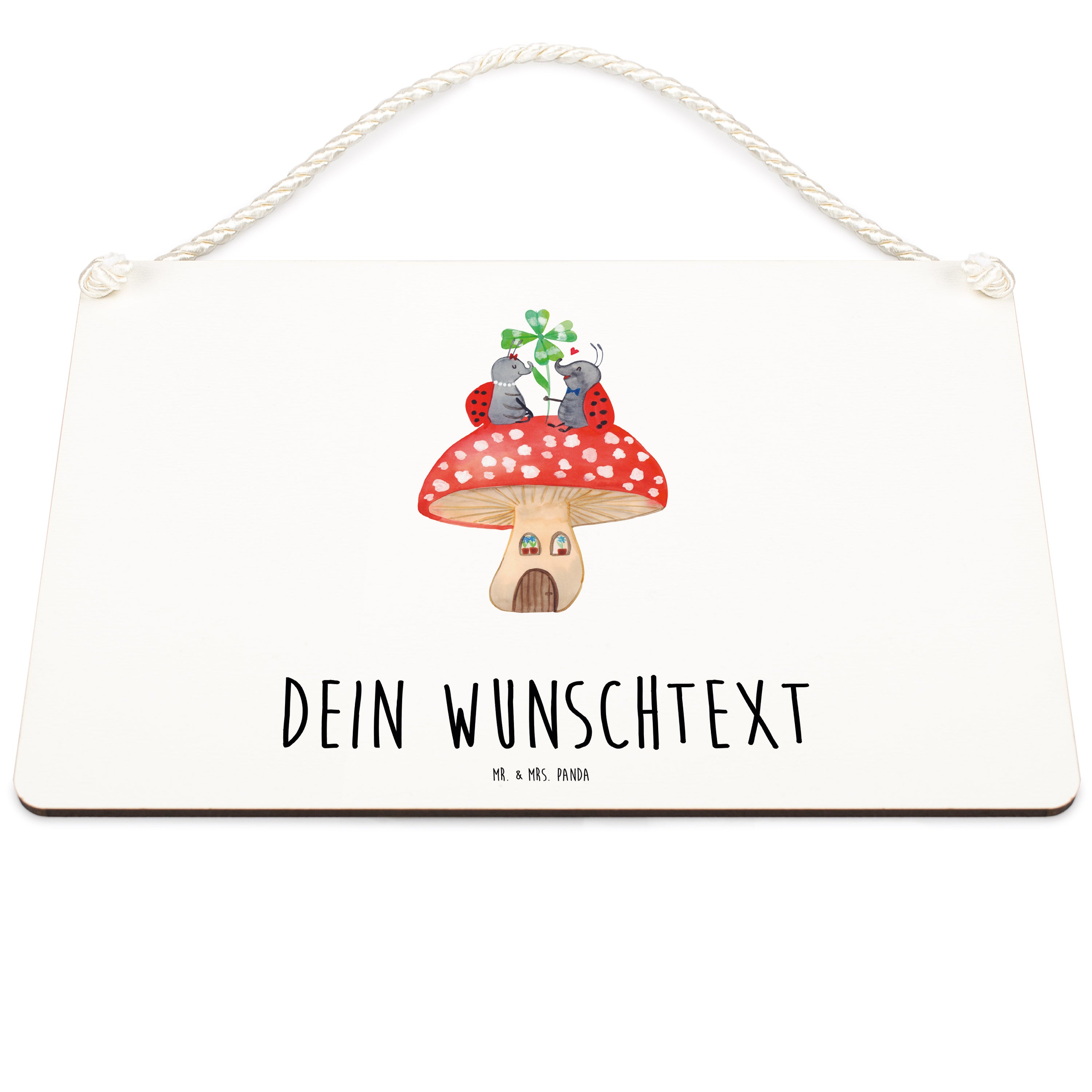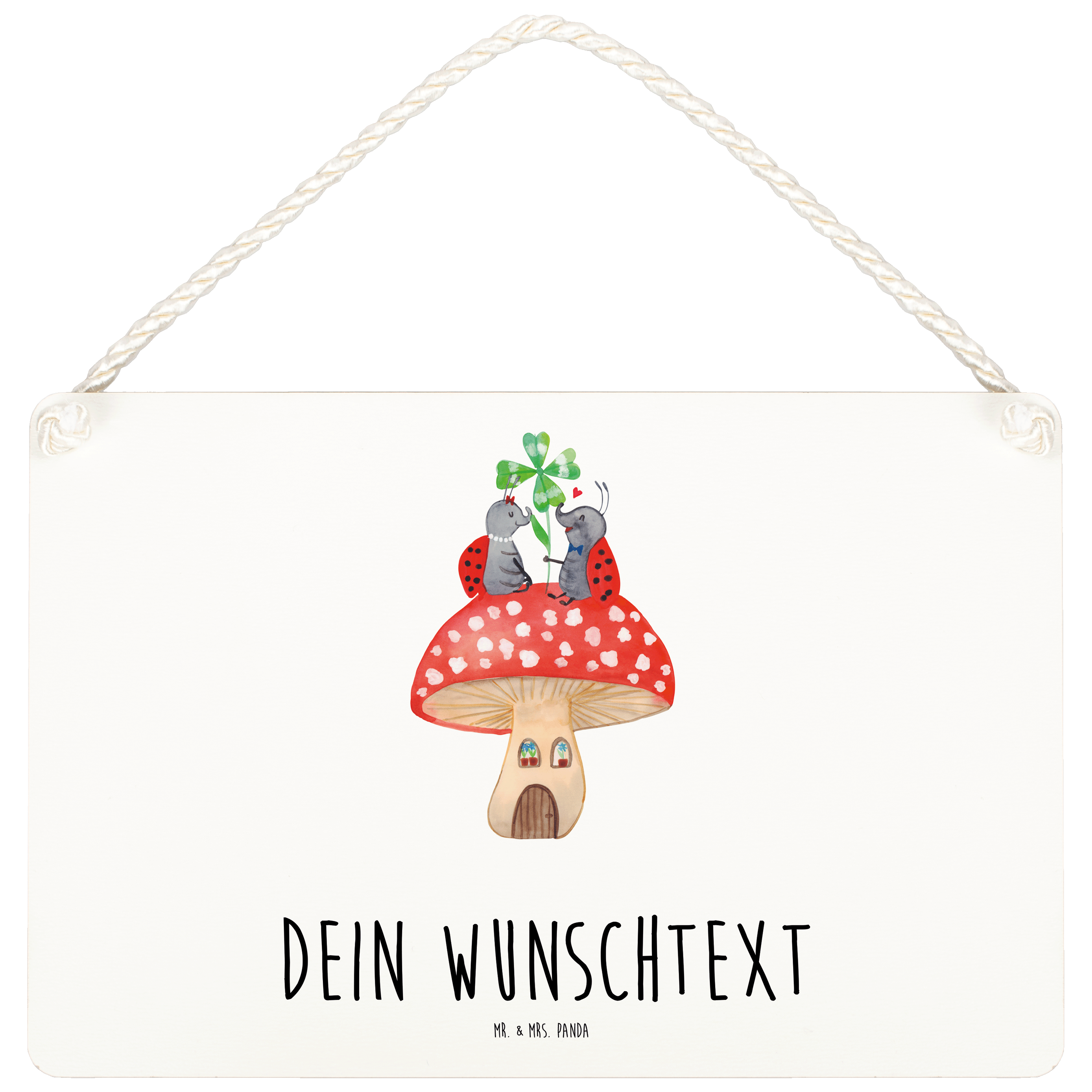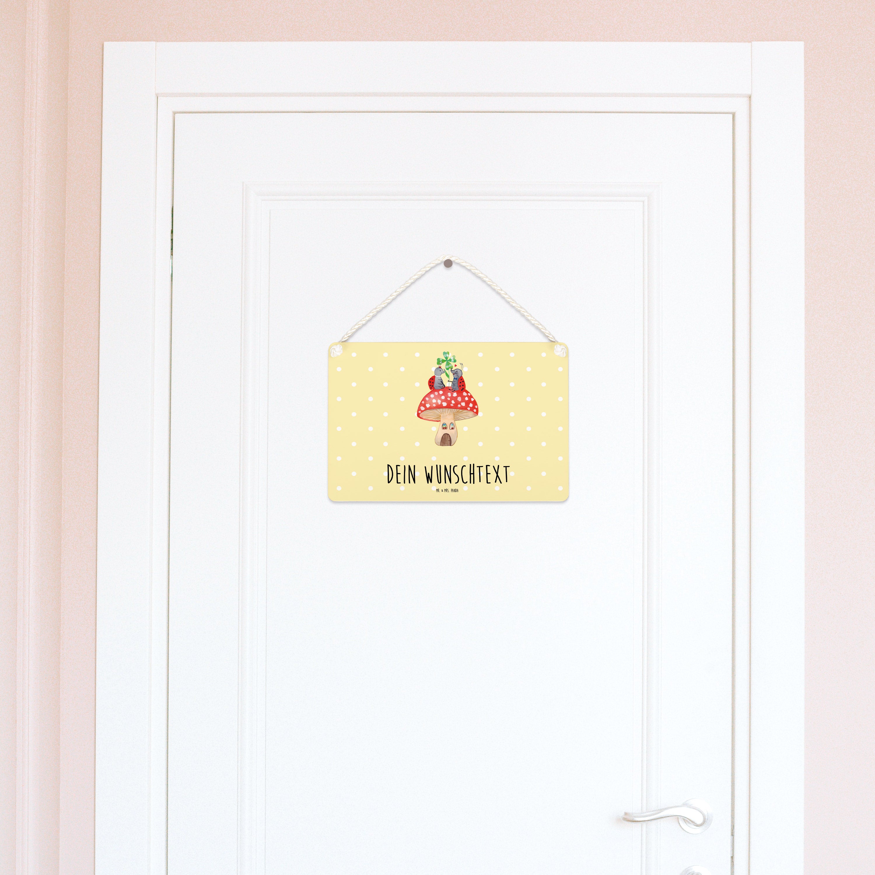 Personalisiertes Deko Schild Marienkäfer Paar Fliegenpilz - DIN A5 - Gelb Pastell