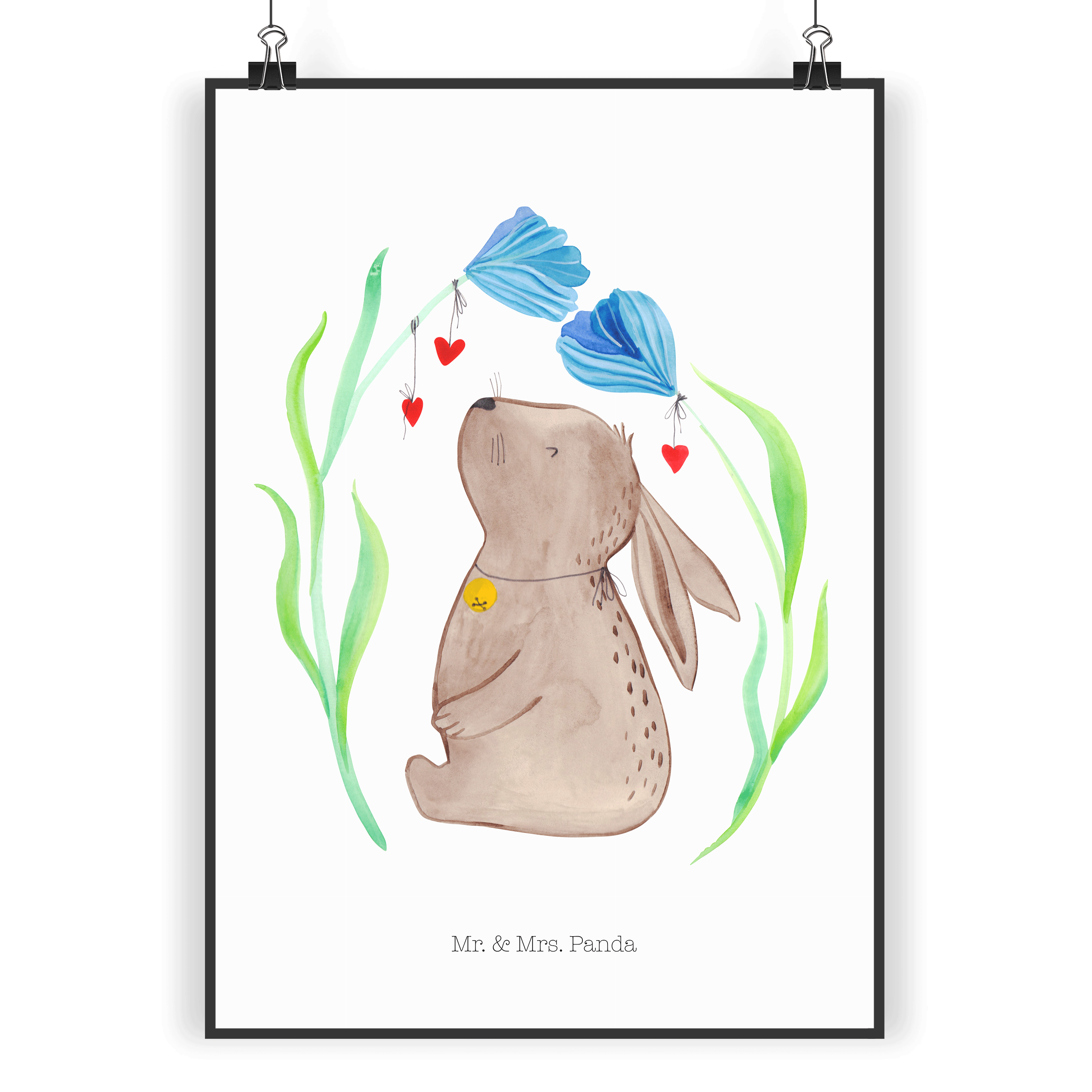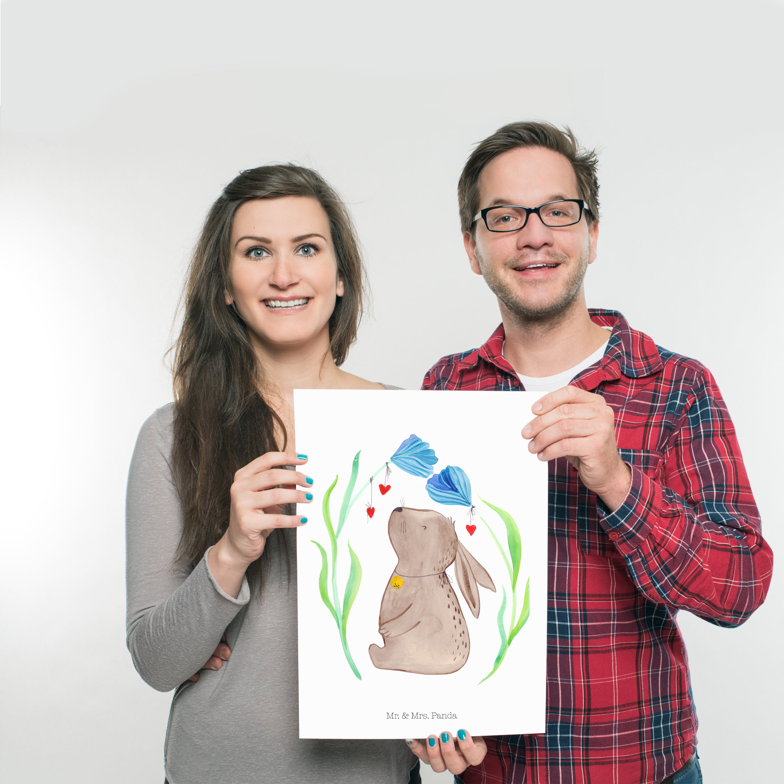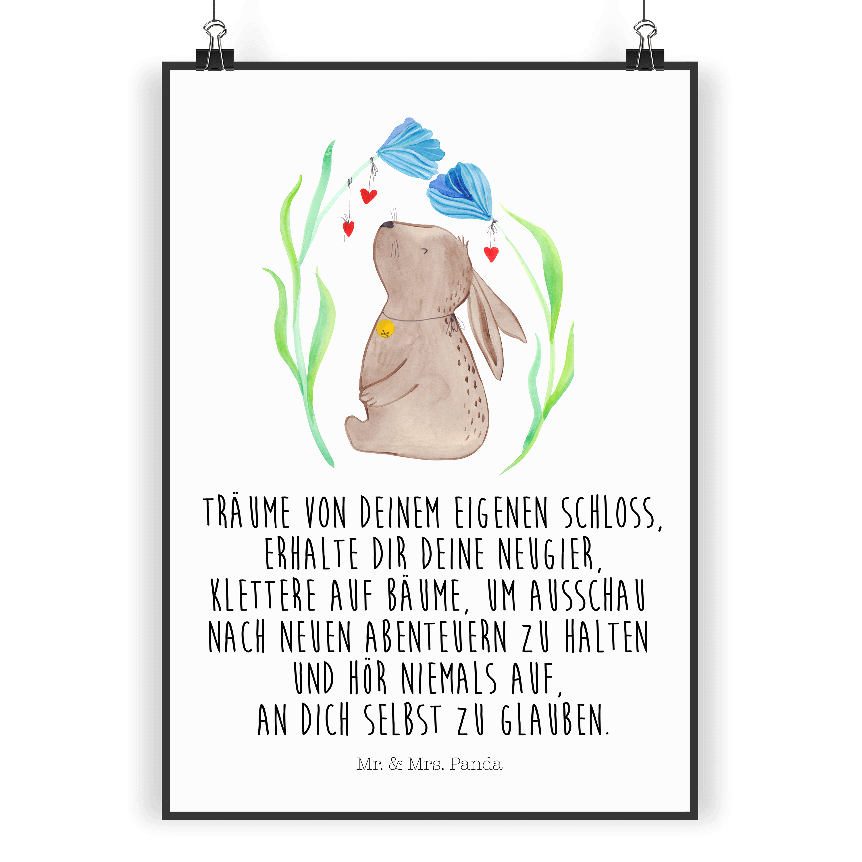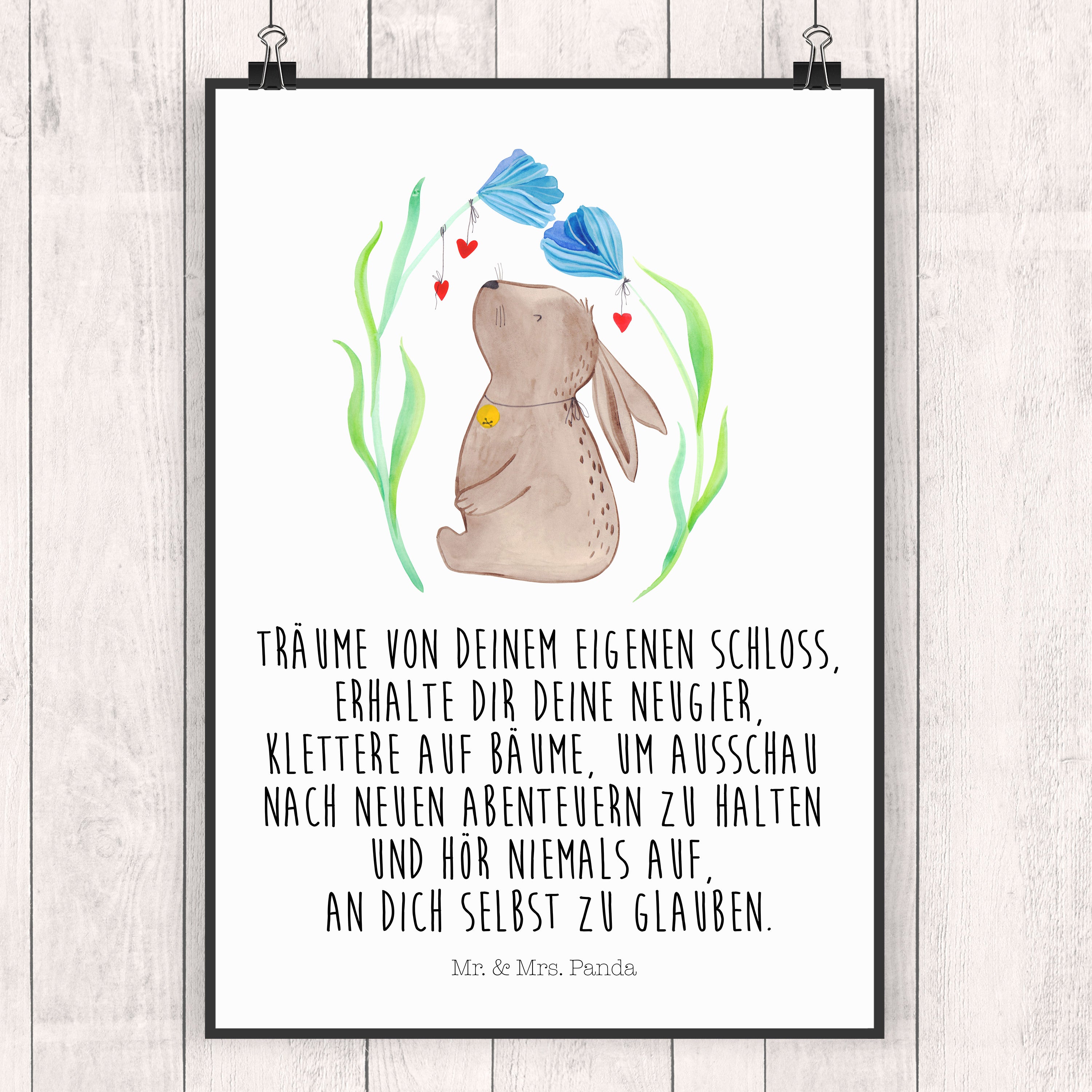 Glöckchenklingelnd hüpft Hase Blume durch die bunten Blumenwiesen. Ob zum Frühlingserwachen oder als Oster-Dekoration - mit ihm holst du dir eine fröhliche Stimmung in dein Zuhause. Das Motiv von Mr. & Mrs. Panda inspiriert dich bei jeder Betrachtung dazu, deine unbeschwerte und verspielte Seite zu zeigen.