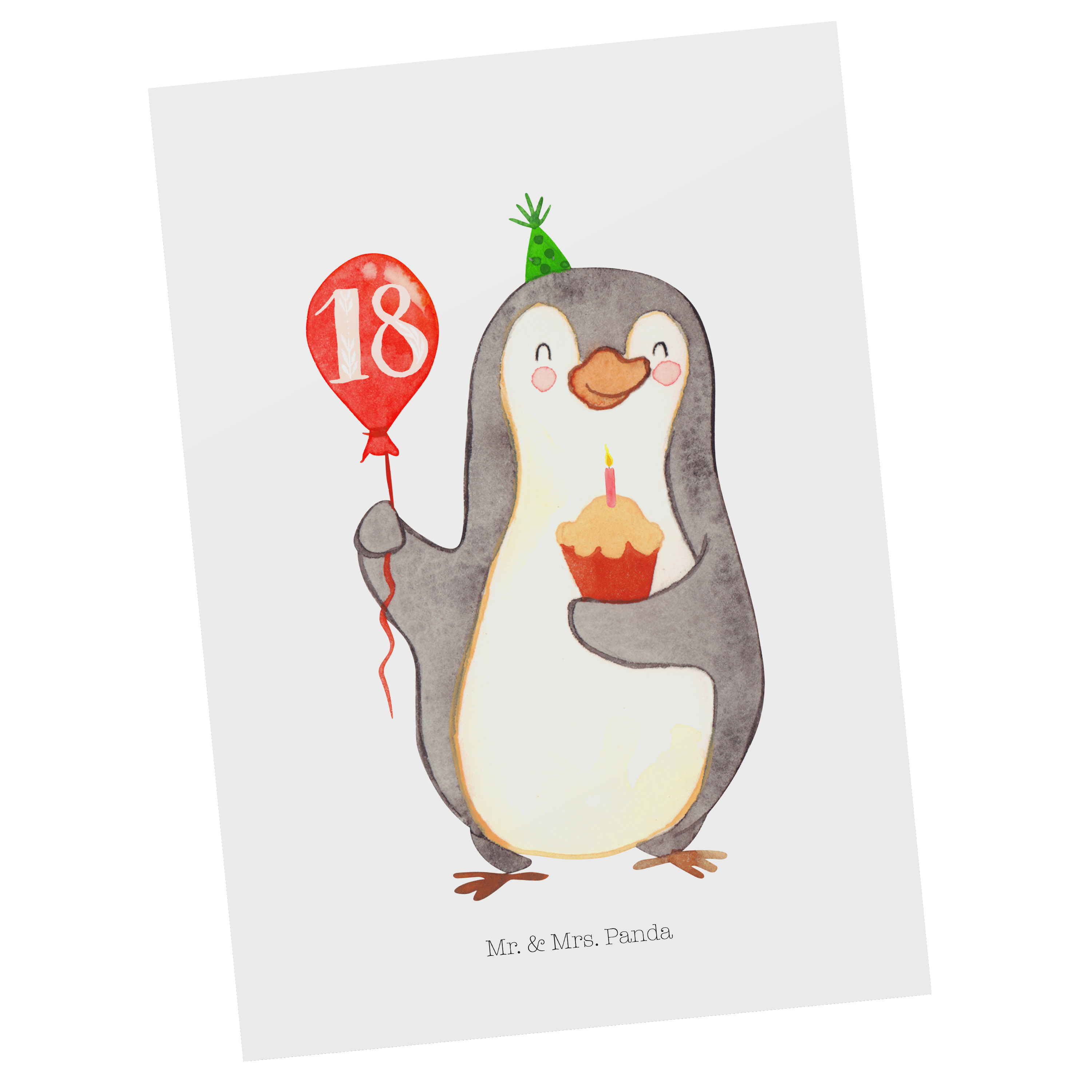 Postkarte 18. Geburtstag Pinguin Luftballon