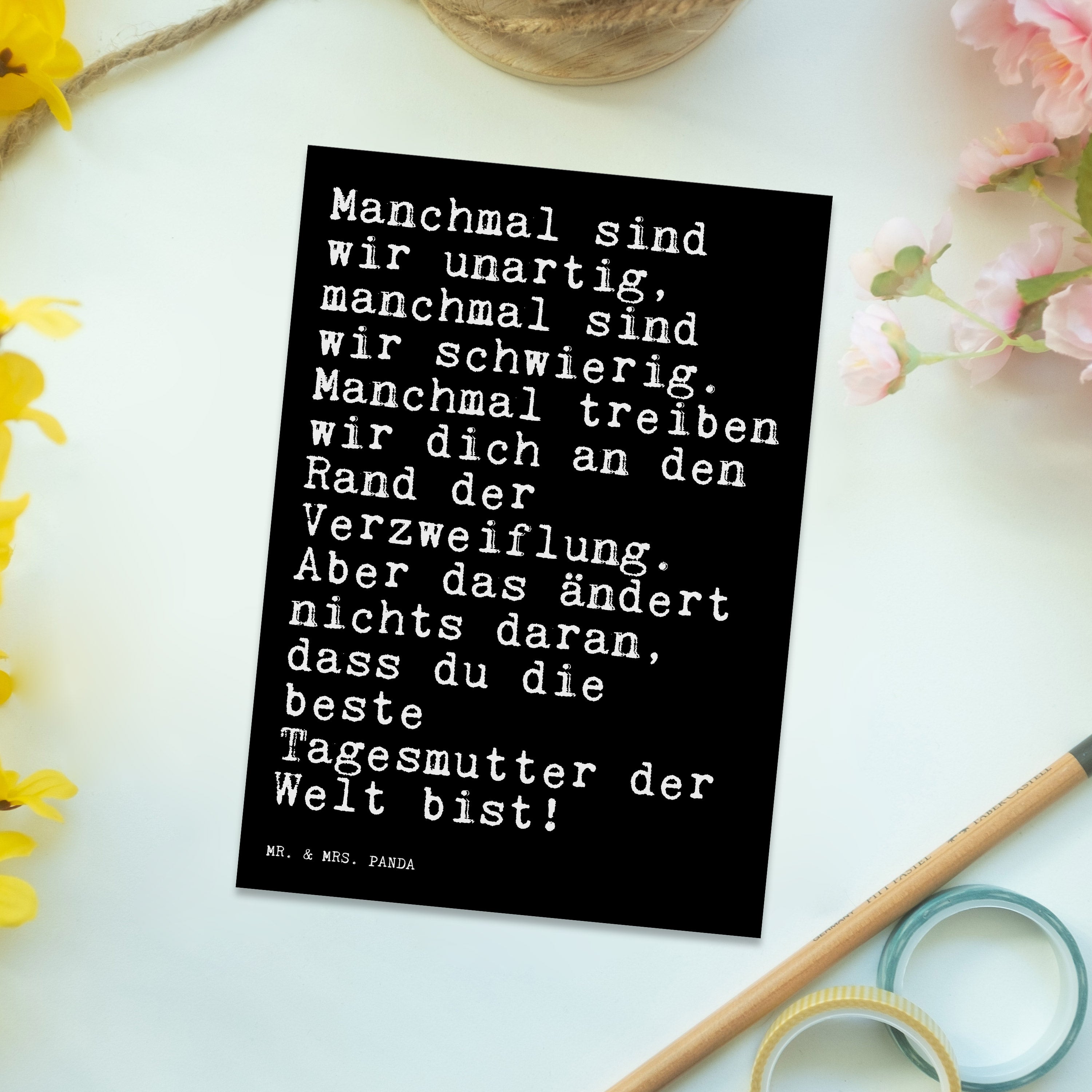 Postkarte Sprüche und Zitate Manchmal sind wir unartig, manchmal sind wir schwierig. Manchmal treiben wir dich an den Rand der Verzweiflung. Aber das ändert nichts daran, dass du die beste Tagesmutter der Welt bist!
