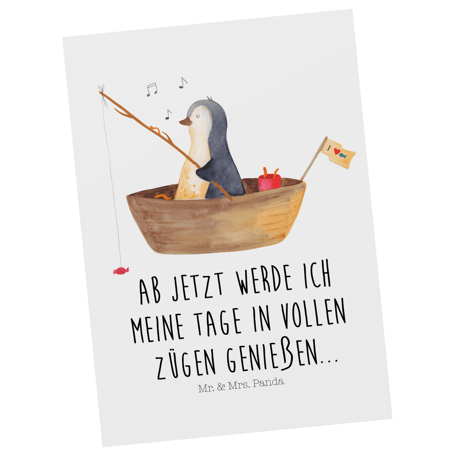 Postkarte Pinguin Angelboot Geschenkkarte, Grußkarte, Karte, Einladung, Ansichtskarte, Geburtstagskarte, Einladungskarte, Pinguin, Pinguine, Angeln, Boot, Angelboot, Lebenslust, Leben, genießen, Motivation, Neustart, Neuanfang, Trennung, Scheidung, Geschenkidee Liebeskummer