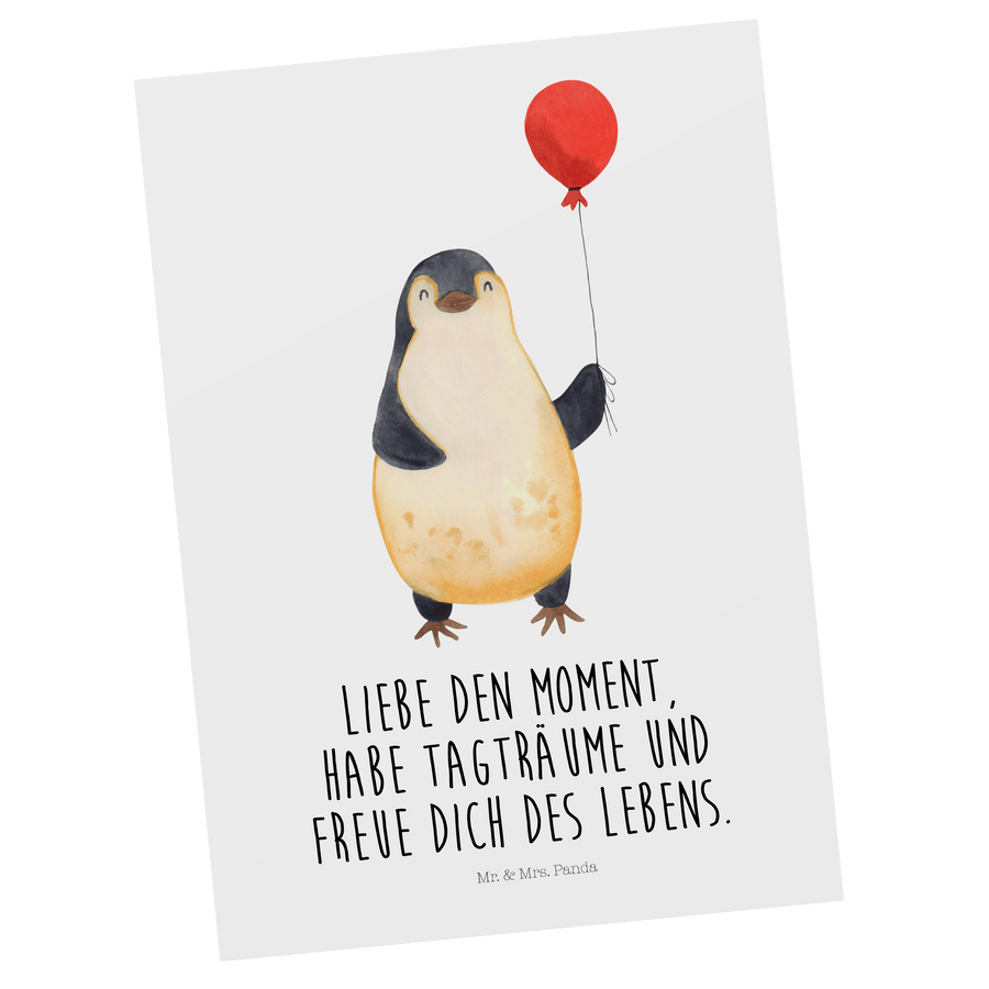 Postkarte Pinguin Luftballon - mit Spruch - Weiß